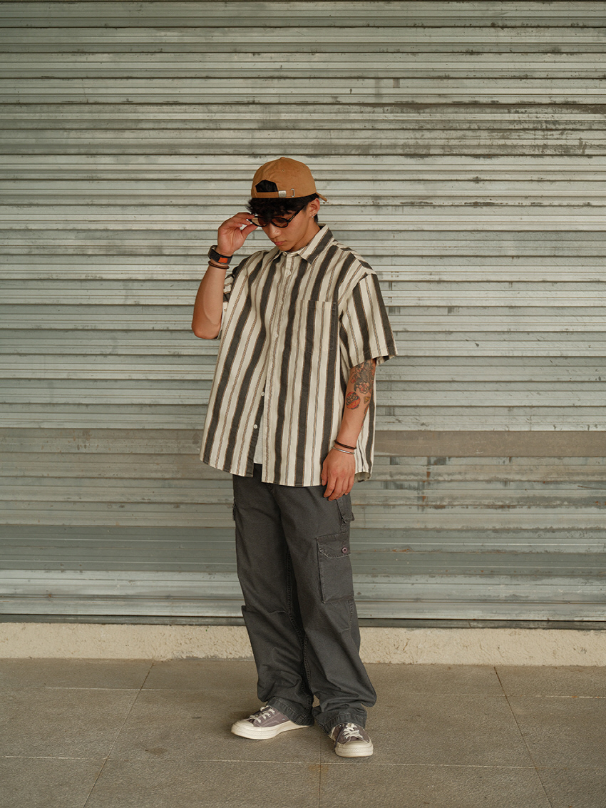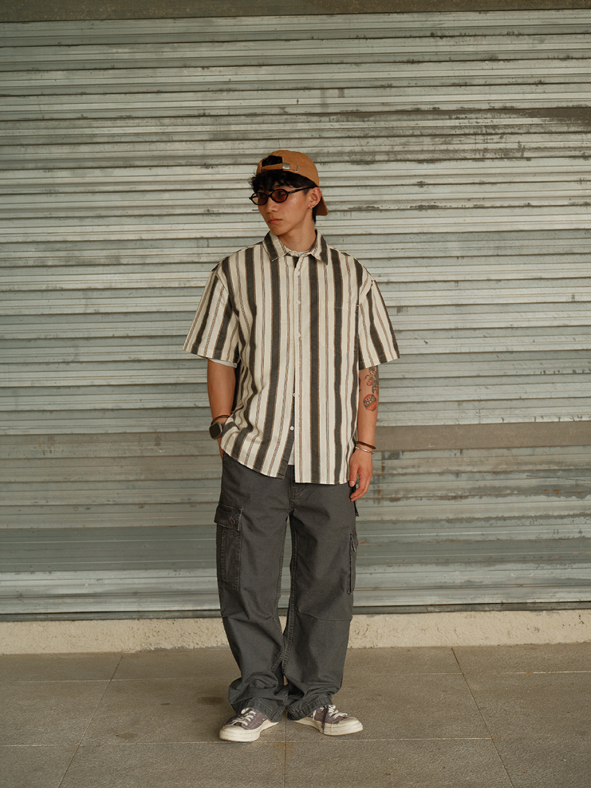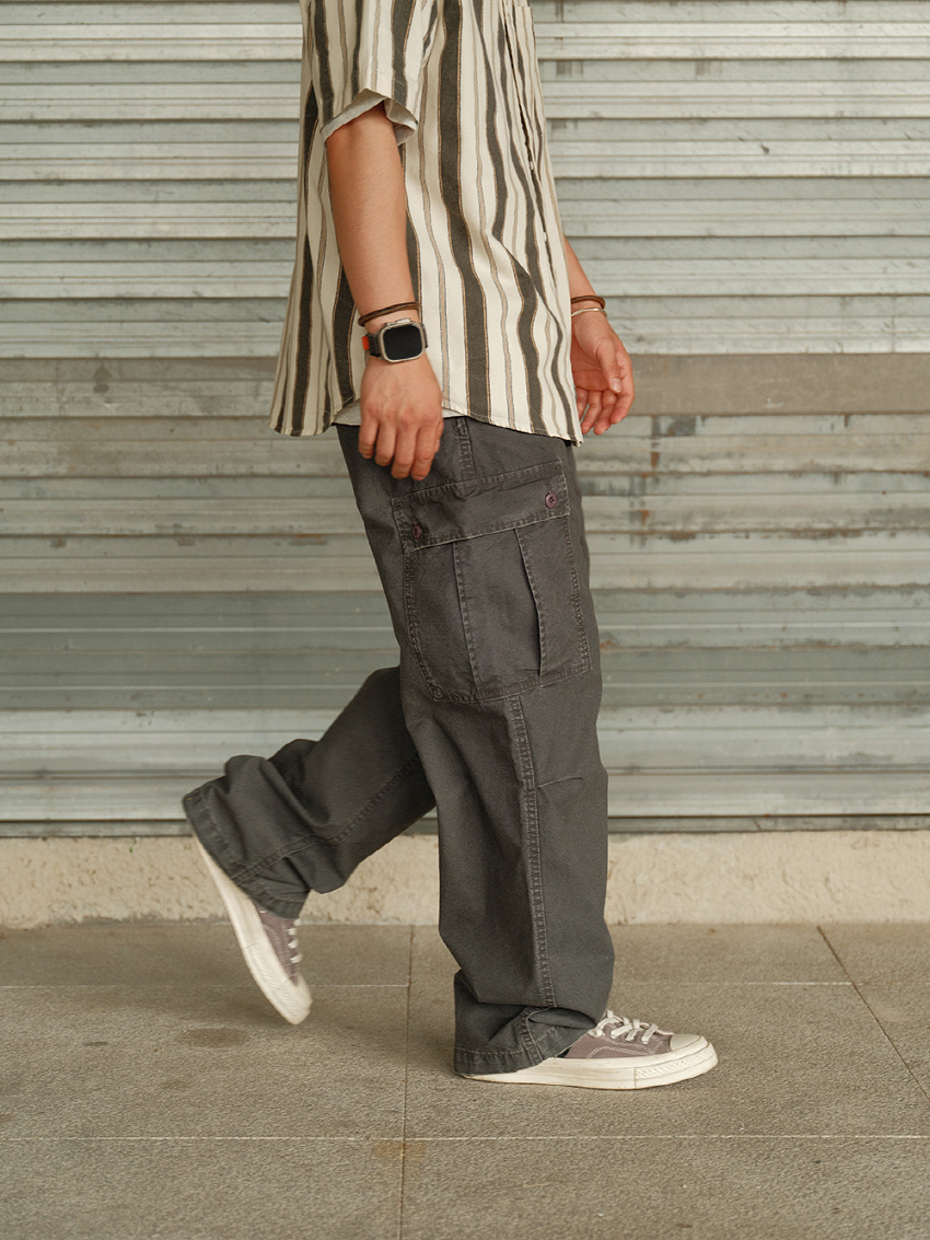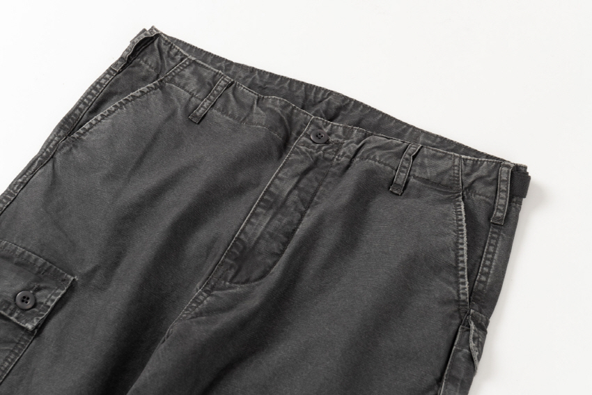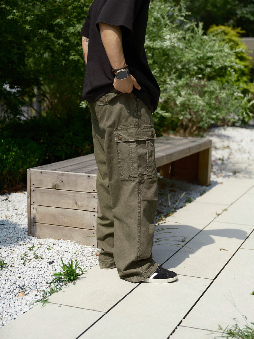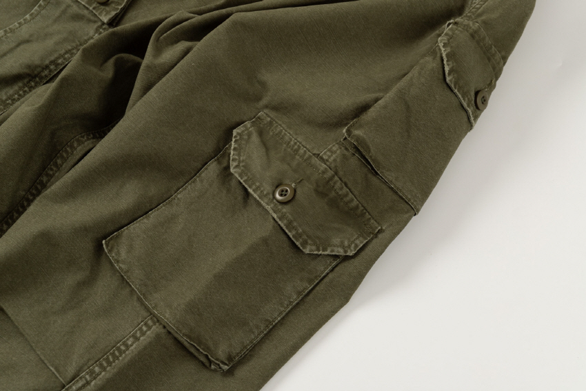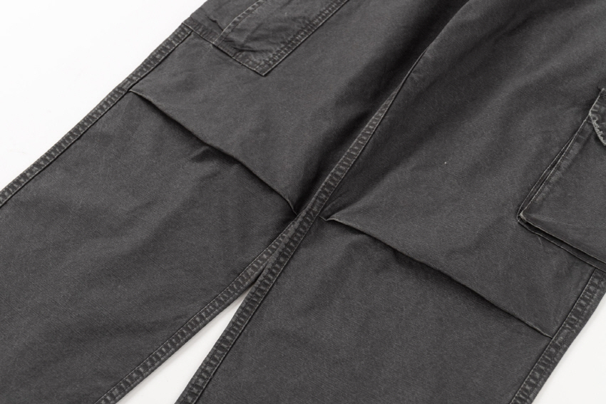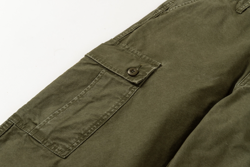 고밀도 면사로 제작되어 맞춤 직조되어 표면 질감이 풍부하고 입체적인 포켓디자인, 무릎 주름이 디테일 하게 들어가있는 워크 카고 팬츠입니다.