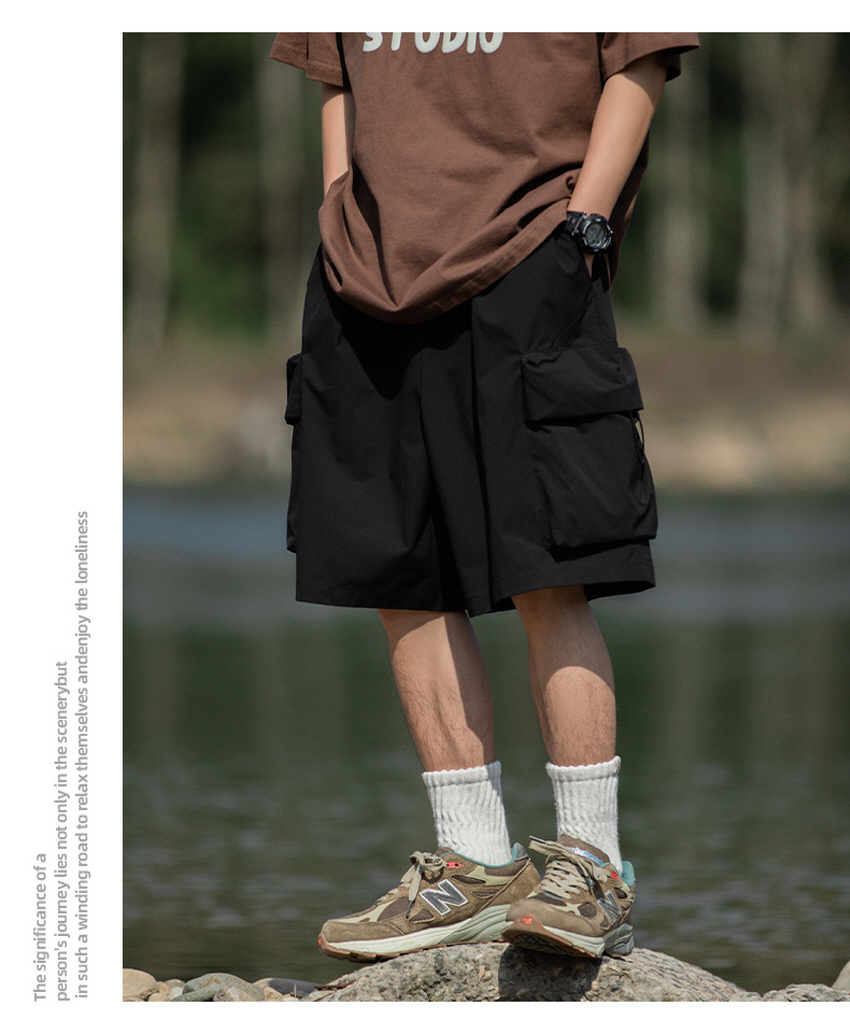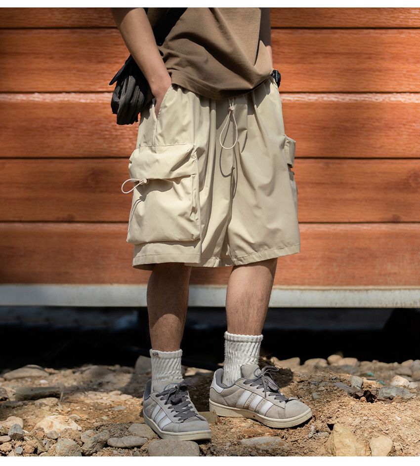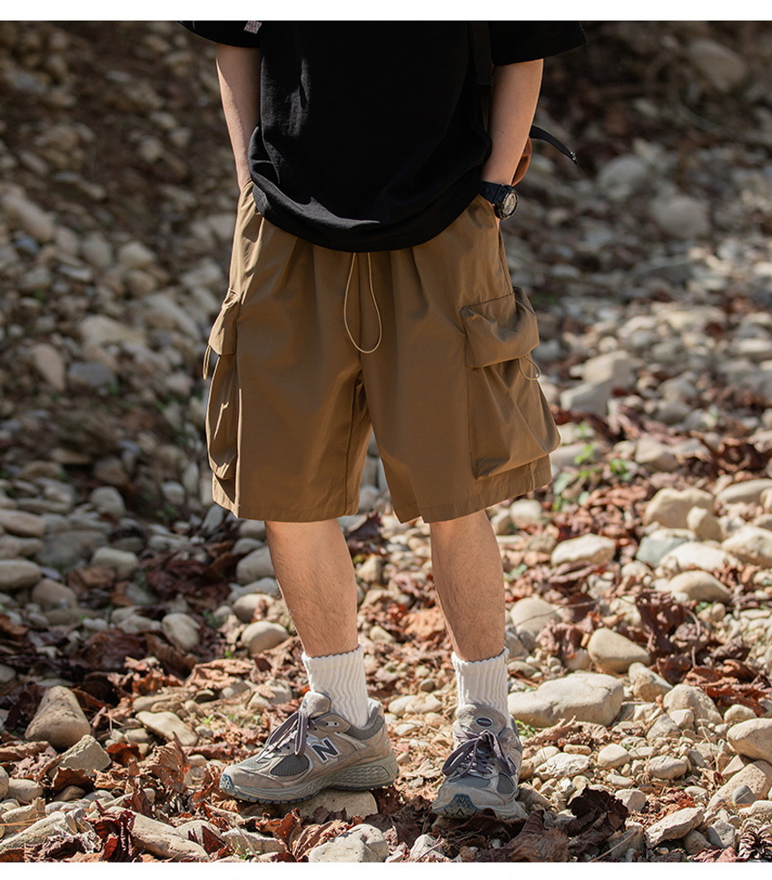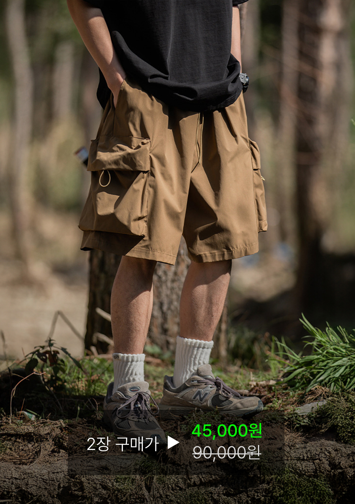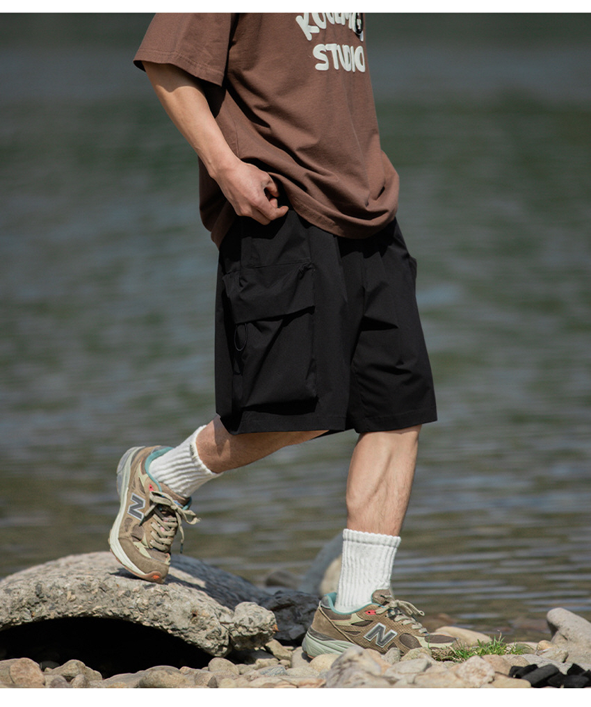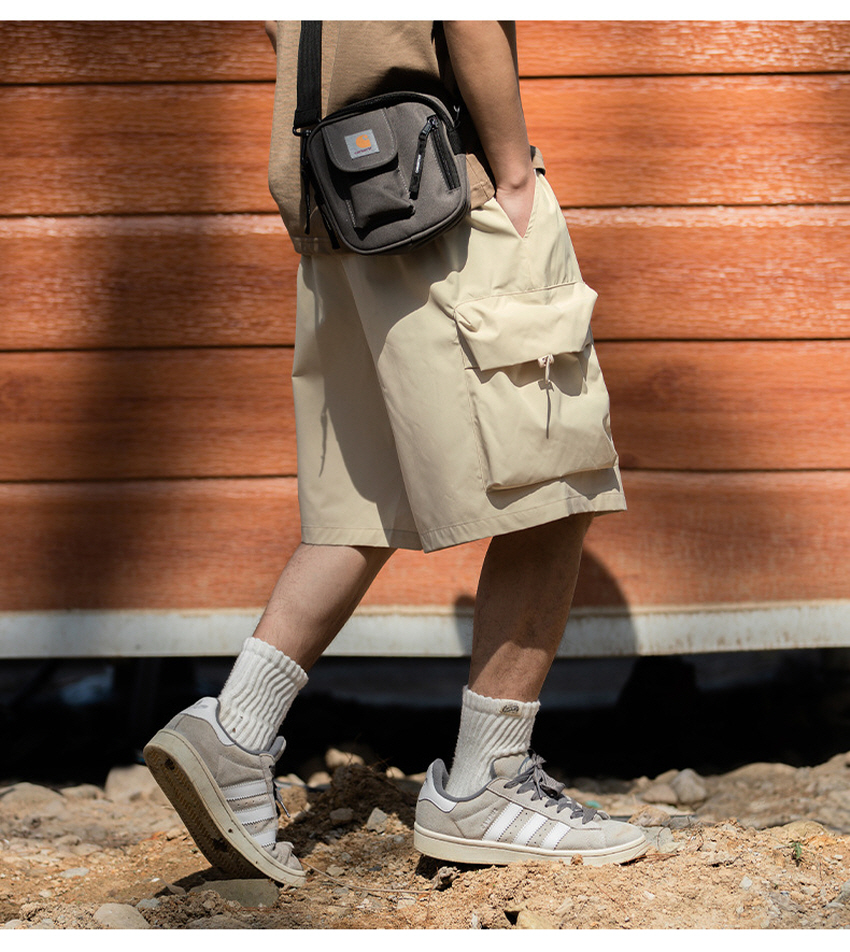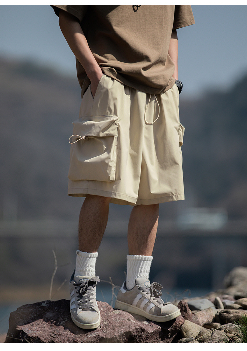 앞판 포켓 디자인으로 실용적이며 스타일리쉬한 루즈한 핏의 카고 숏 팬츠입니다.