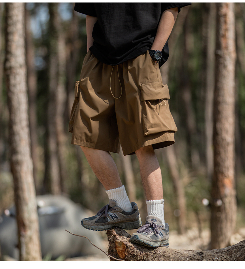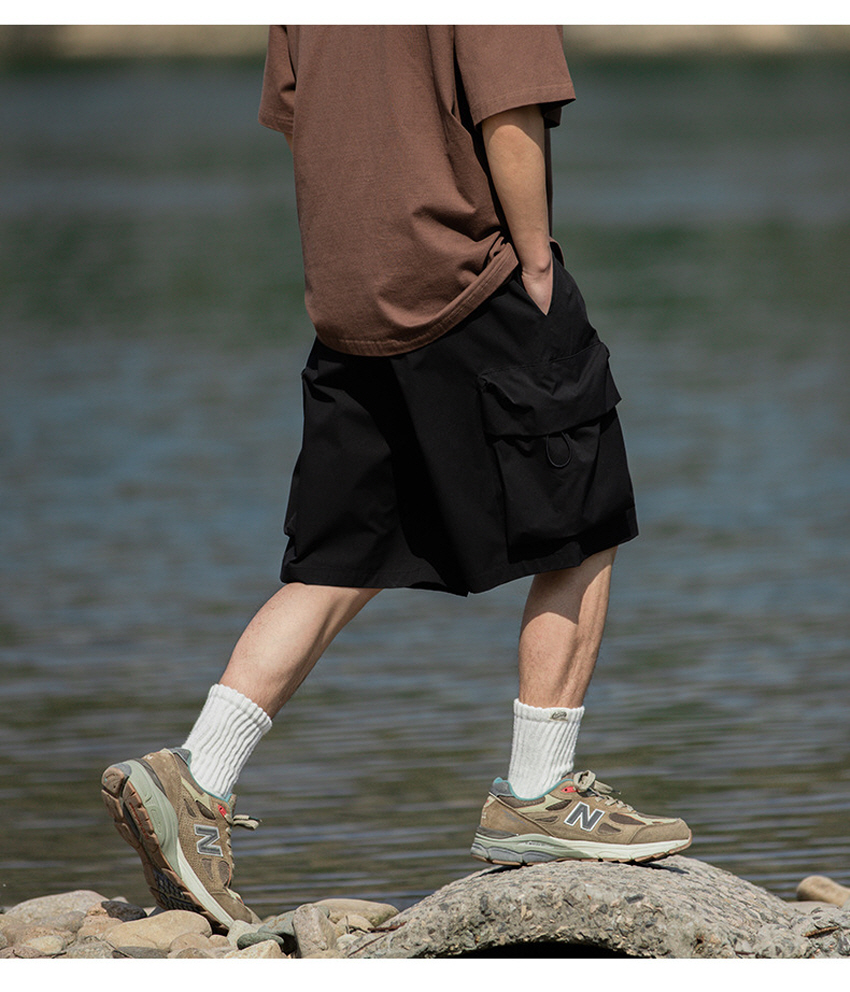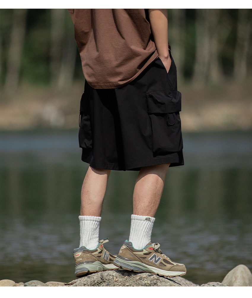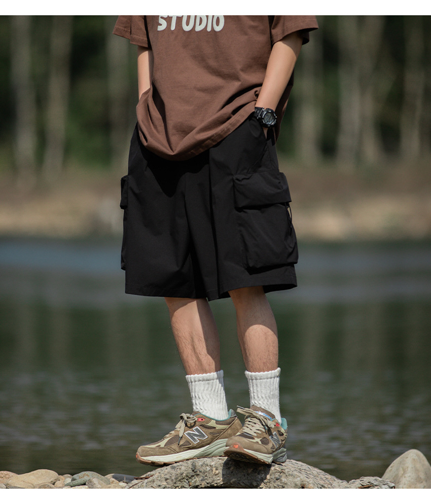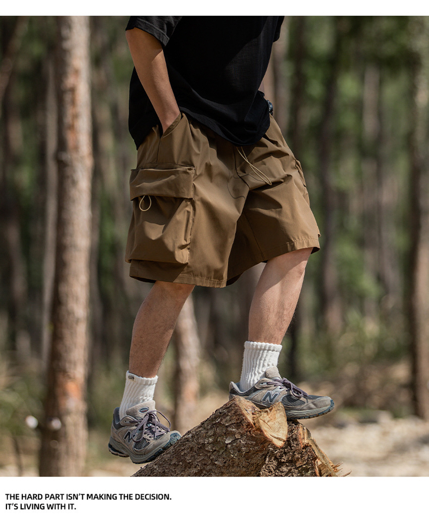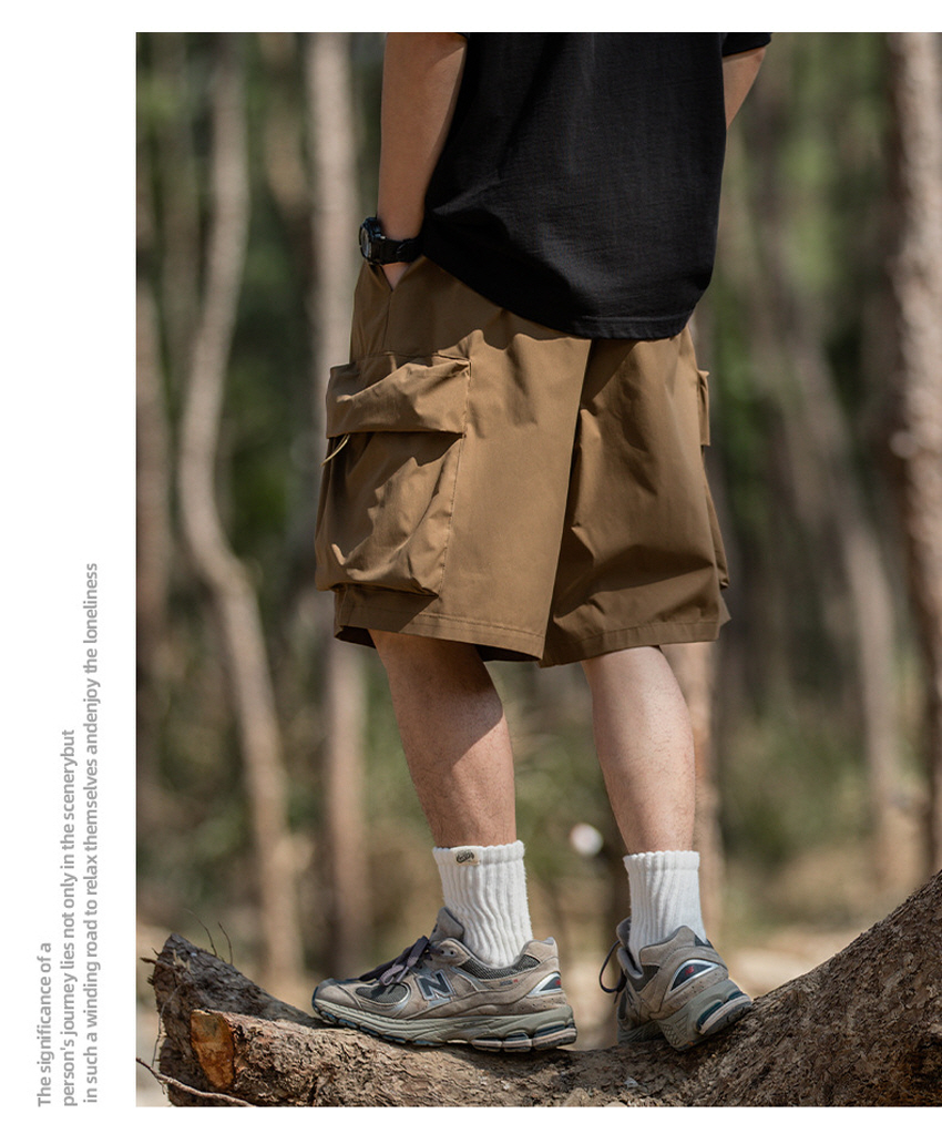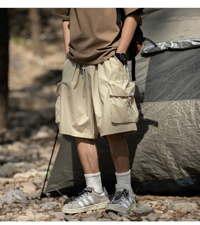 앞판 포켓 디자인으로 실용적이며 스타일리쉬한 루즈한 핏의 카고 숏 팬츠입니다.