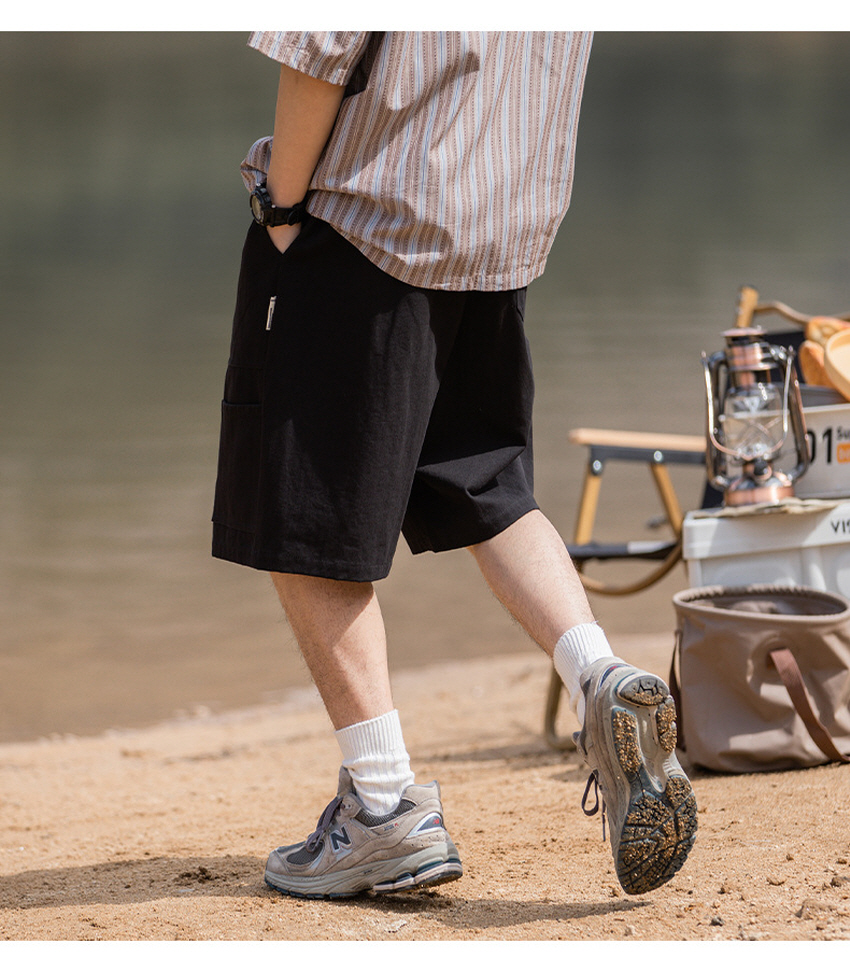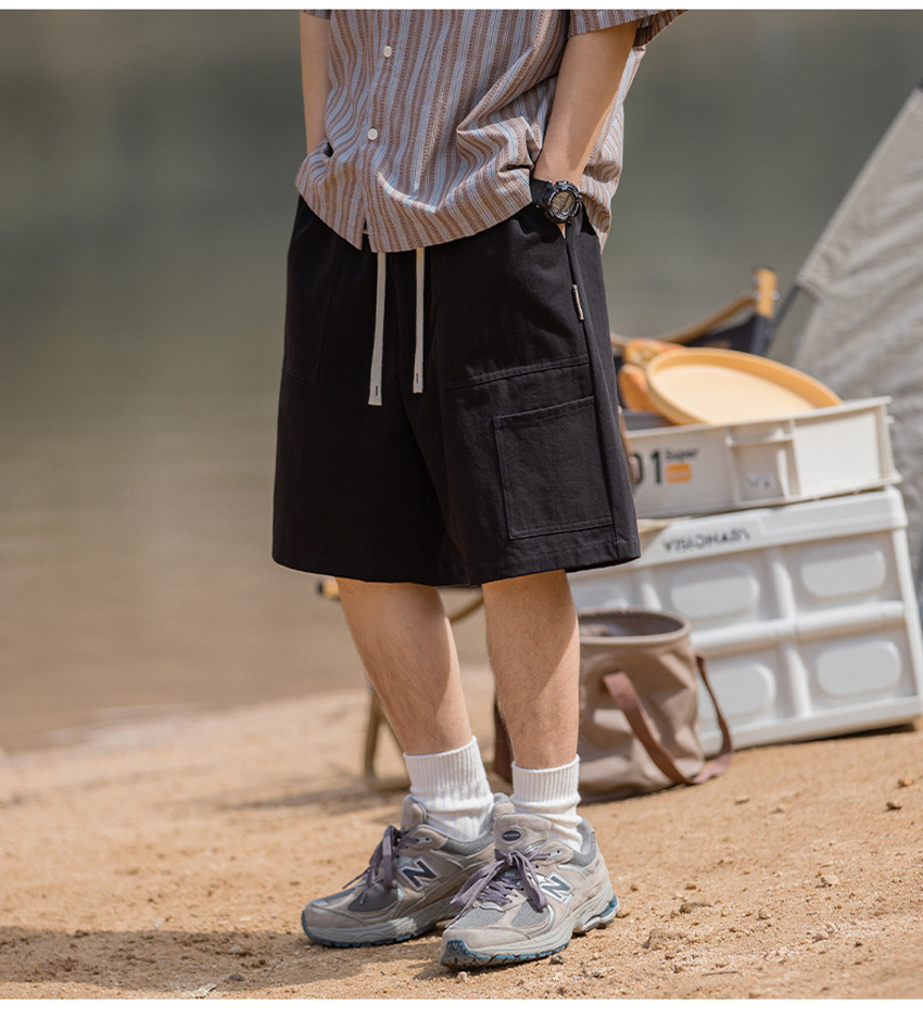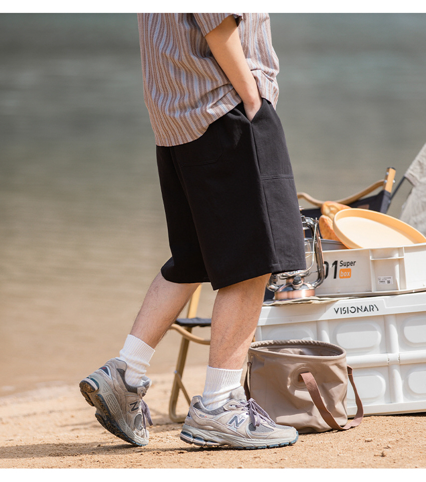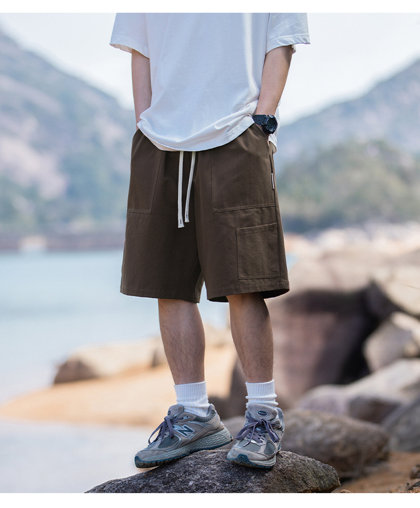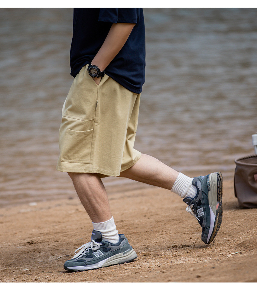 사이드 미니 포켓으로 포인트를 주고 스타일링하기 좋은 베이직한 루즈 카고 숏 팬츠입니다.