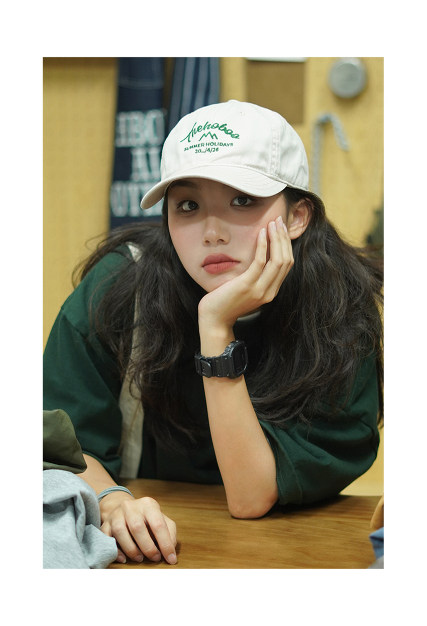 데일리로 캐주얼하게 스타일링 하기 좋은 자수 베이스볼 헌팅 캡입니다.