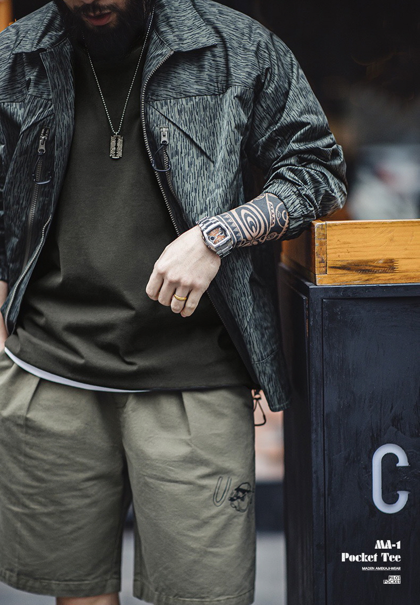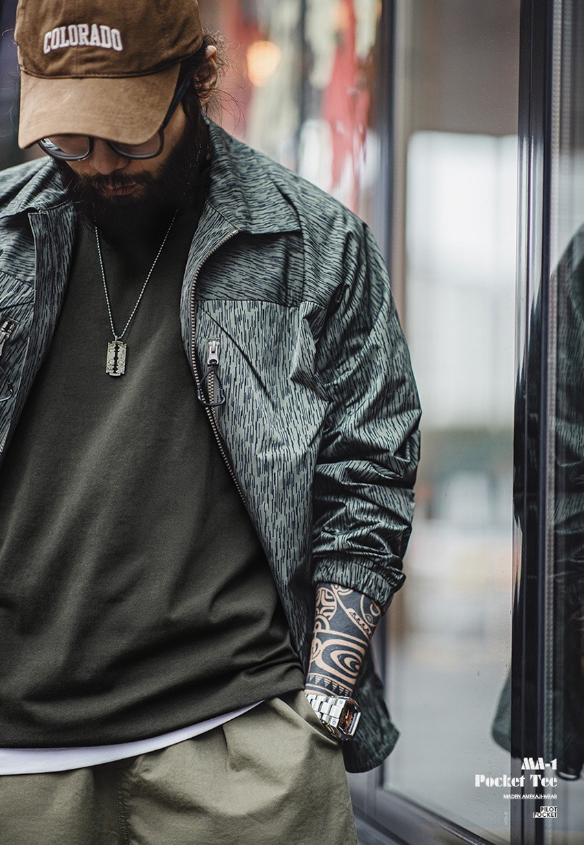 MA -1의 아이코닉한 지퍼 포켓을 사용하여 티셔츠 한 장으로도 스타일리쉬한 아이템입니다.