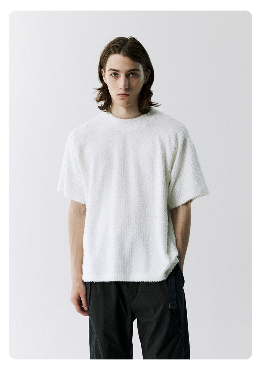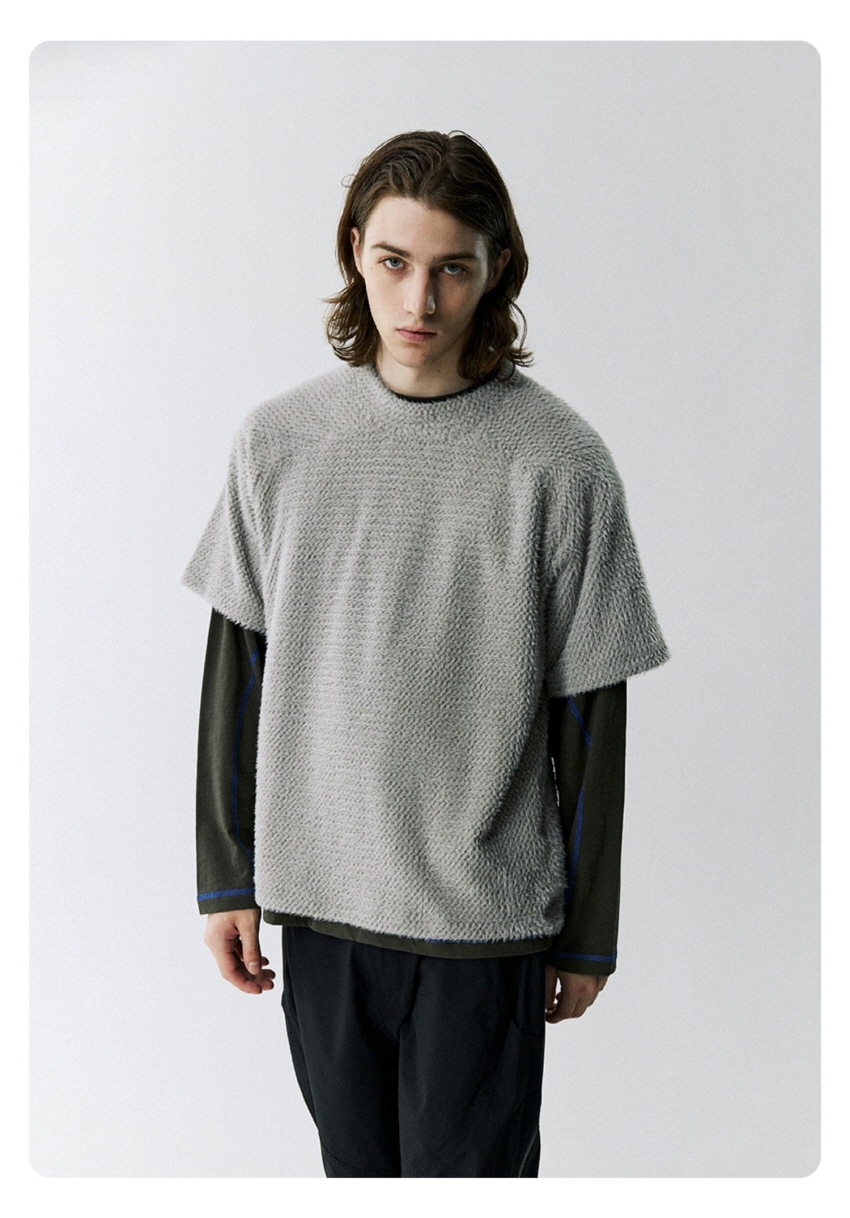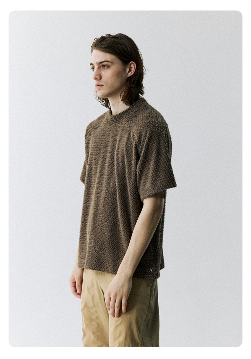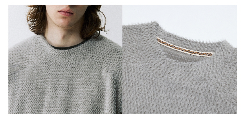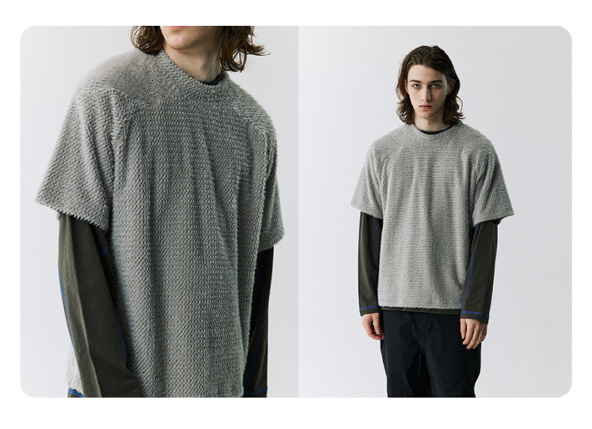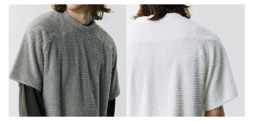 부드럽고 여유로운 원단 특성과 루즈한 실루엣 라인을 결합한 니트 티셔츠 입니다.