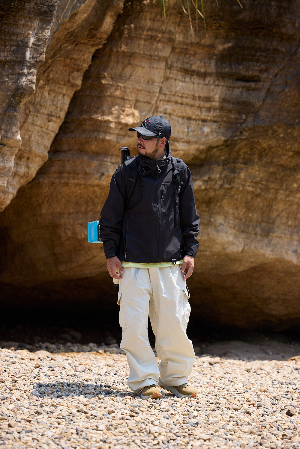3개의 포켓과 3가지 기능이 있는 윈드브레이커 자켓입니다.