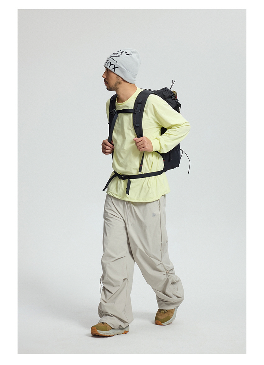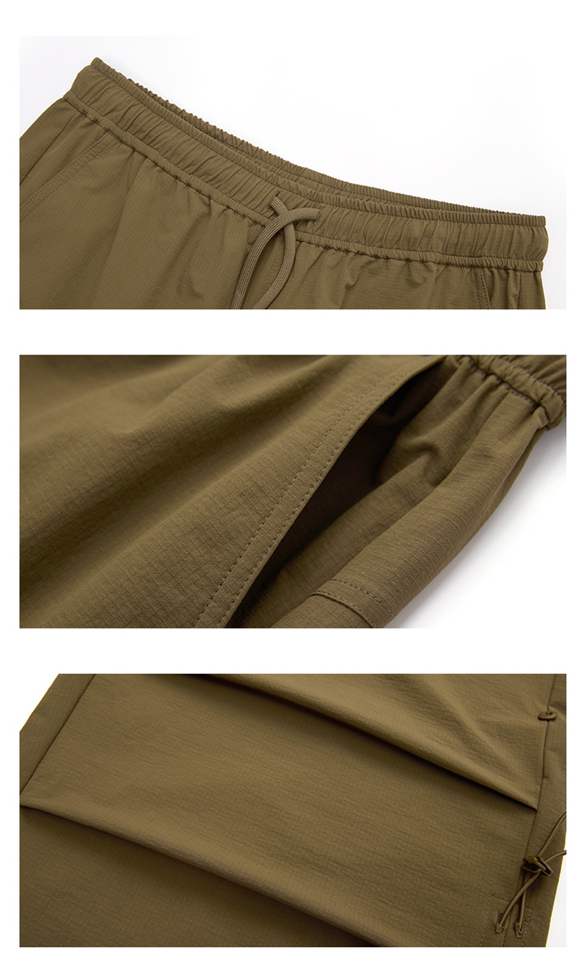 - 바지 옆면에 드로우 스트링 / 무릎 플리츠 디테일로 아웃도어 무드를 연출