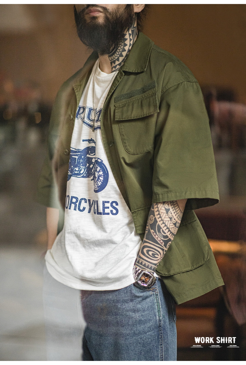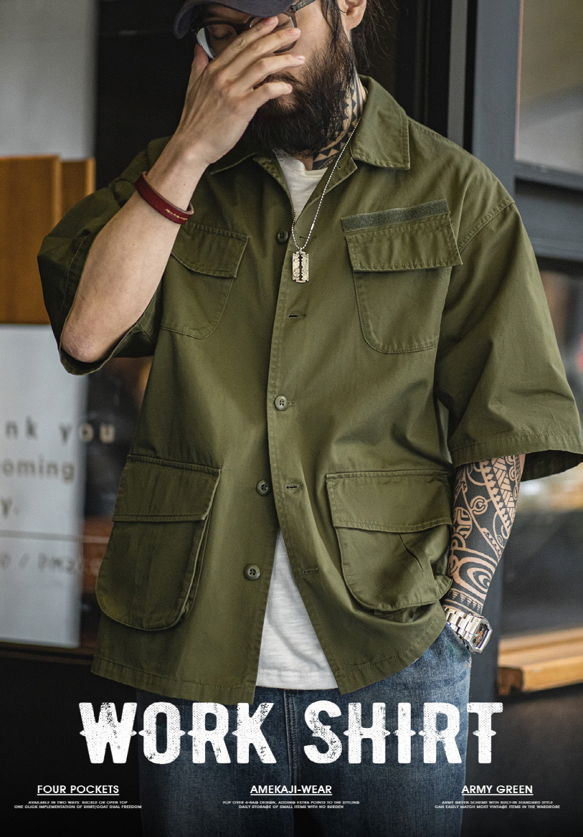 데일리하게 입을 수 있도록 디자인을 고안한 라이트 밀리터리 무드의 야상 카고 셔츠입니다.