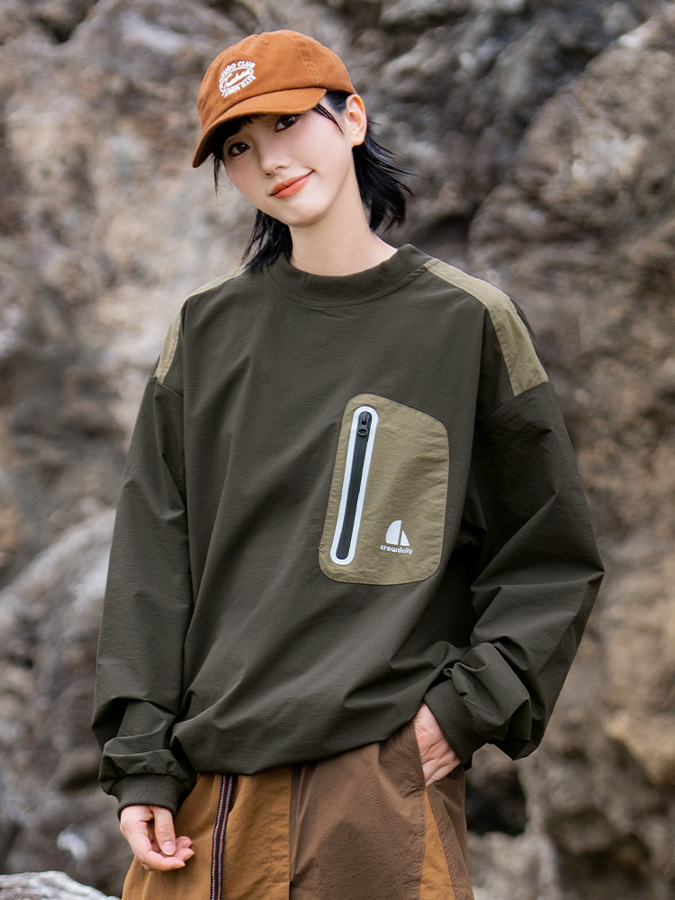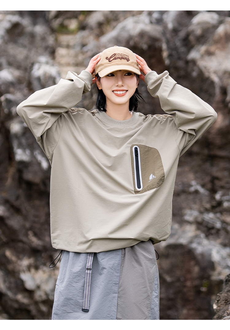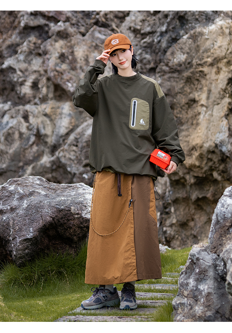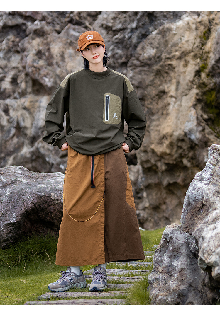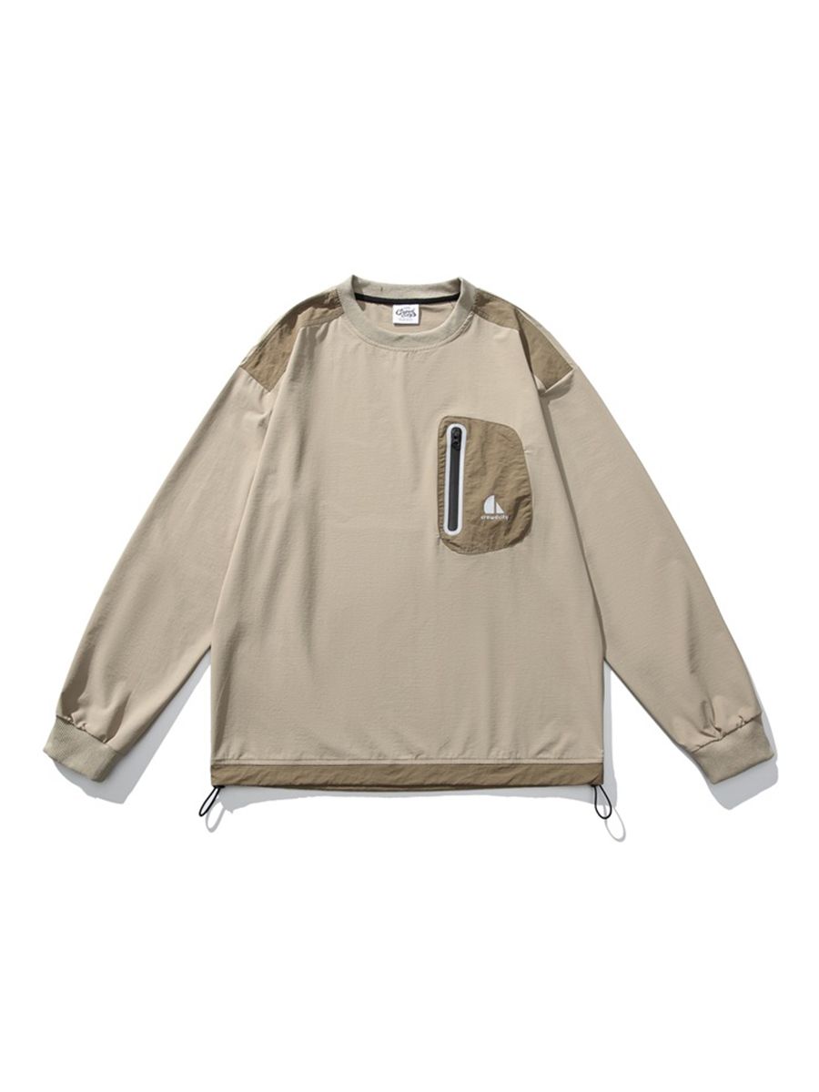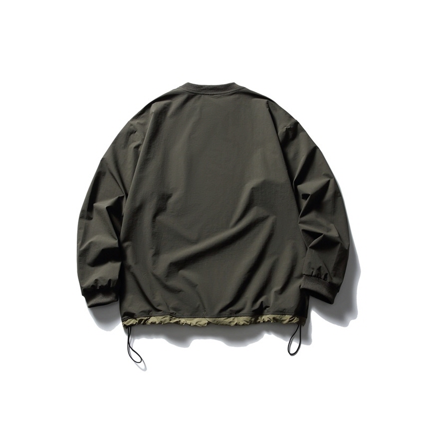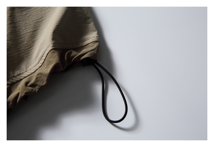 포켓 디테일과 나일론 소재로 아웃도어 무드를 보여주는 루즈핏 티셔츠입니다.