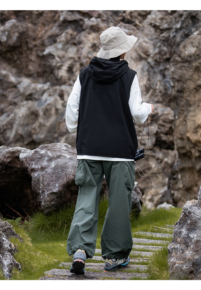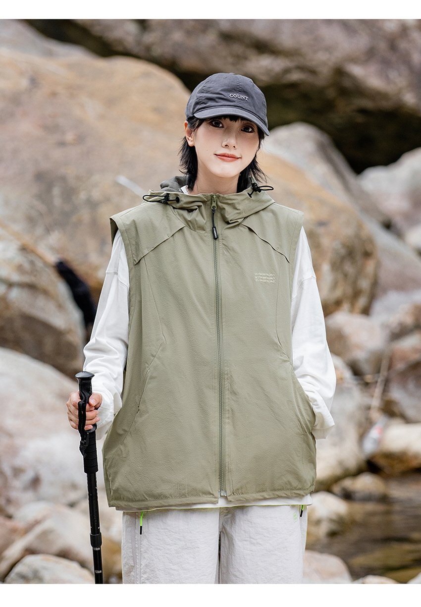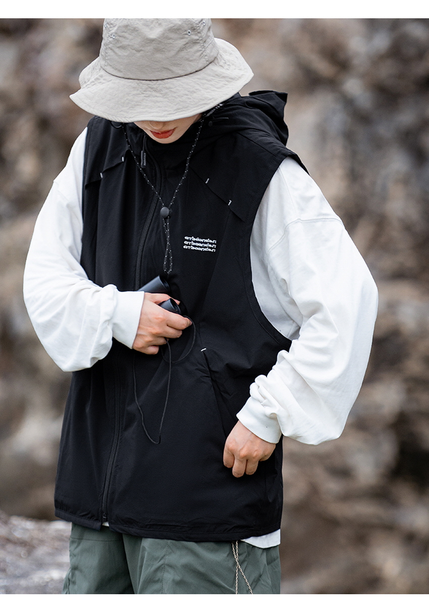 아웃도어 또는 데일리하게 입기 좋은 기능적인 후드 조끼입니다.