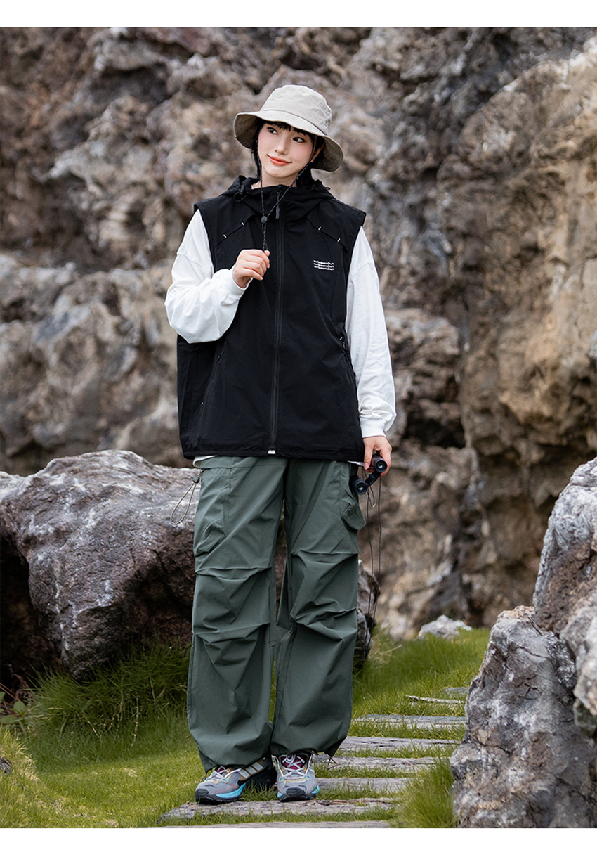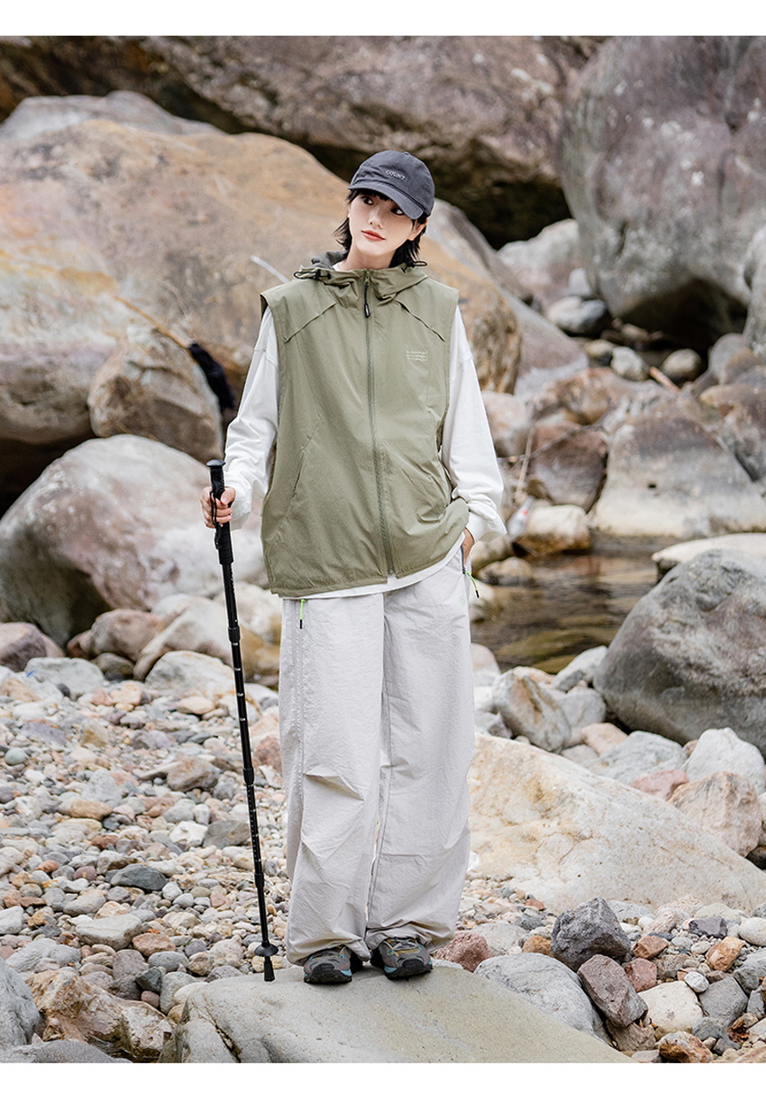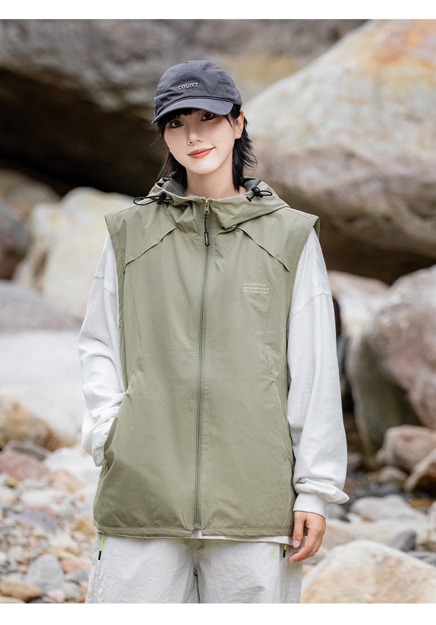 아웃도어 또는 데일리하게 입기 좋은 기능적인 후드 조끼입니다.
