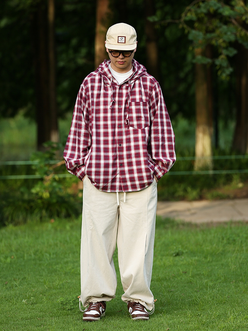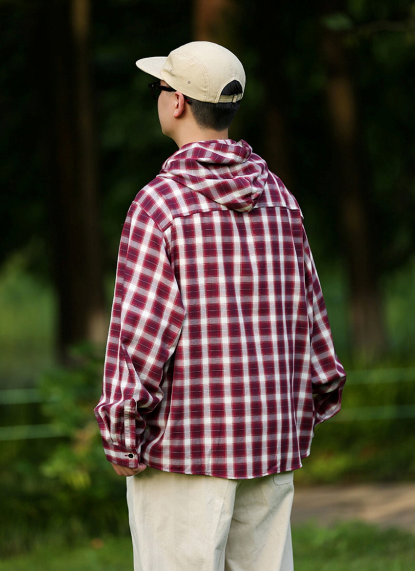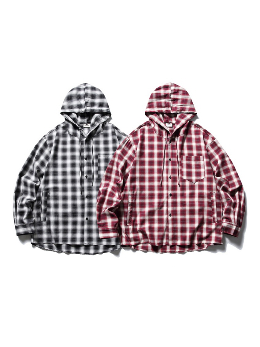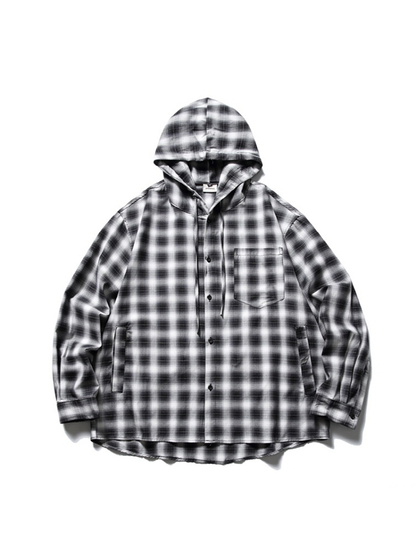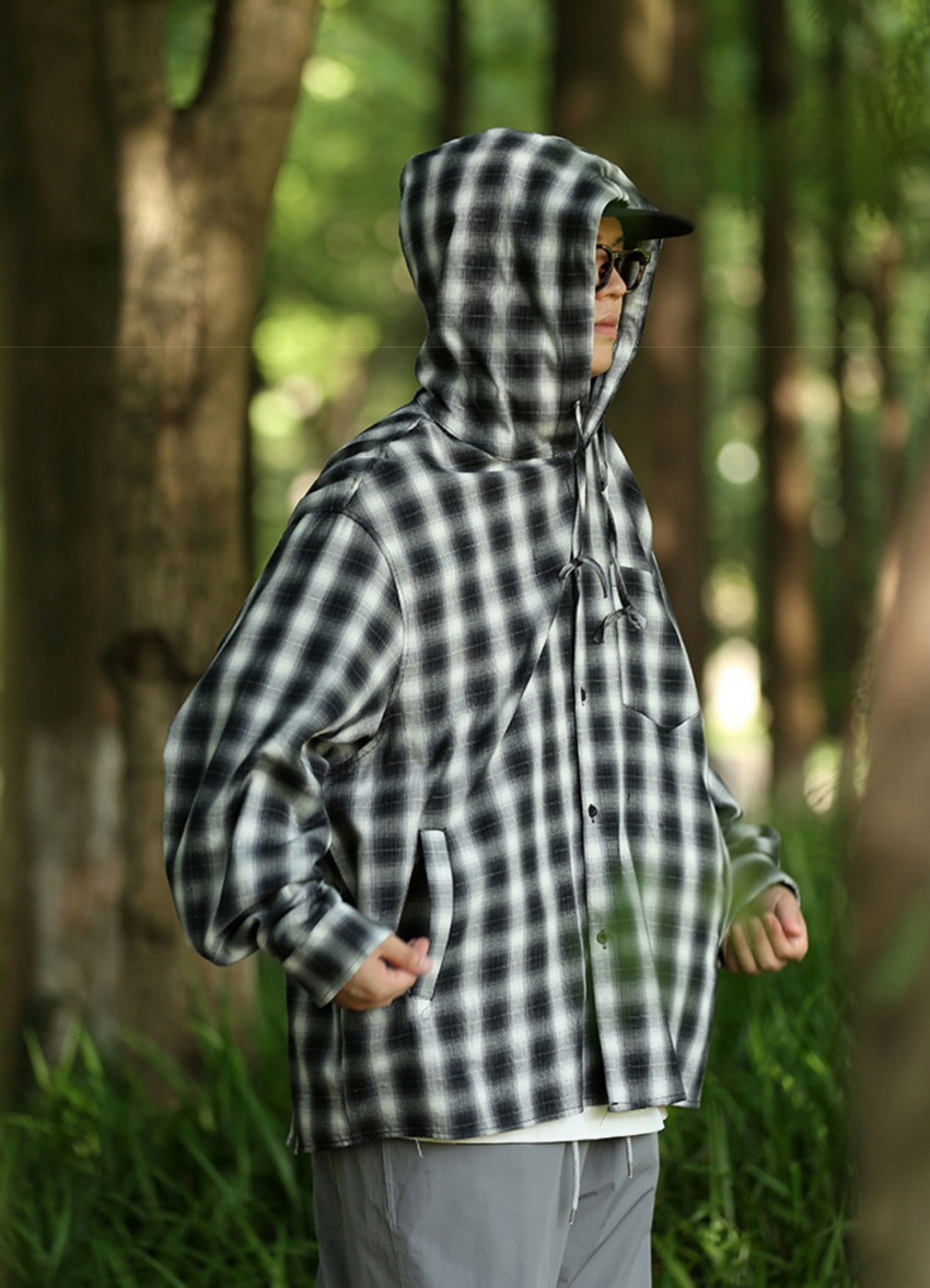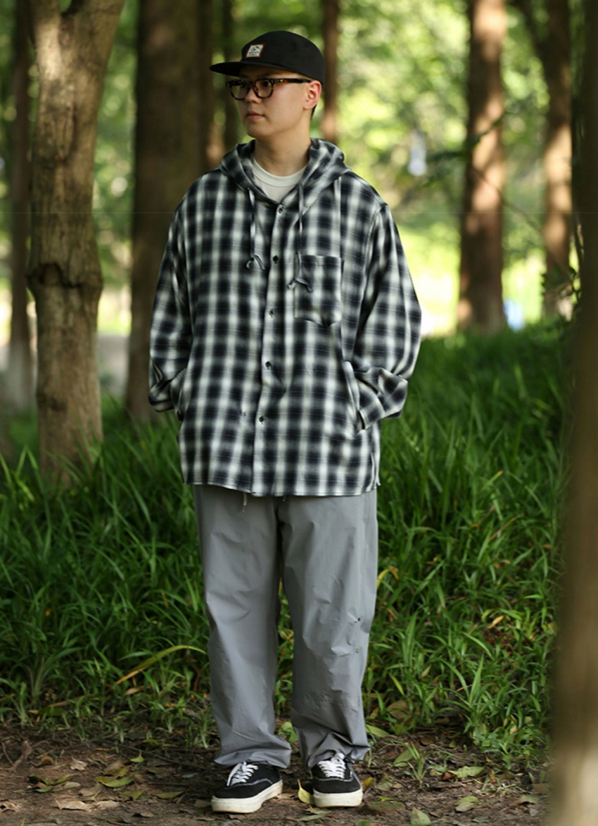 데일리로 입기 좋은 빈티지한 무드의 체크 패턴 후드 셔츠입니다.