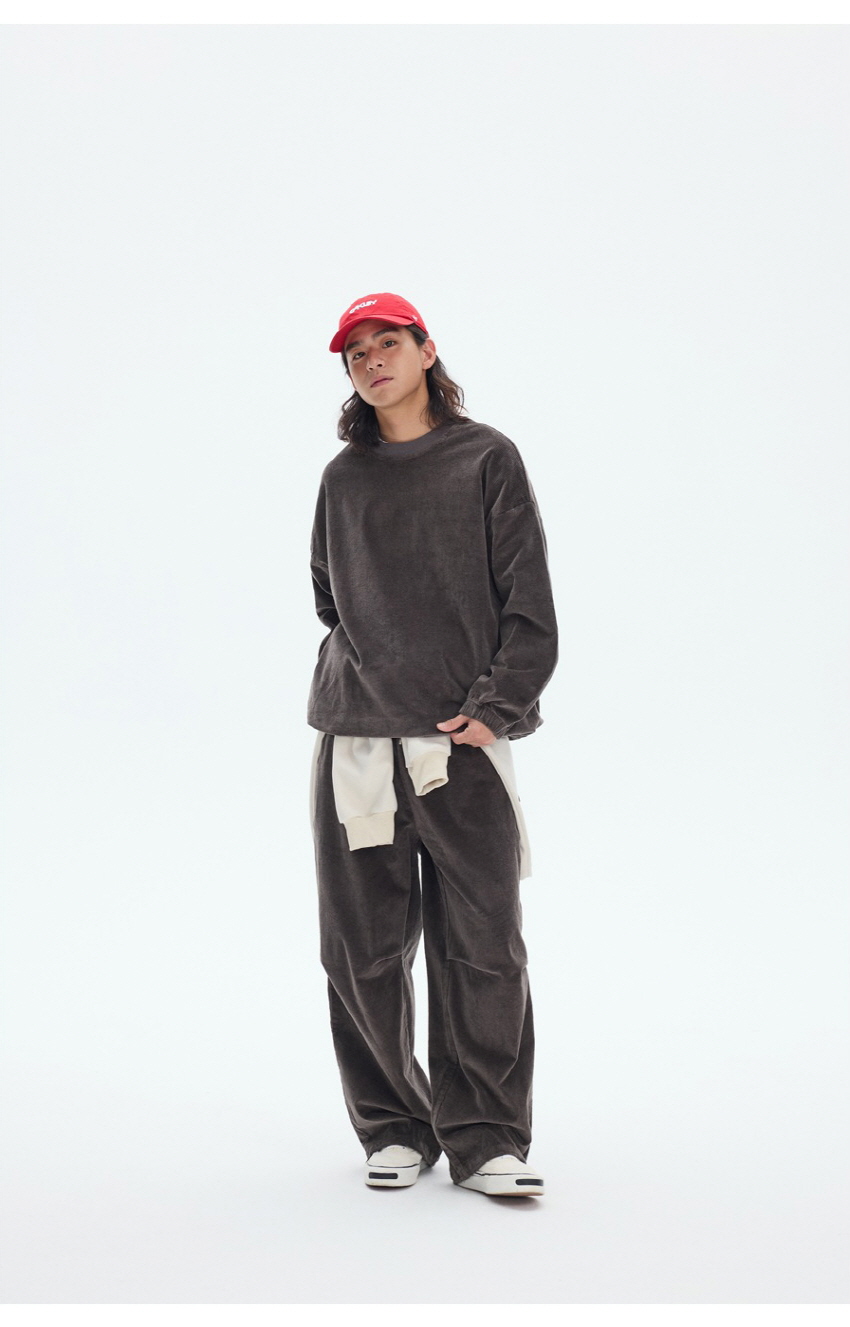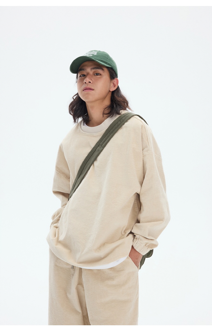 코듀로이 원단으로 제작한 루즈핏 스웻셔츠입니다.