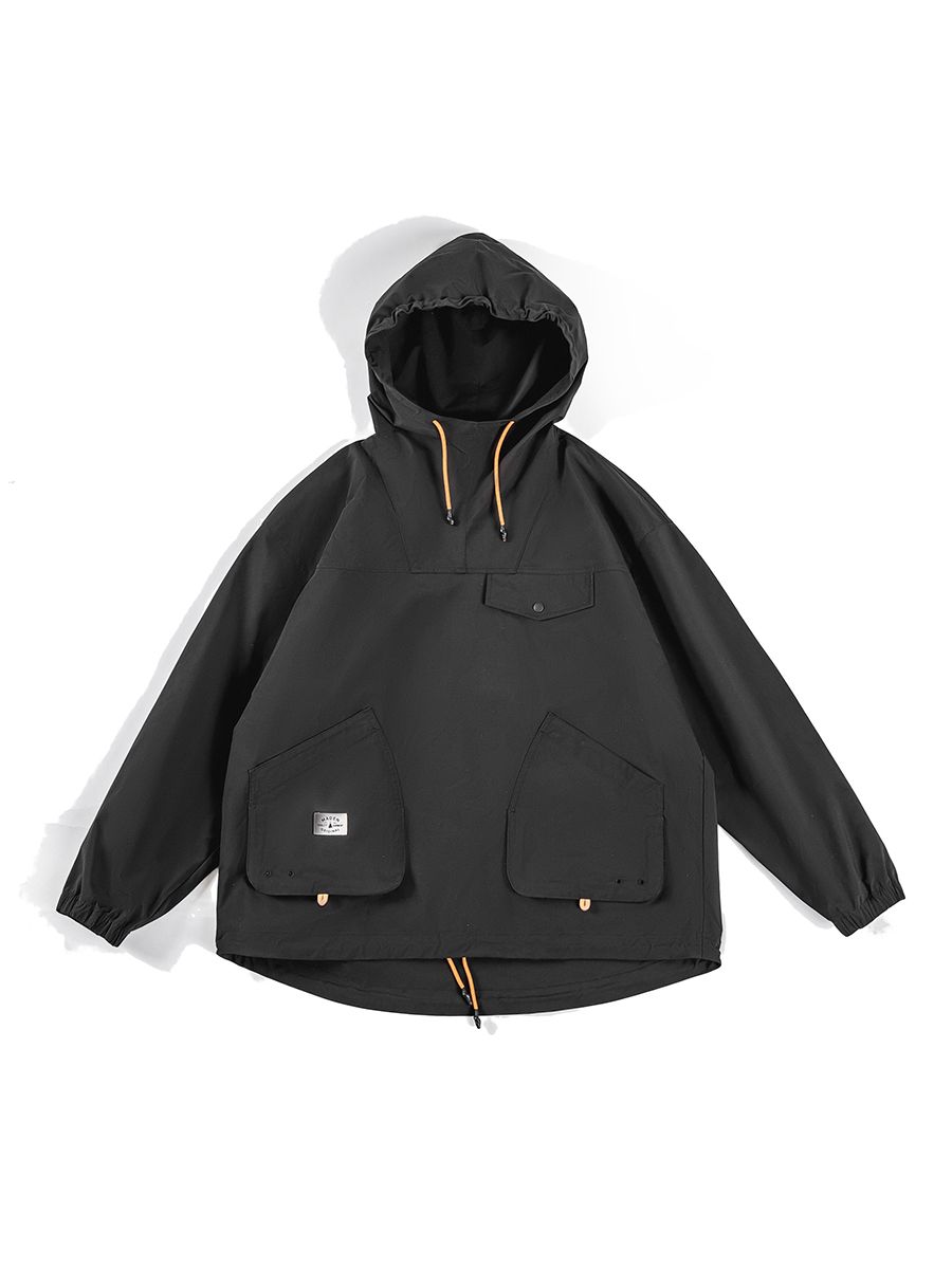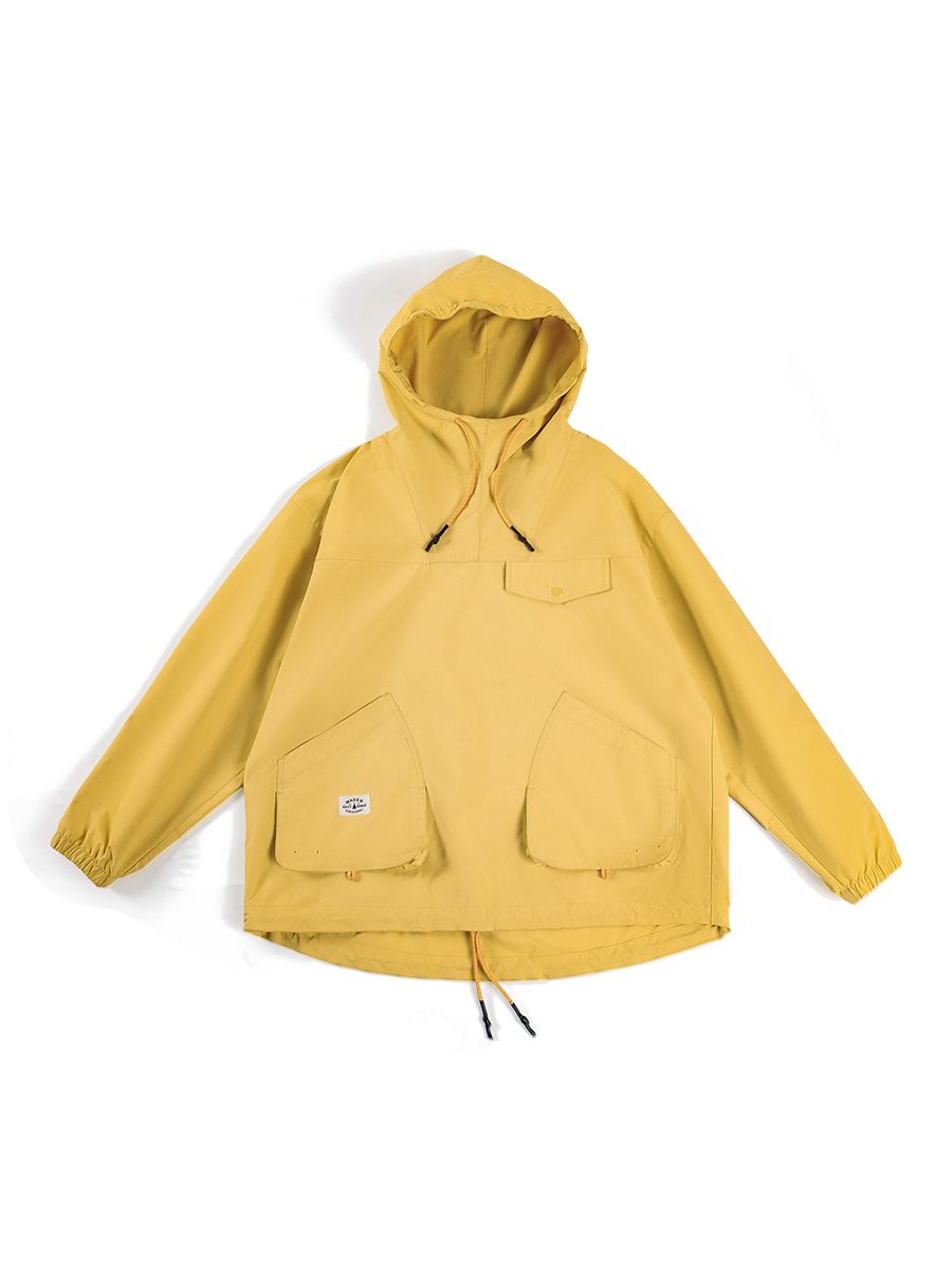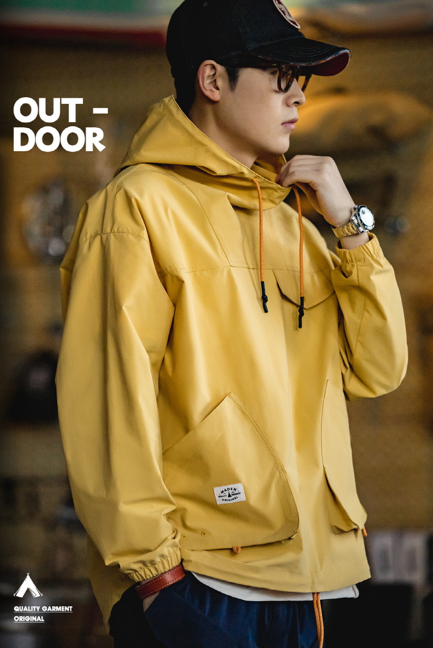후드 형태의 디자인으로 제작된 아웃도어 윈드브레이커입니다.