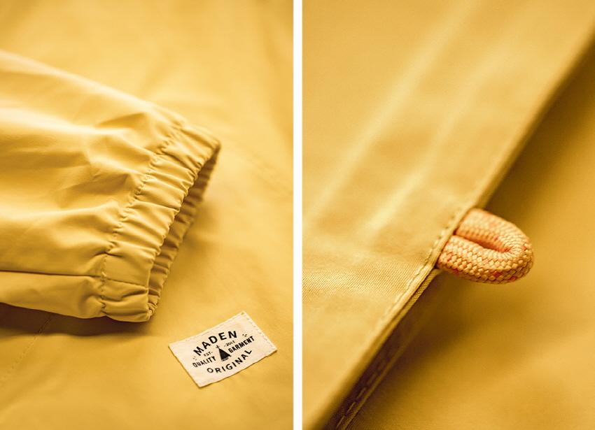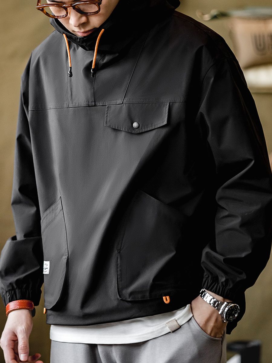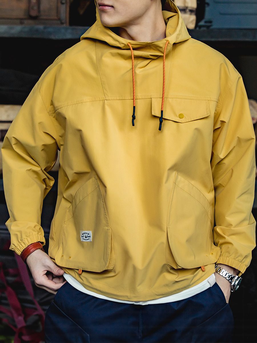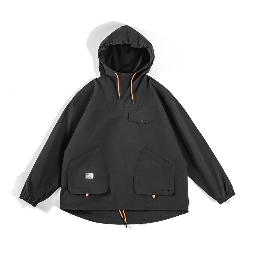 후드 형태의 디자인으로 제작된 아웃도어 윈드브레이커입니다.