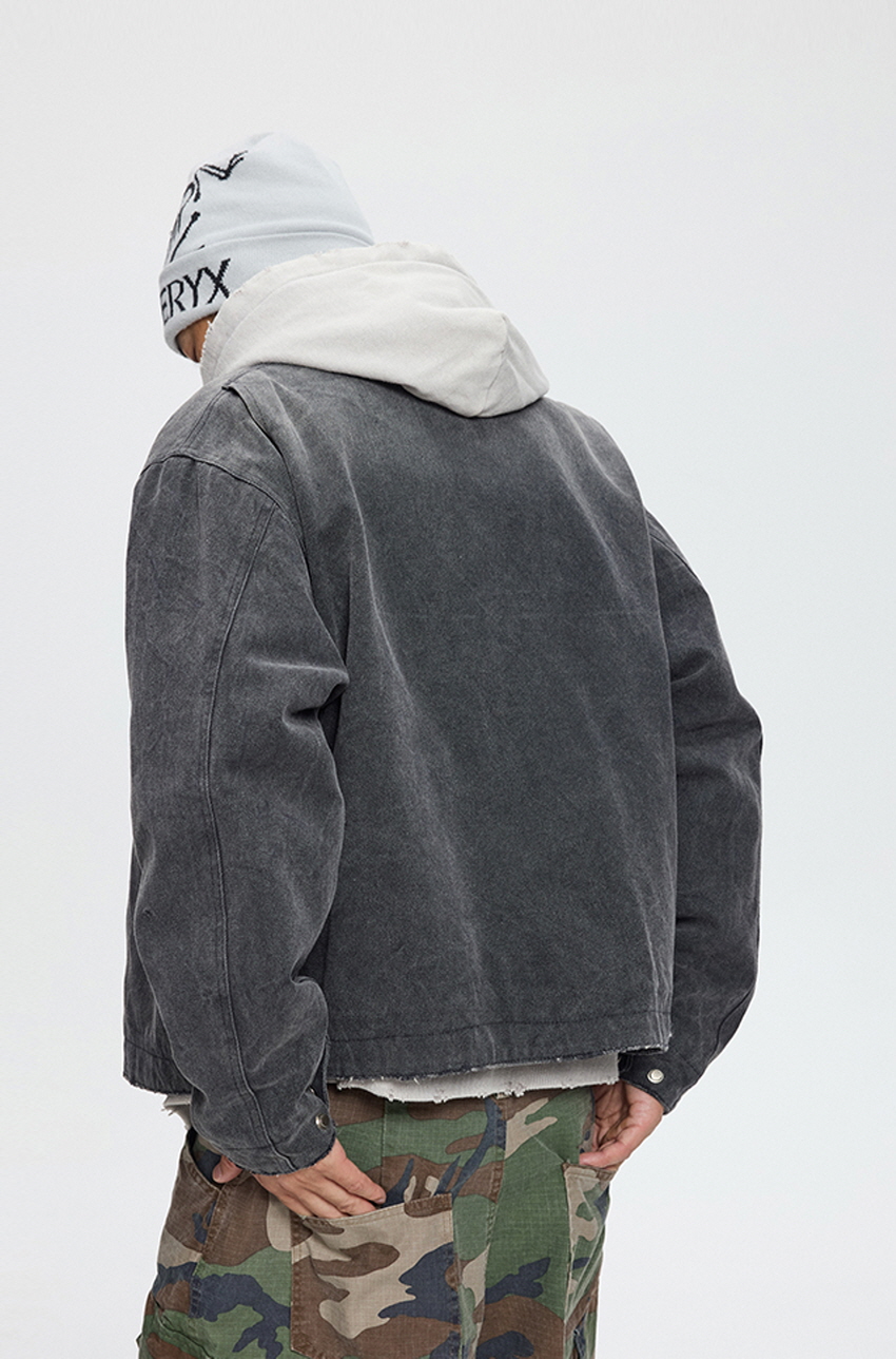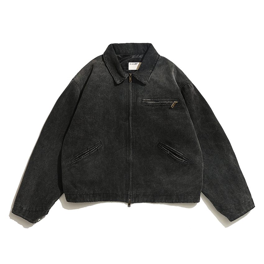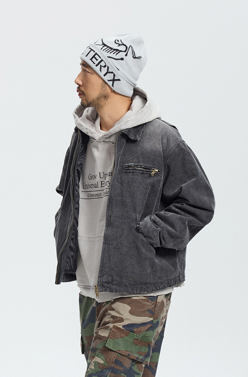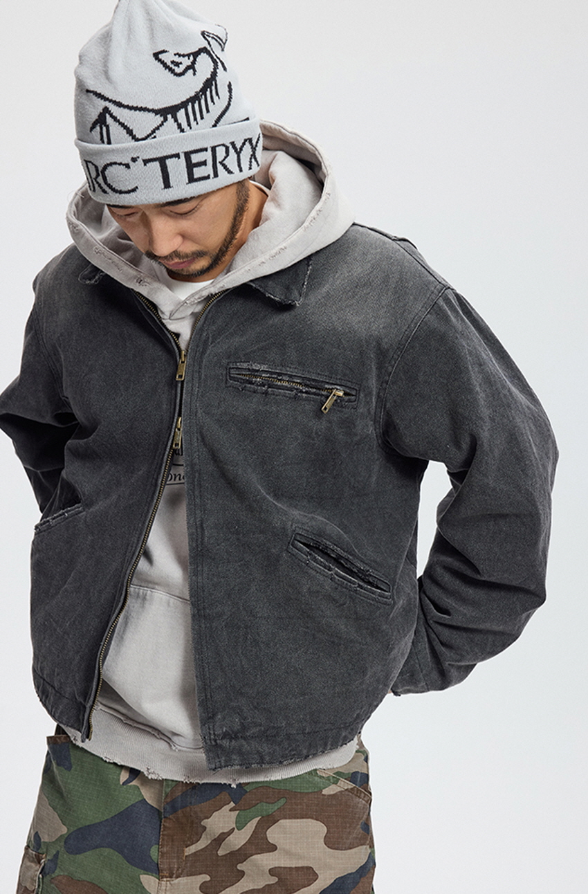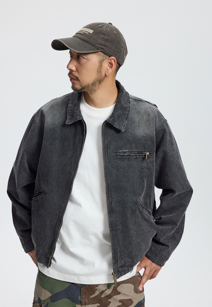 빈티지한 무드로 워싱 처리가 된 코튼 자켓입니다..
