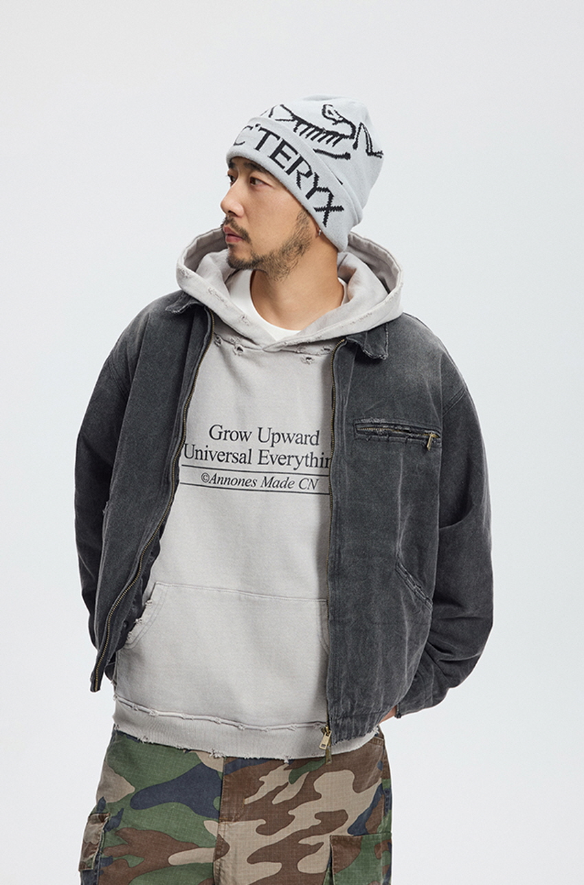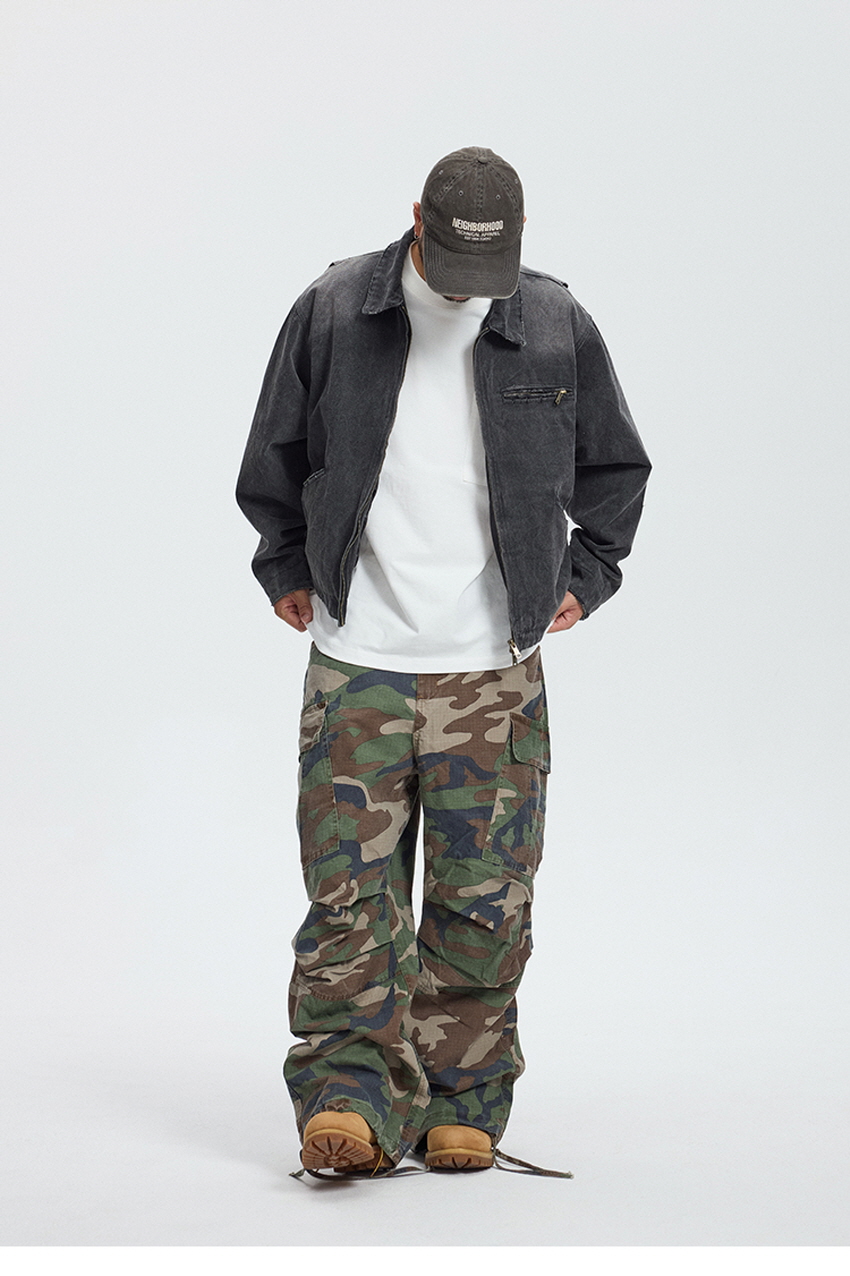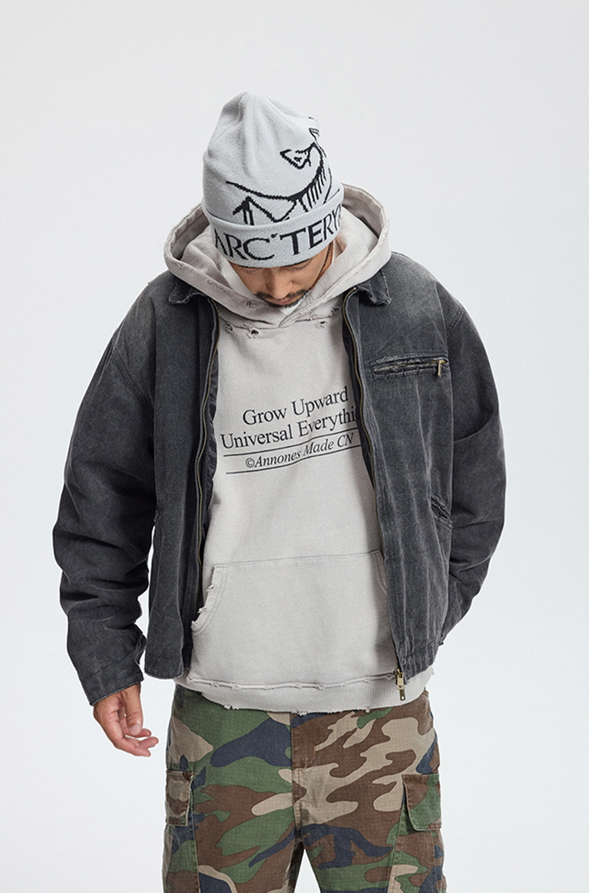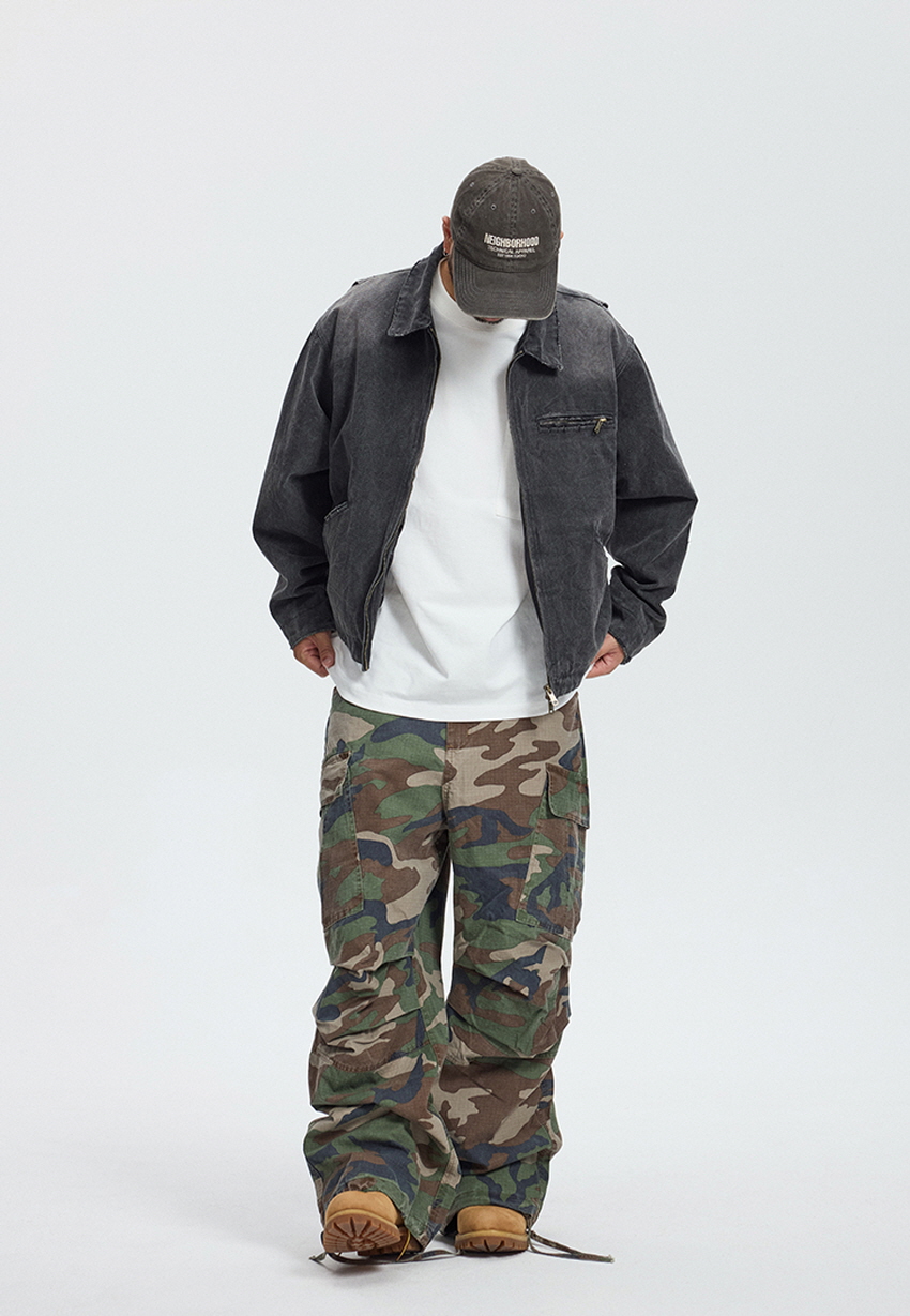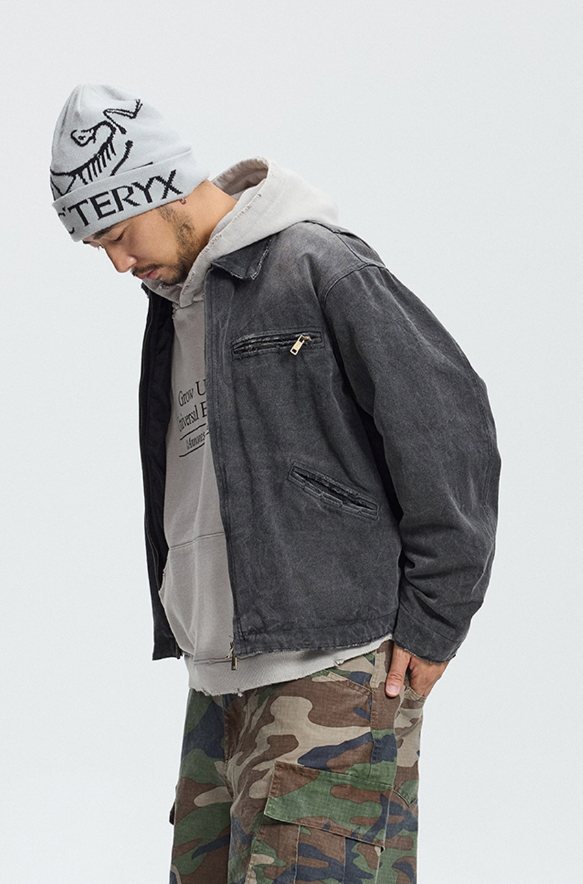 빈티지한 무드로 워싱 처리가 된 코튼 자켓입니다..