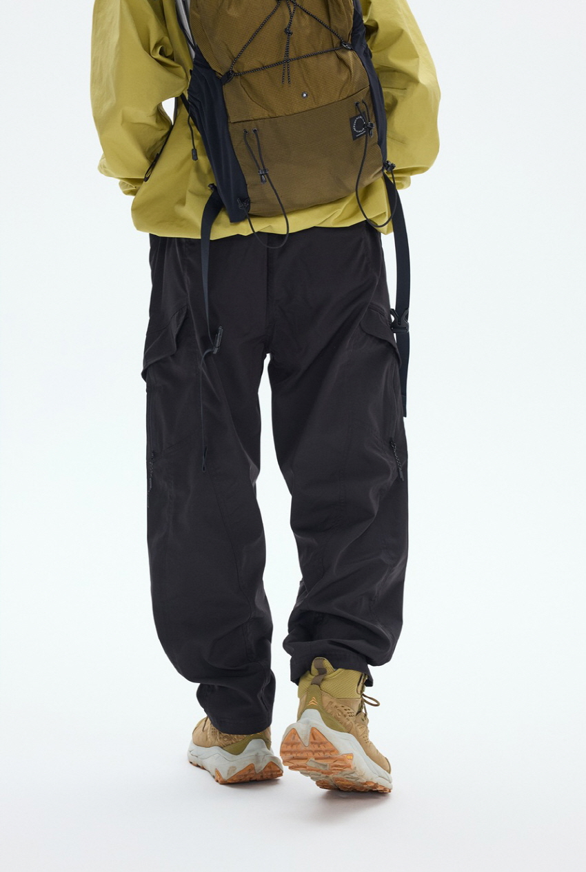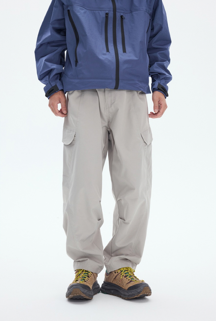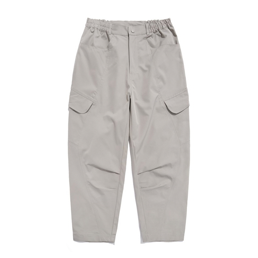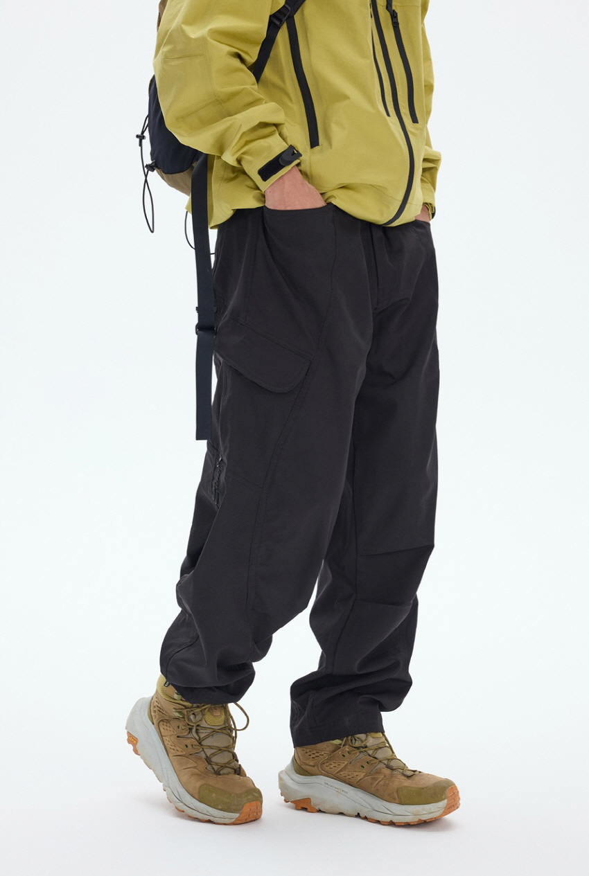 사이드 포켓 디자인과 와이드한 핏의 아웃도어 밴딩 카고 팬츠입니다.