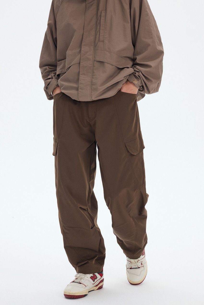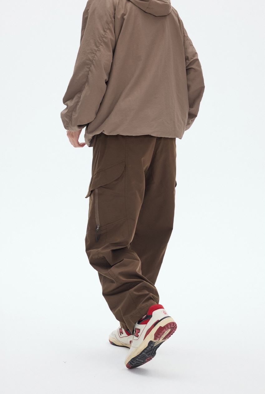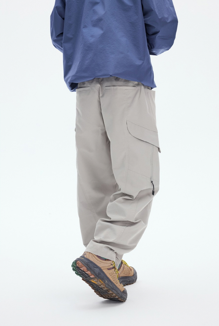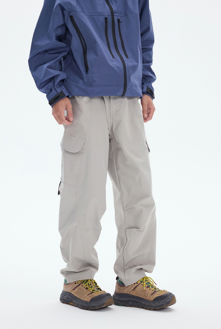 사이드 포켓 디자인과 와이드한 핏의 아웃도어 밴딩 카고 팬츠입니다.