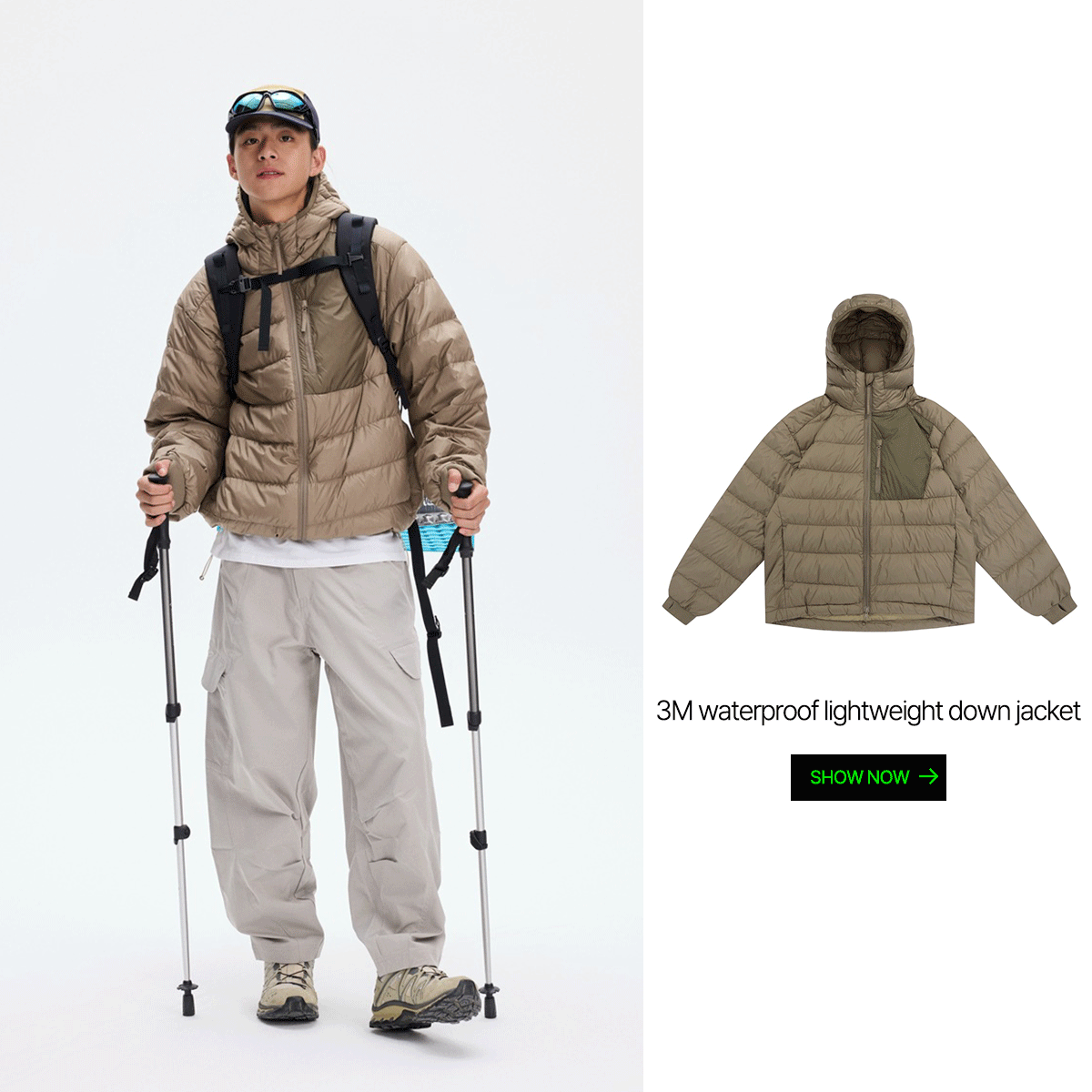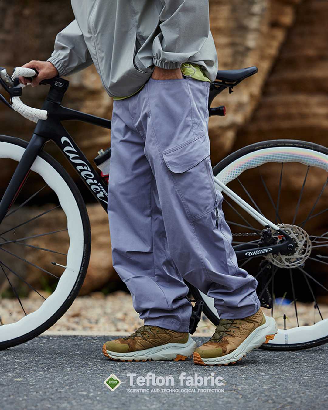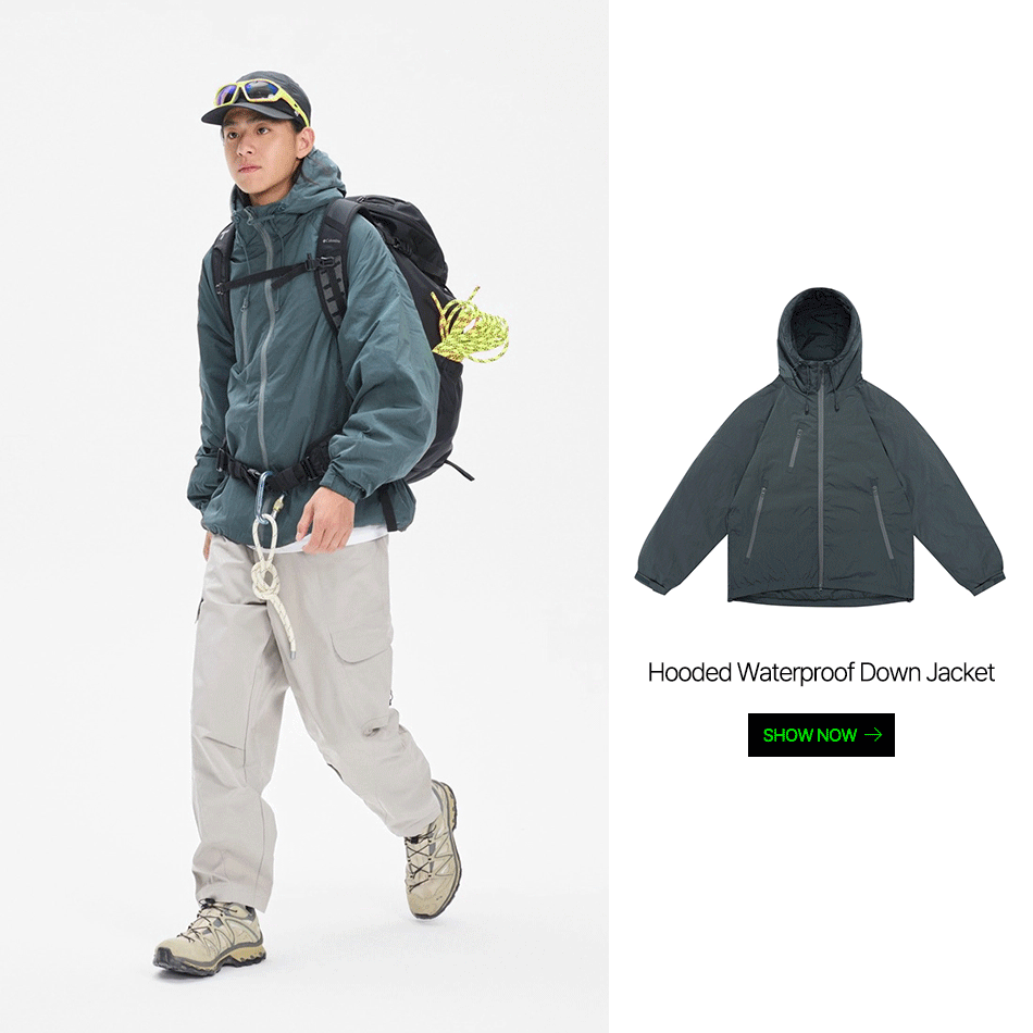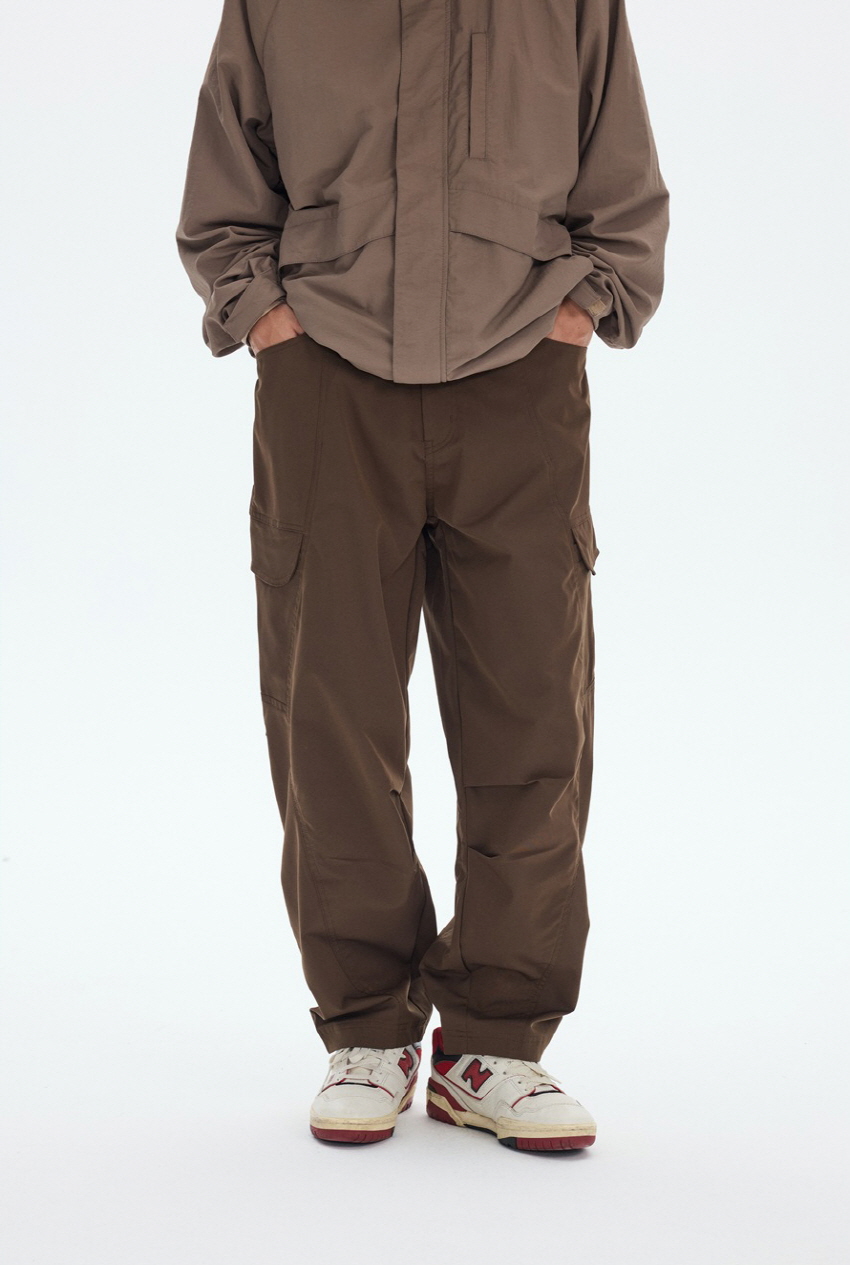 사이드 포켓 디자인과 와이드한 핏의 아웃도어 밴딩 카고 팬츠입니다.
