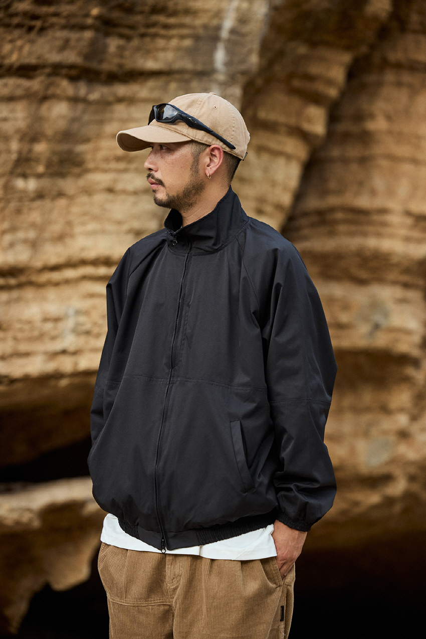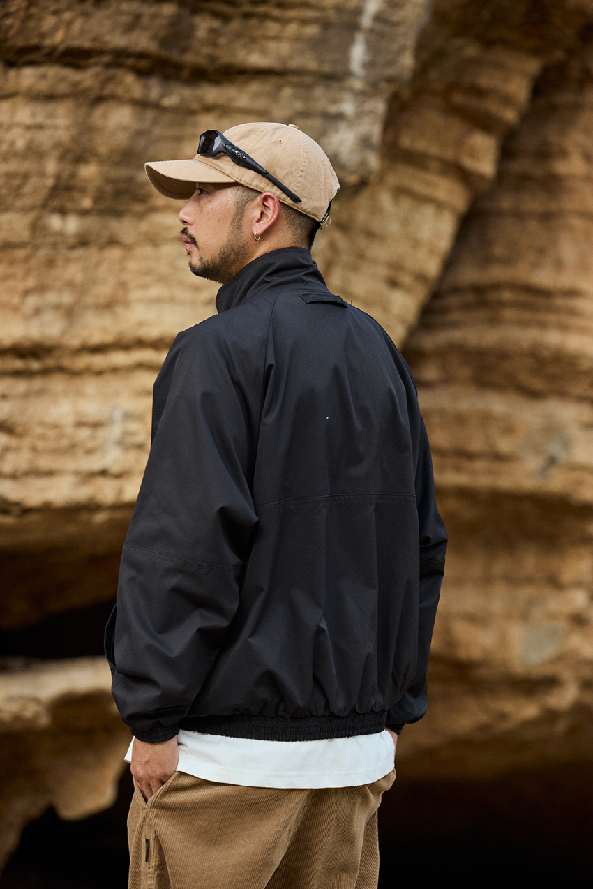 테프론 원단을 사용하여 다양한 기능성을 가지고 있는 스탠딩 카라 라이딩 자켓입니다.