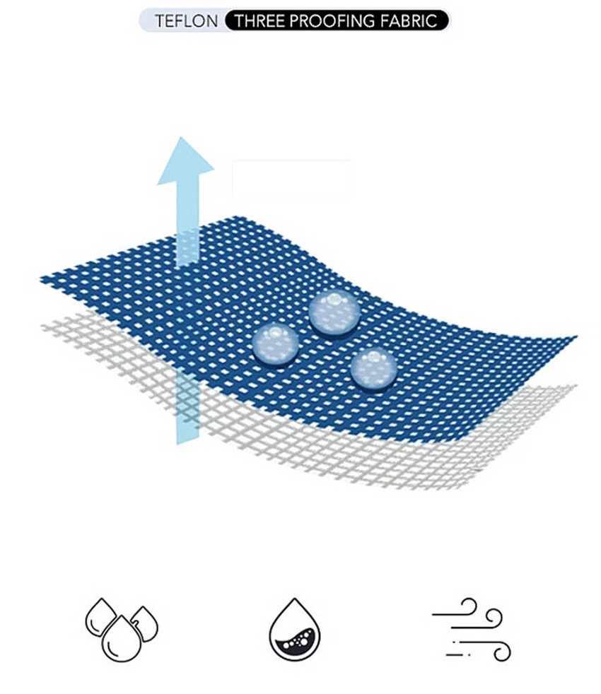 - 방수, 흡습성, 빠른 건조,통기성 등 다양한 기능이 있는 소재 사용