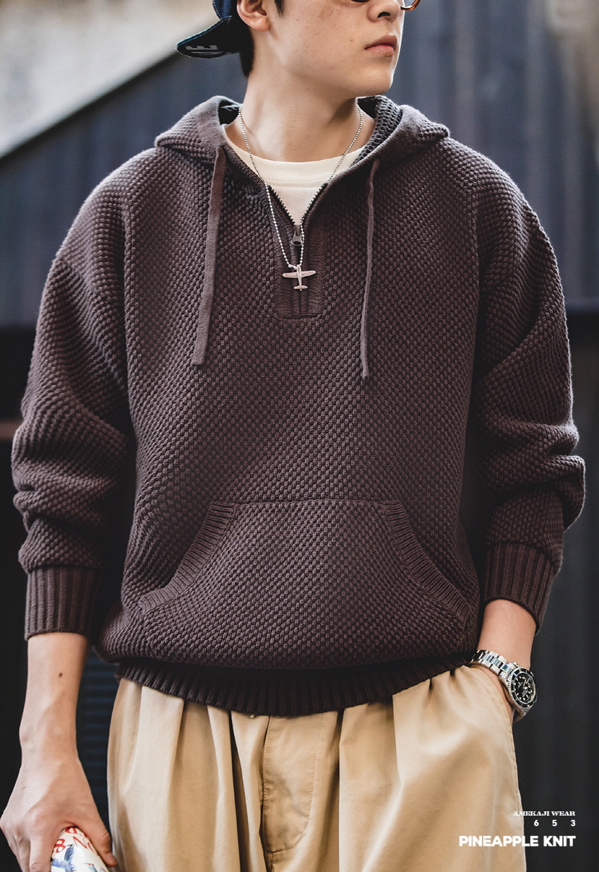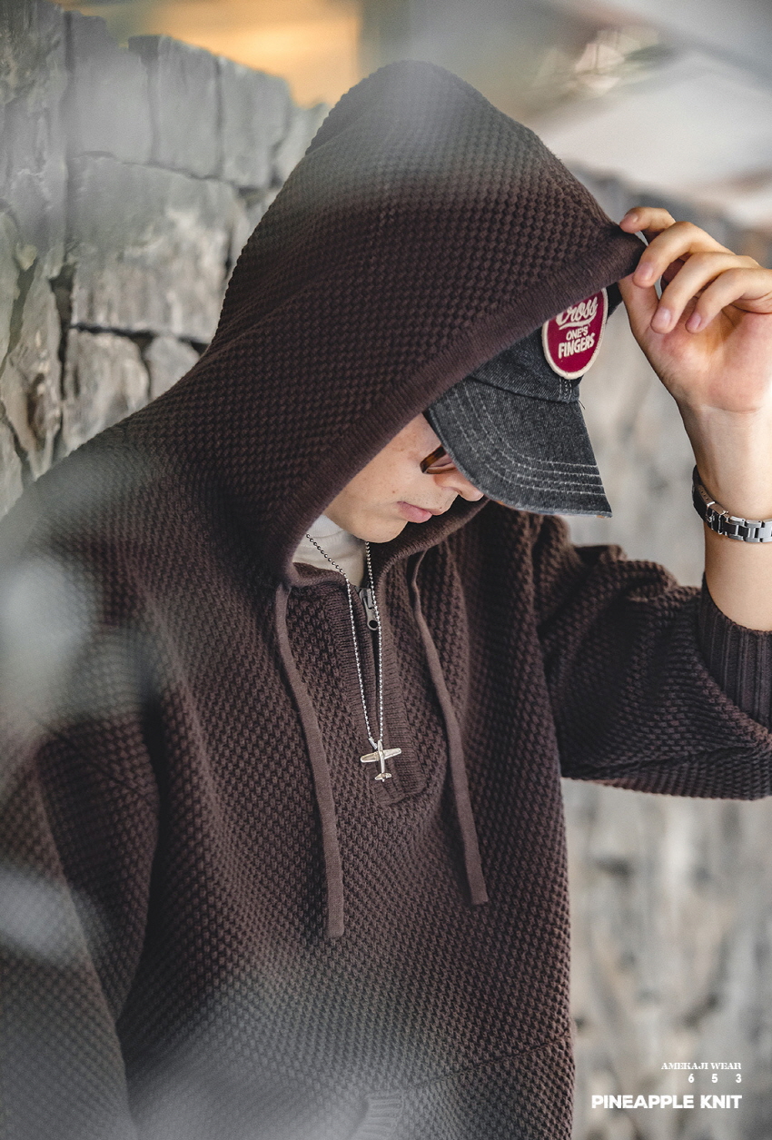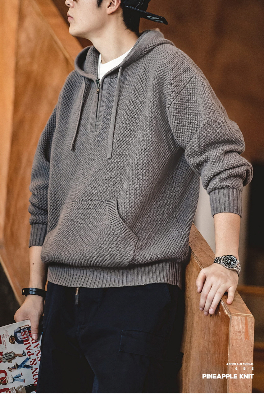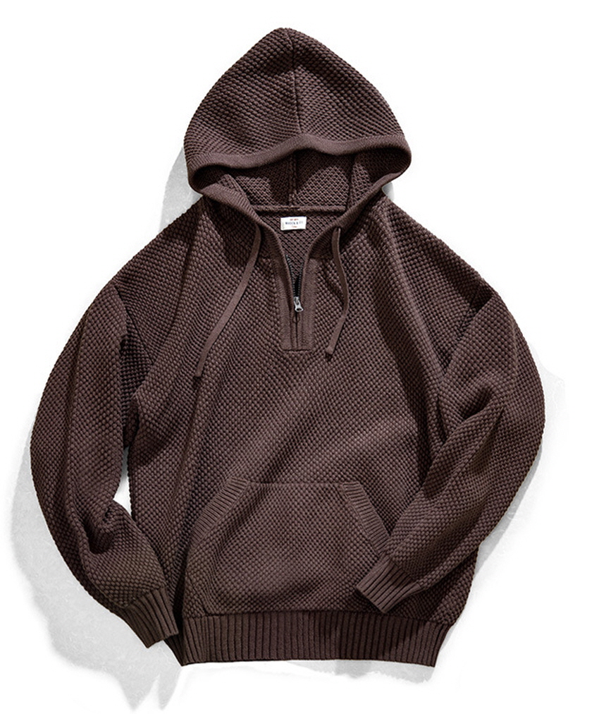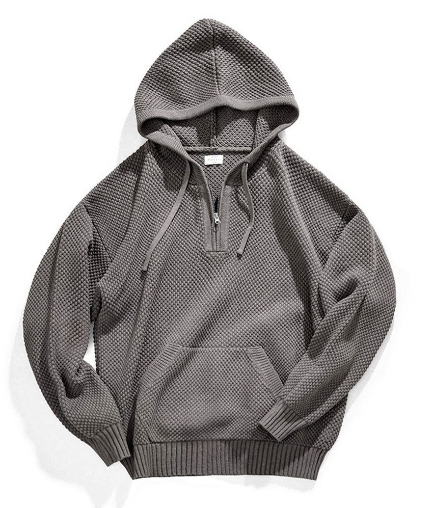 Half Zip-Up Knitwear Hooded Sweatshirt