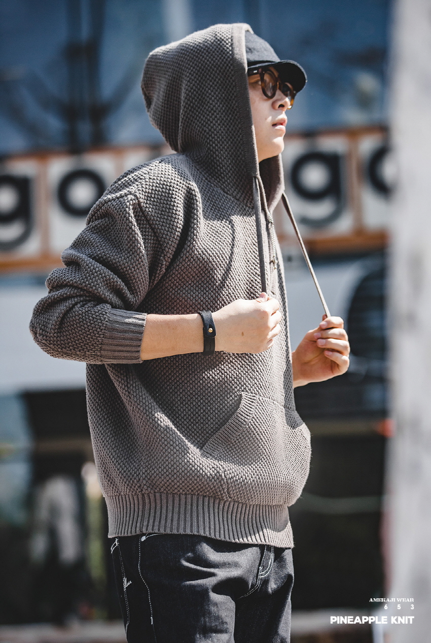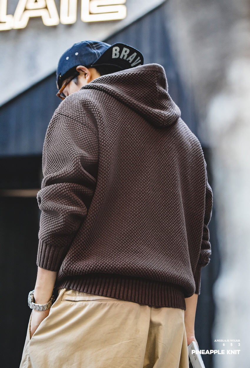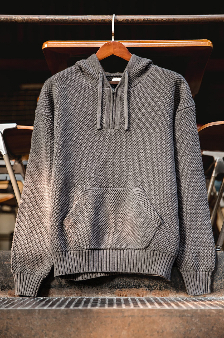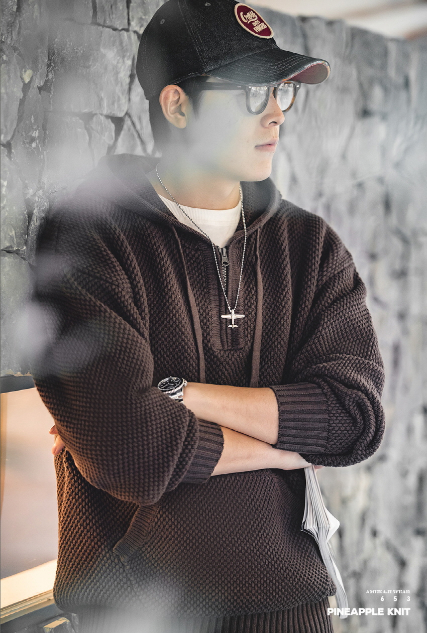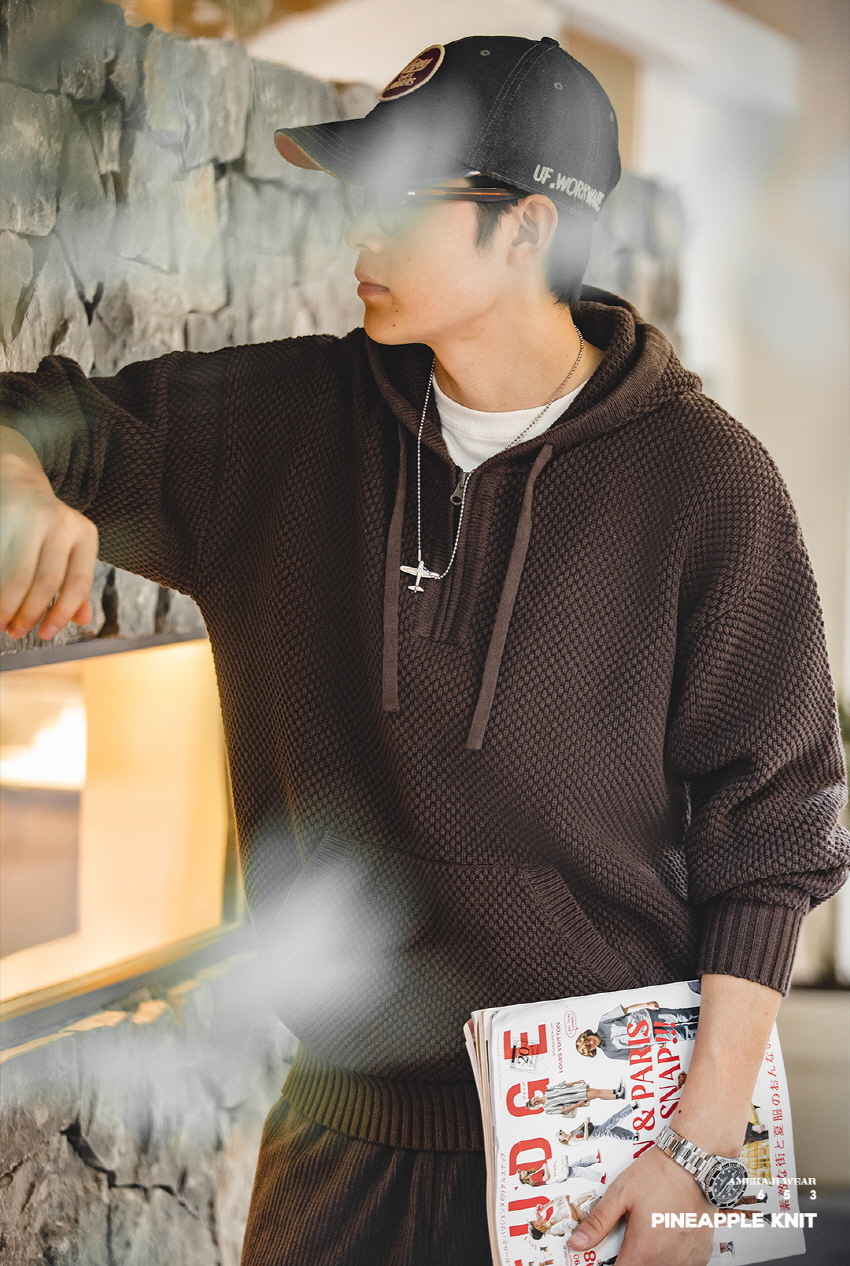 Half Zip-Up Knitwear Hooded Sweatshirt