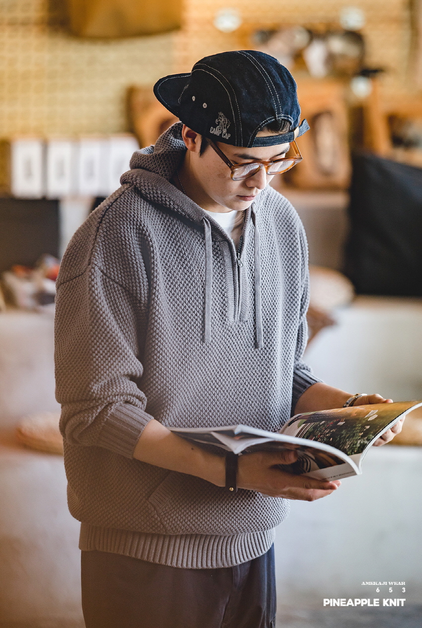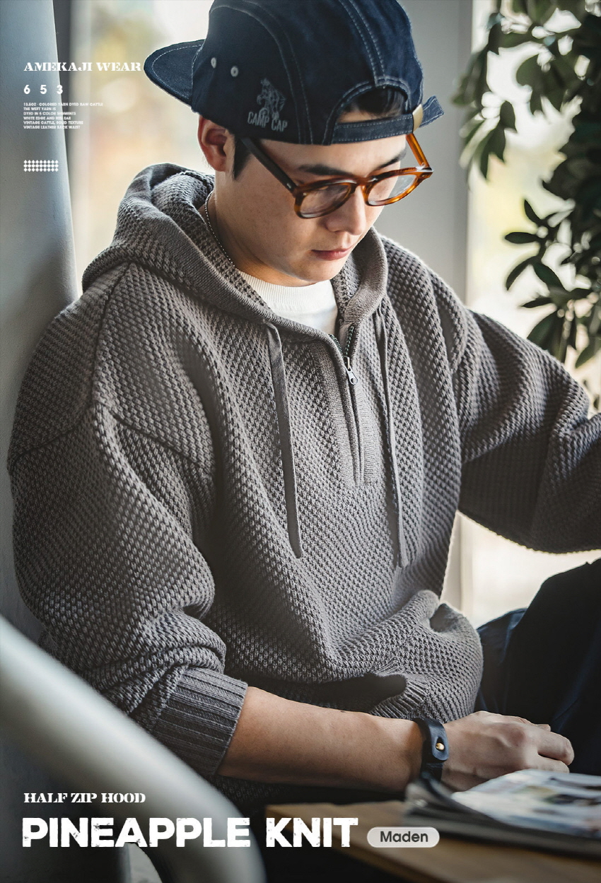 가을/겨울 데일리하게 즐기기 좋은 와플 패턴 하프 집업 니트입니다.