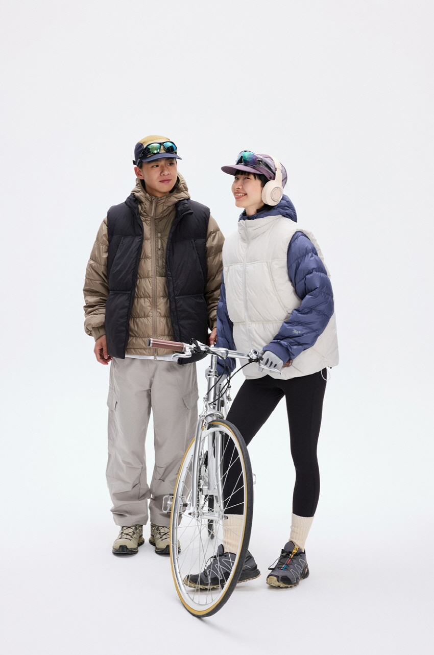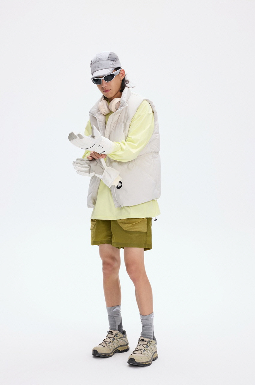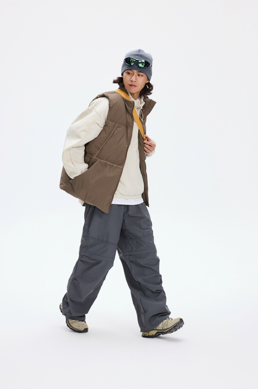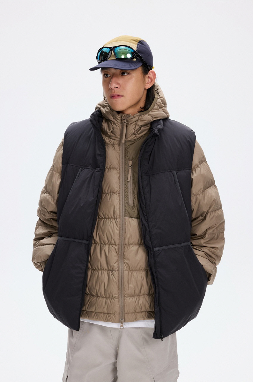 레트로한 무드의 라인과 배색이 포인트인 따뜻한 아웃도어 패딩 조끼입니다.