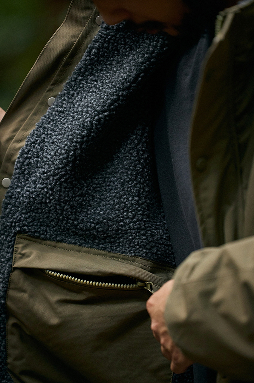 플리스 안감을 사용하여 따뜻한 착용감을 느낄 수 있는 빈티지한 무드의 플라이트 자켓입니다.
