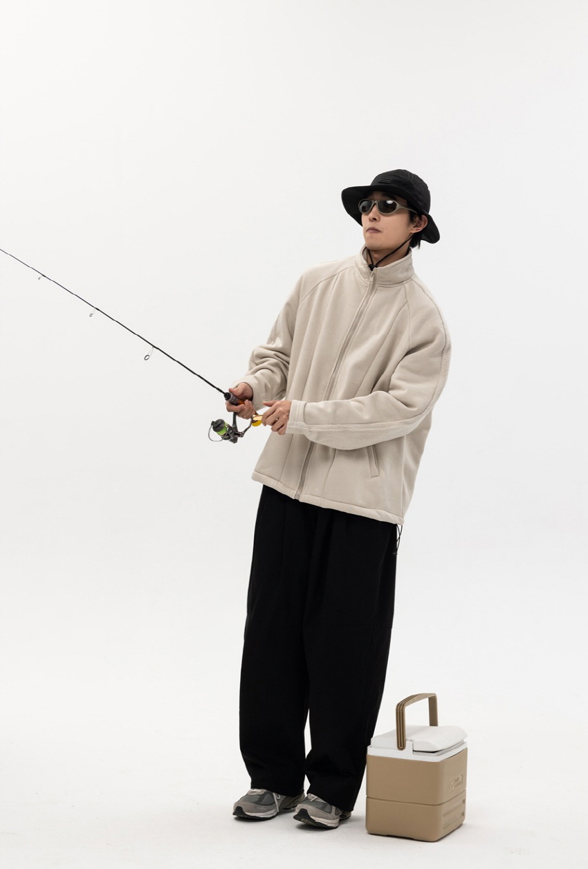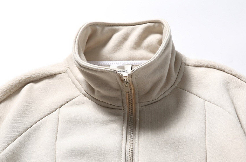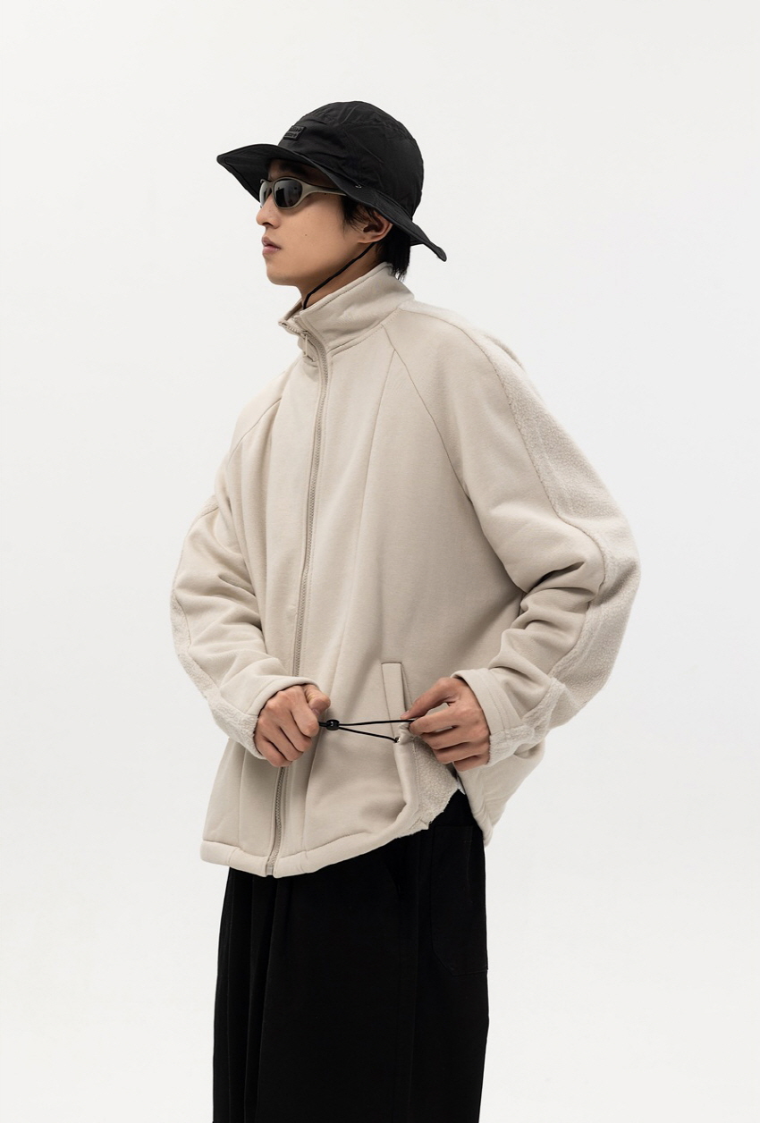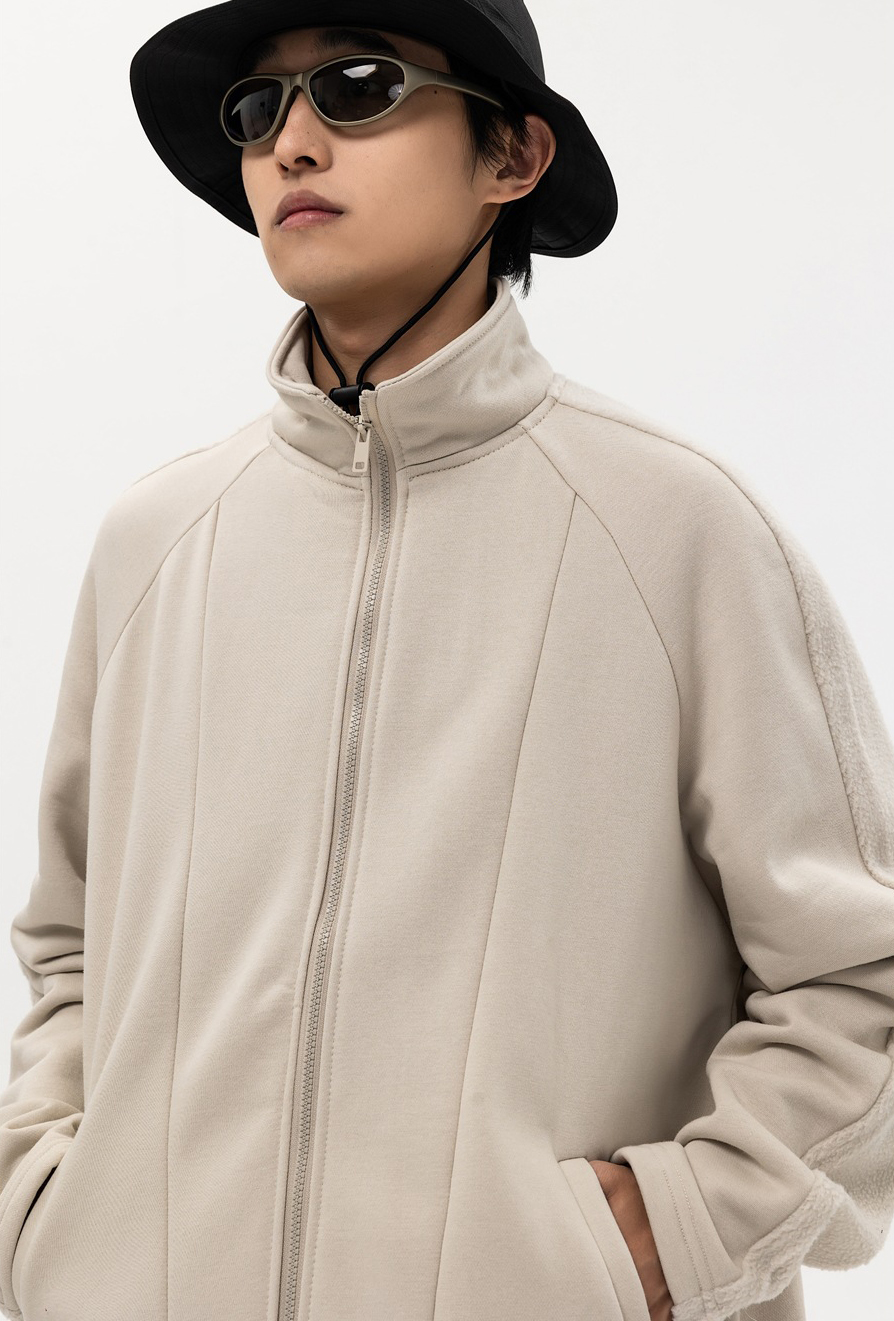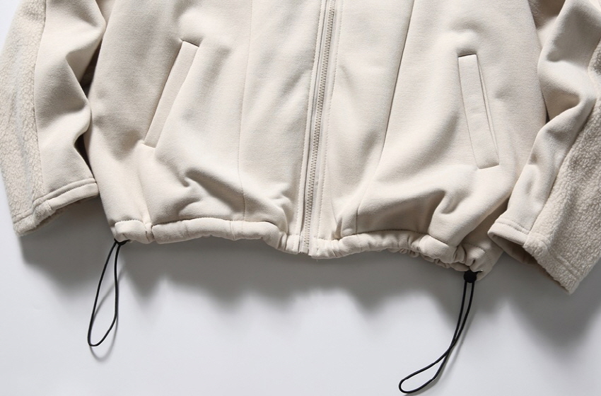 부드럽고 푹신한 소재감의 스탠딩 칼라 집업 아우터입니다.