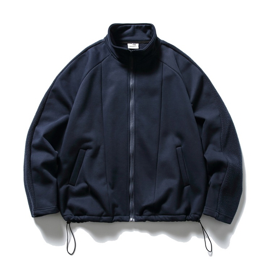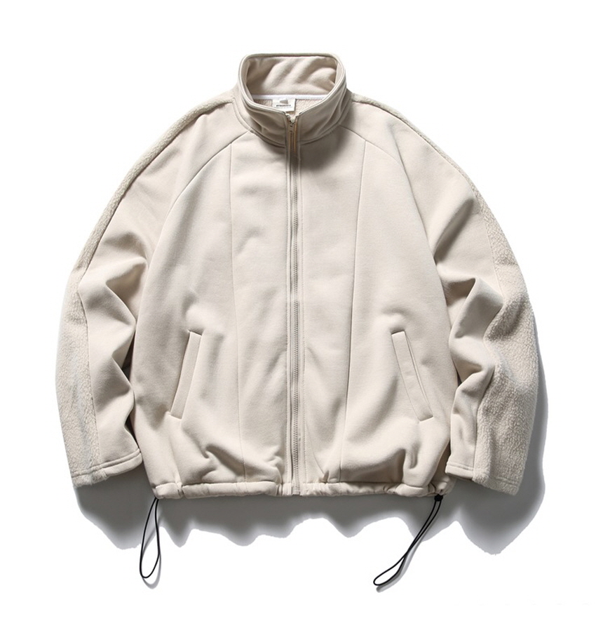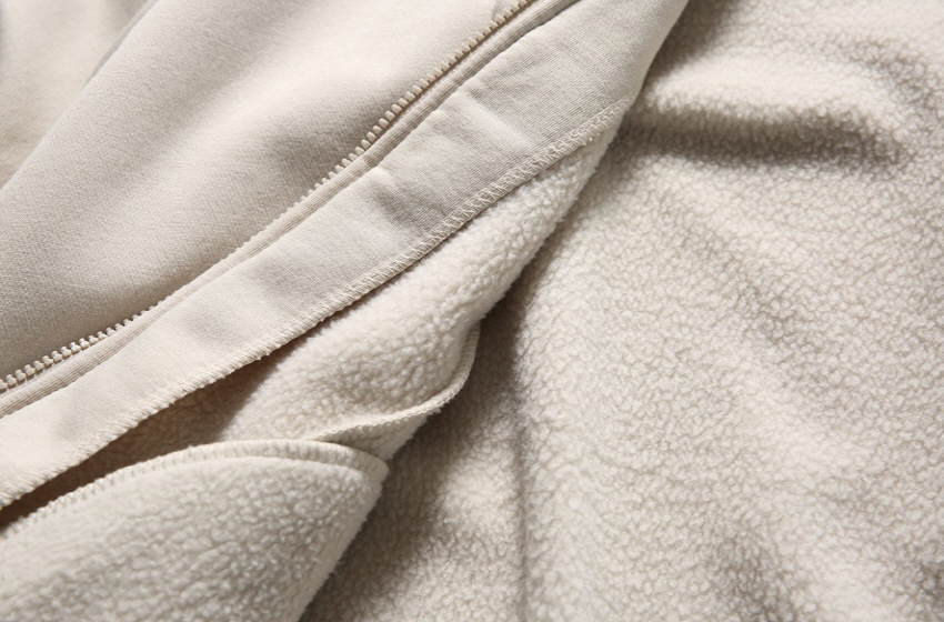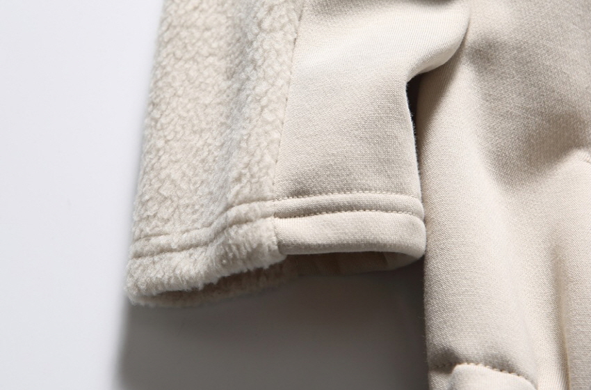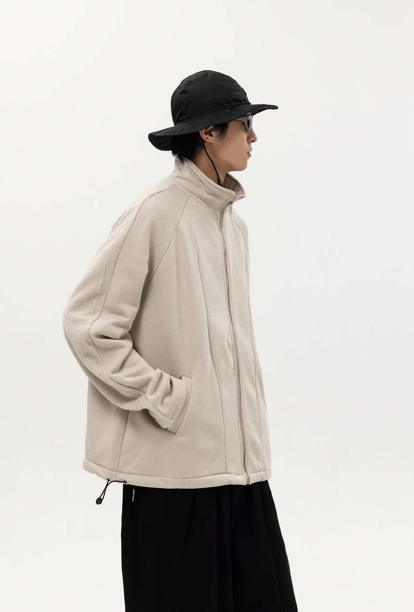 부드럽고 푹신한 소재감의 스탠딩 칼라 집업 아우터입니다.