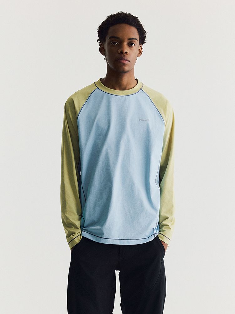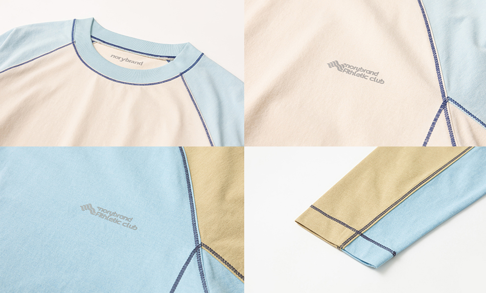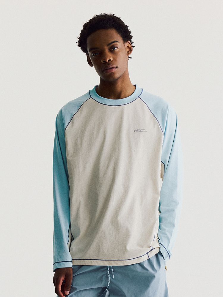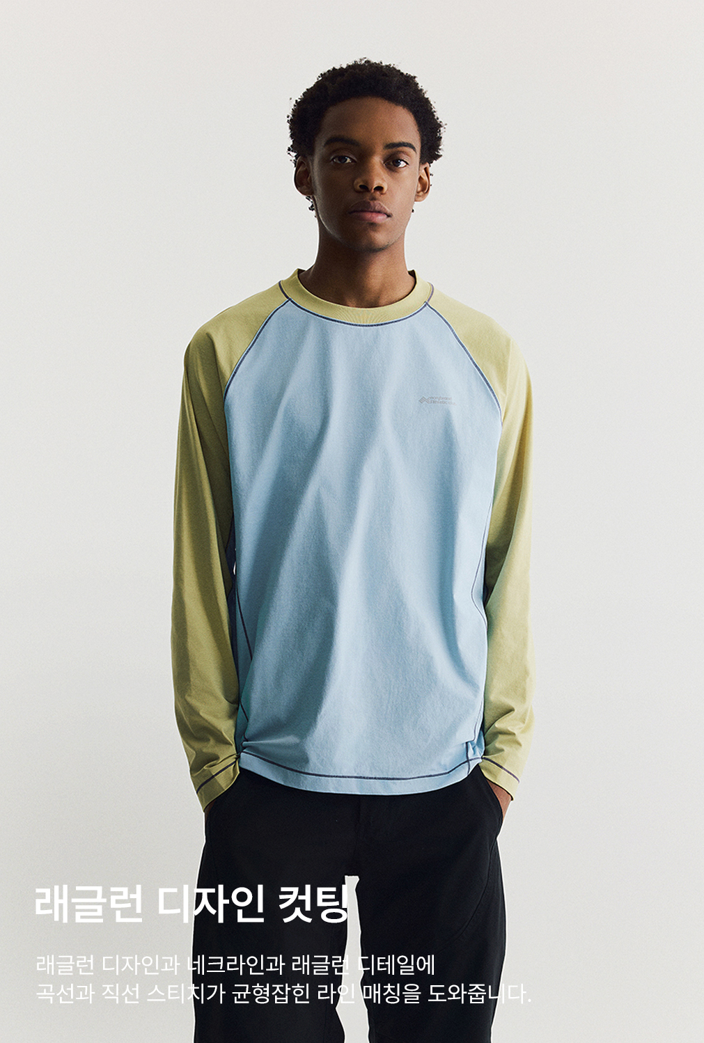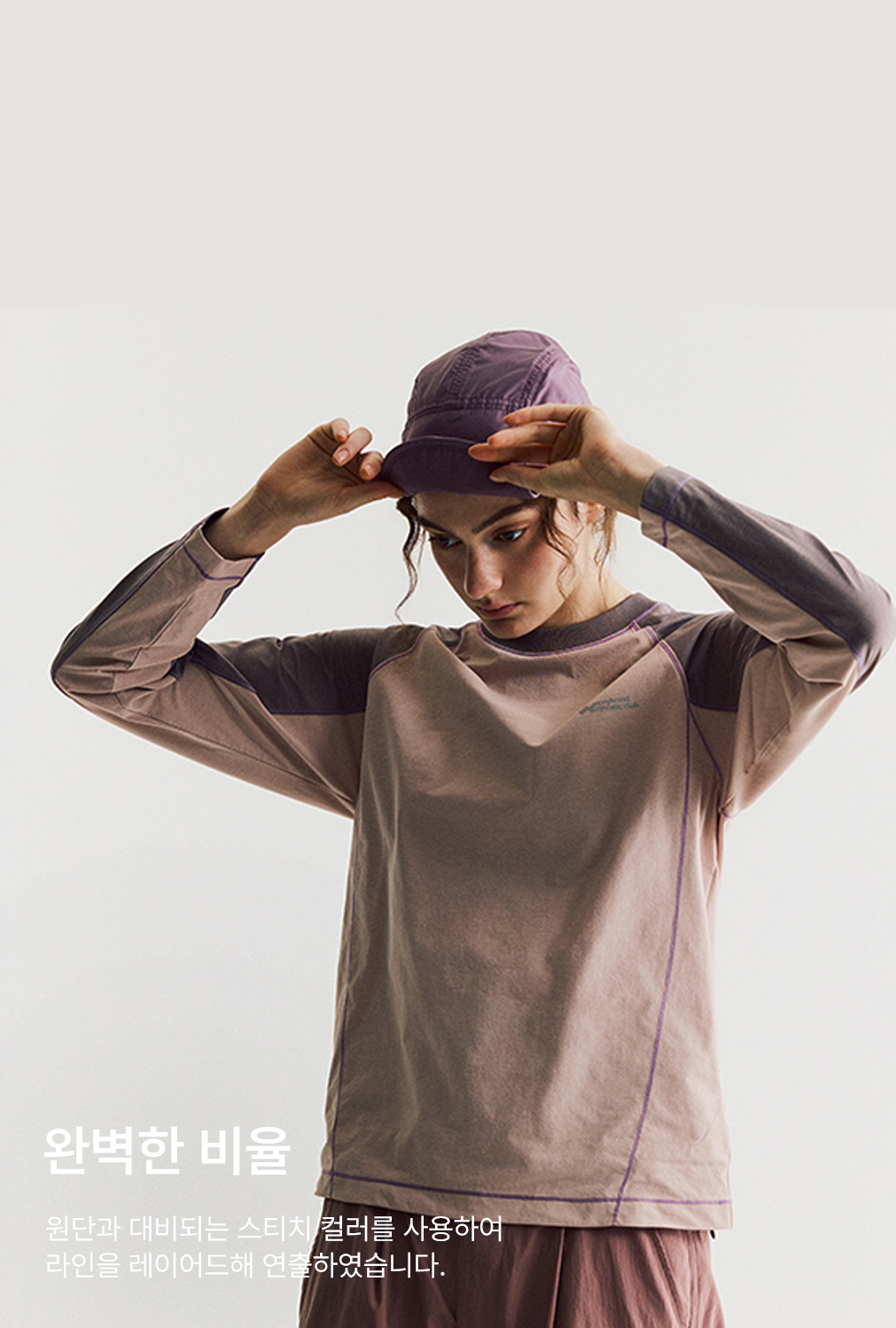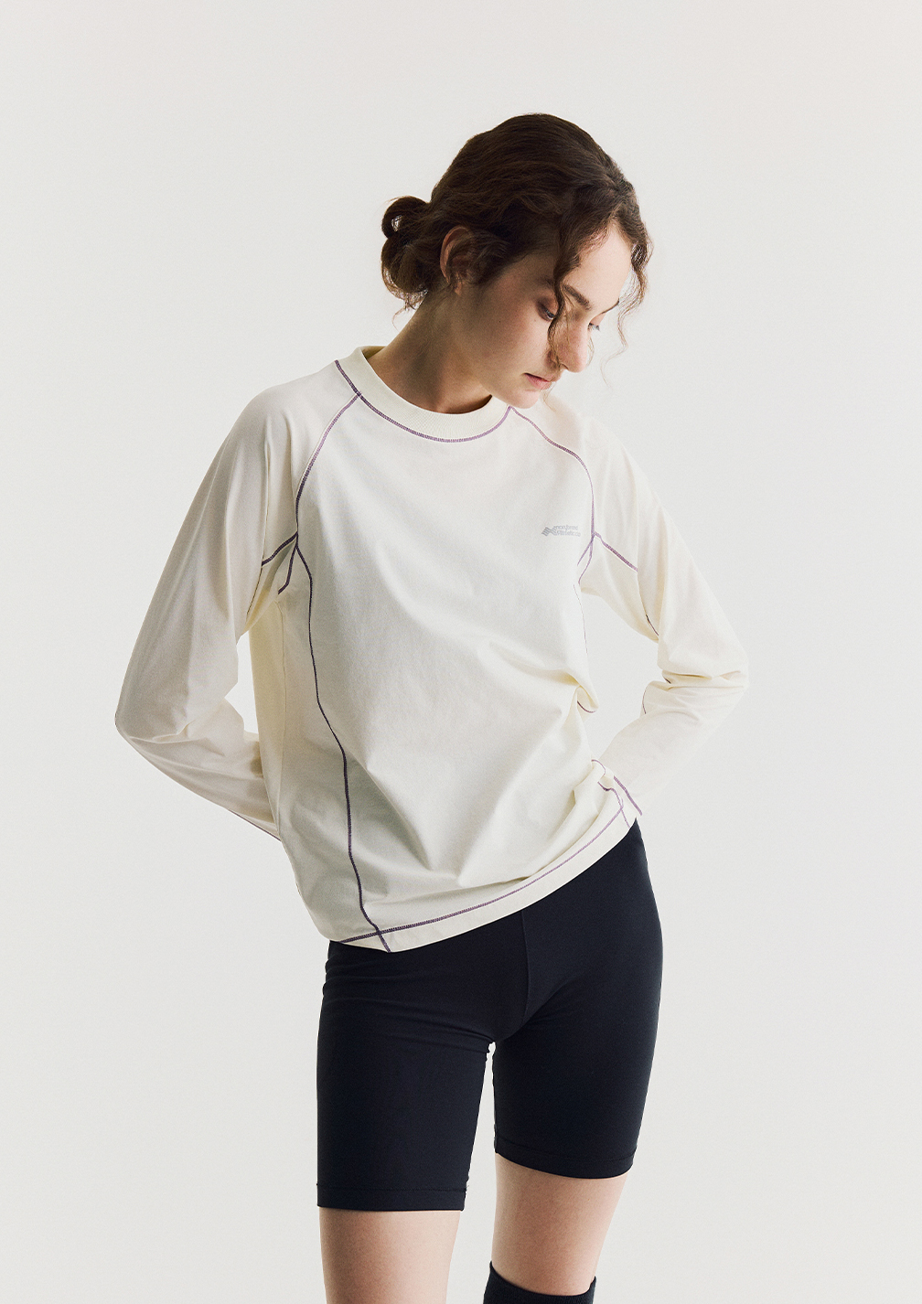 스티치 포인트의 래글런 디자인 긴팔 티셔츠입니다.