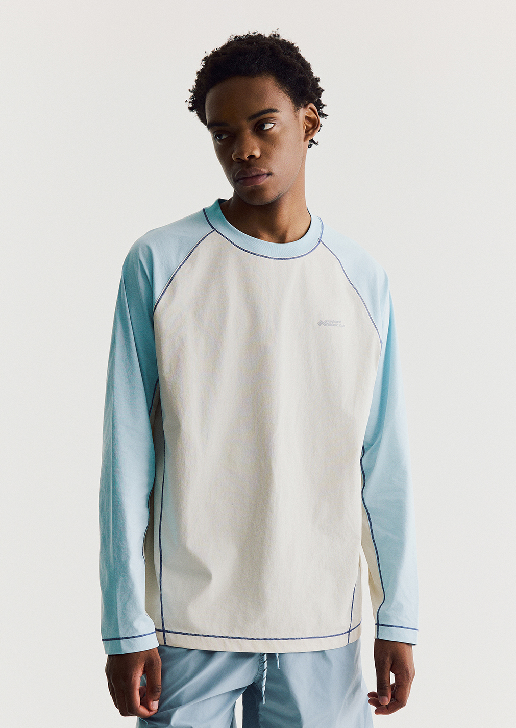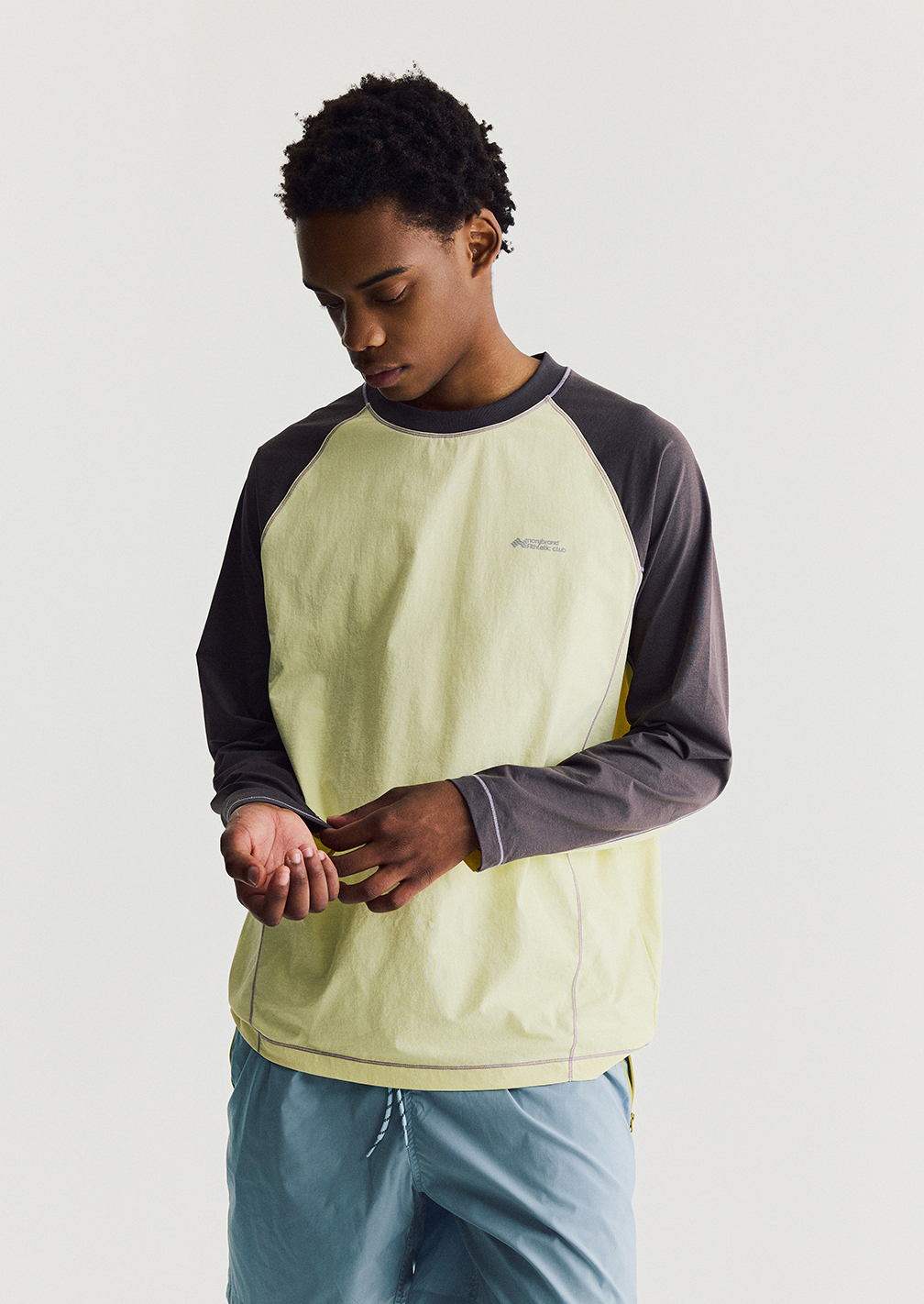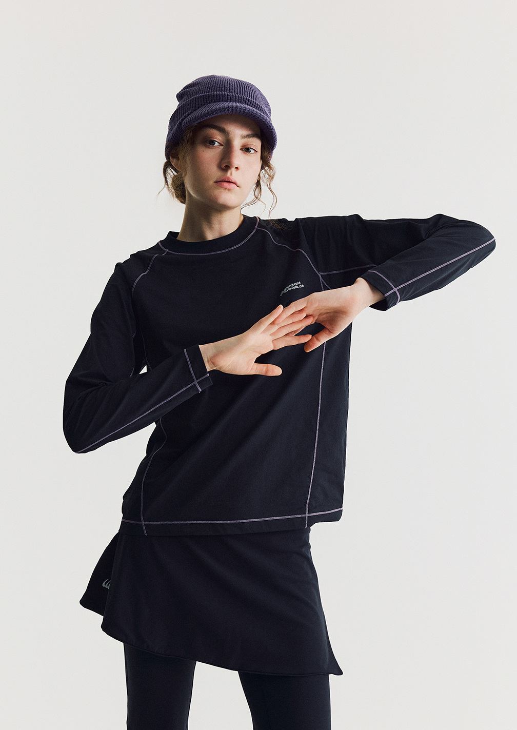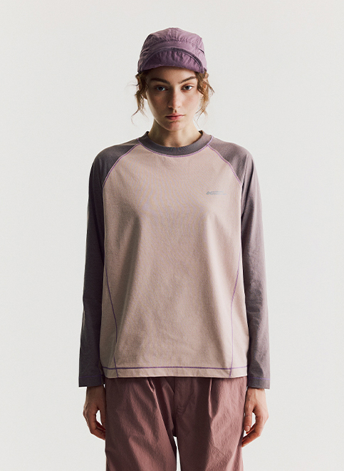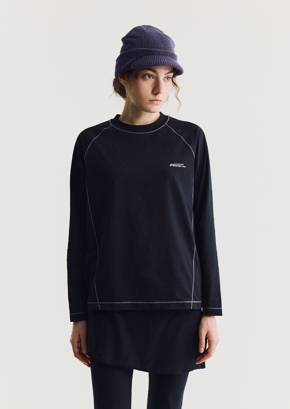 스티치 포인트의 래글런 디자인 긴팔 티셔츠입니다.