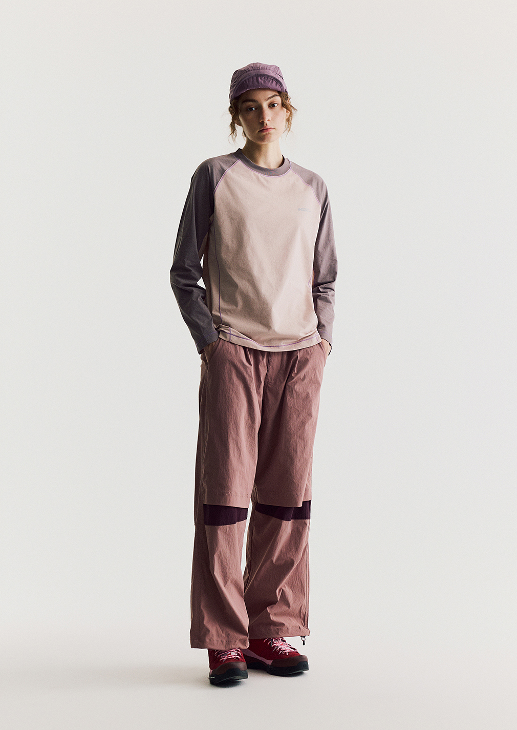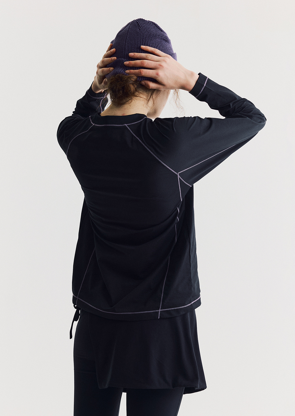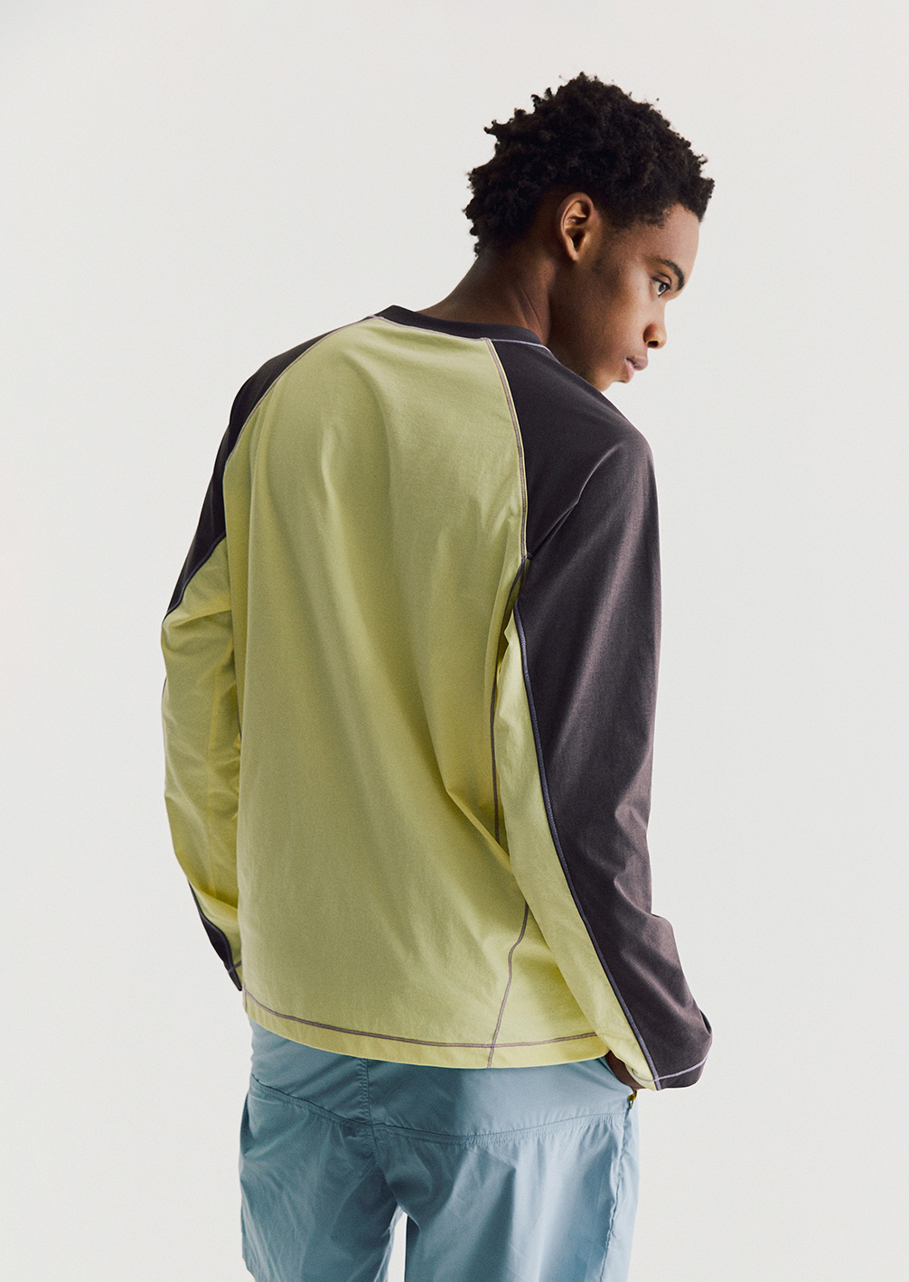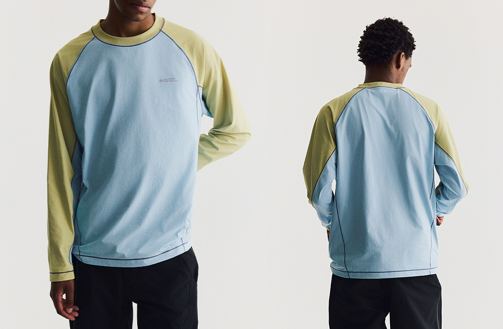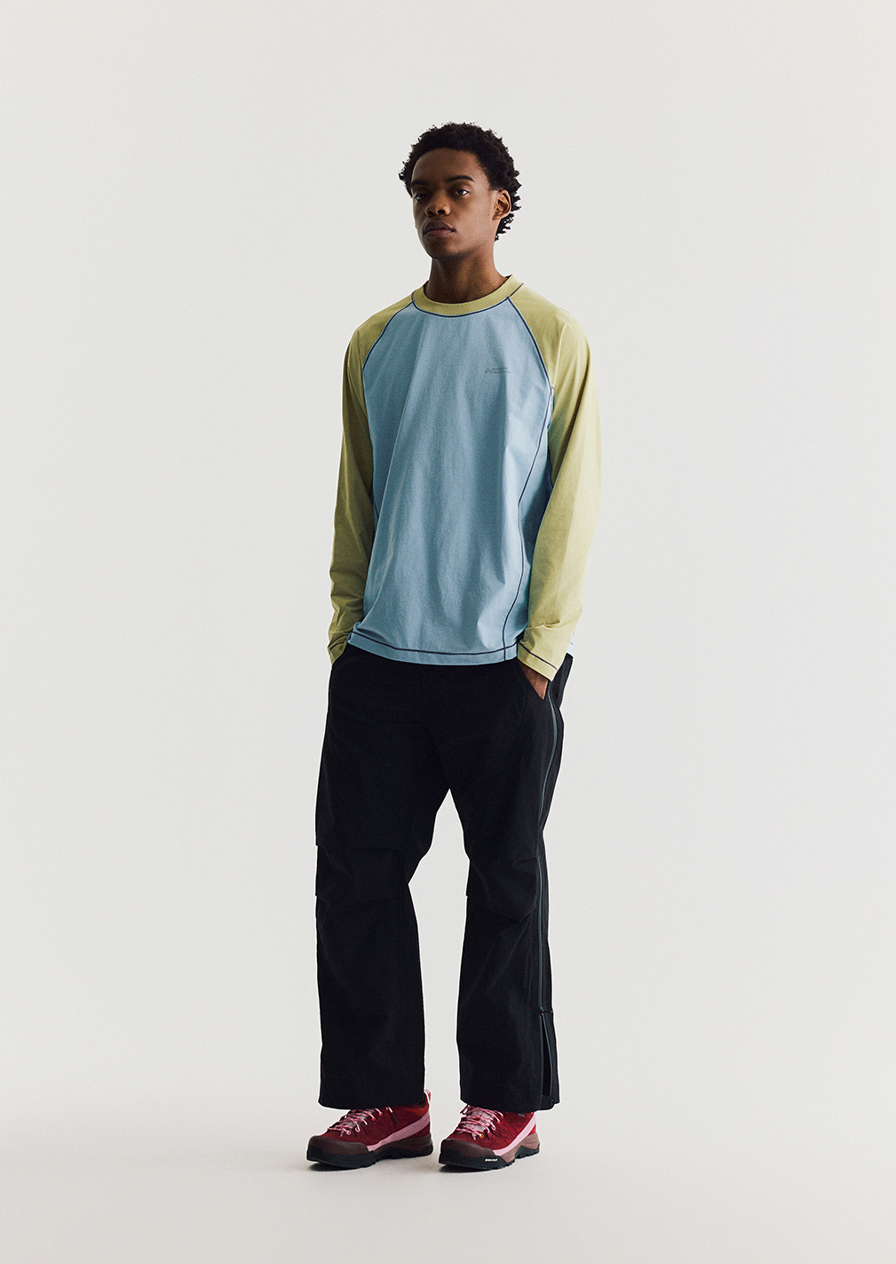 스티치 포인트의 래글런 디자인 긴팔 티셔츠입니다.
