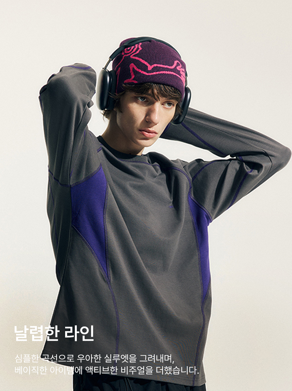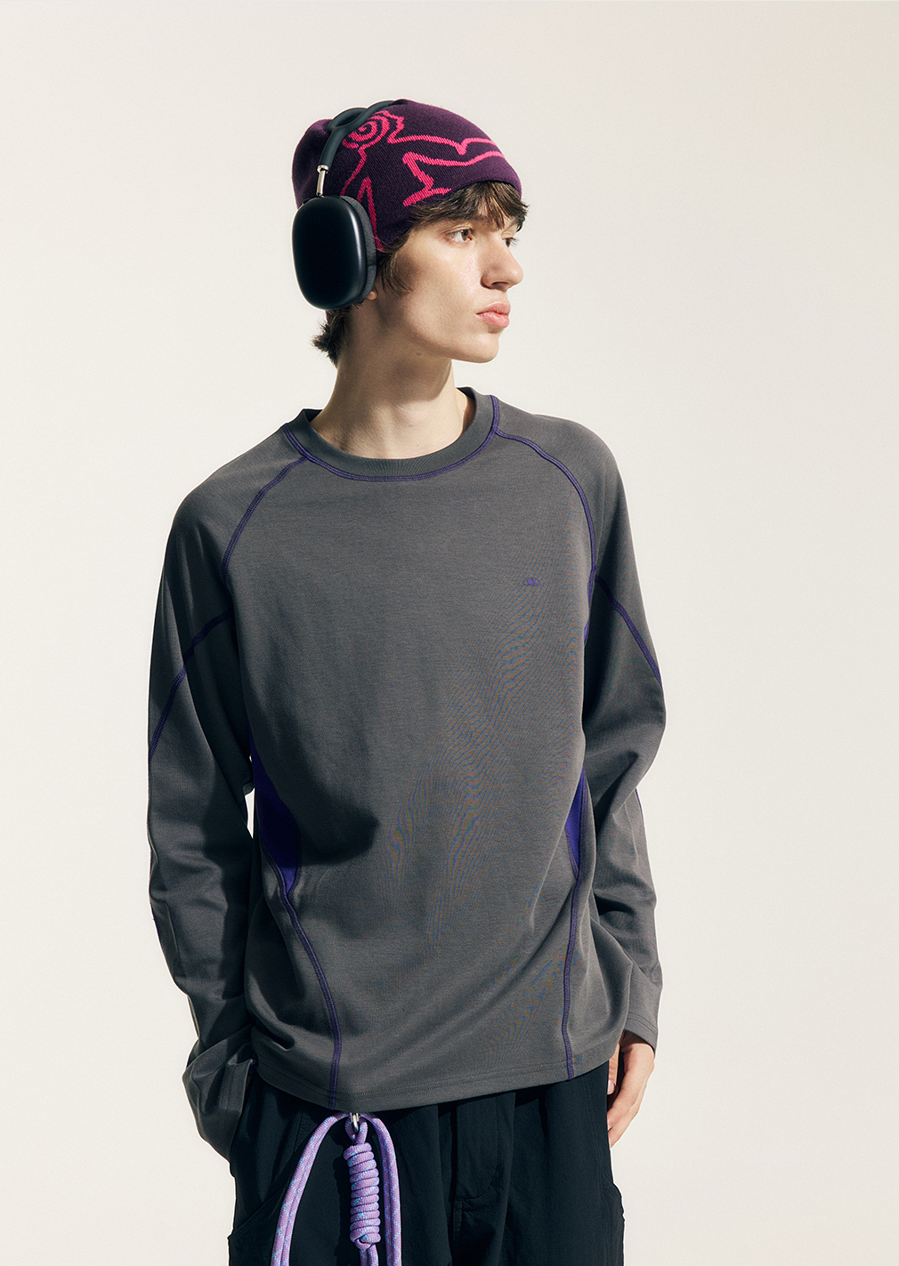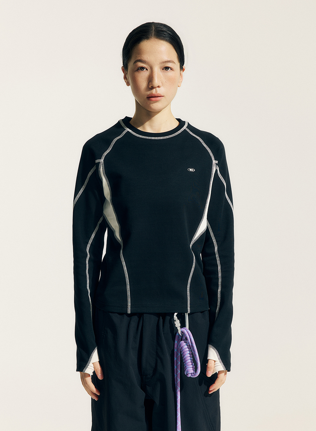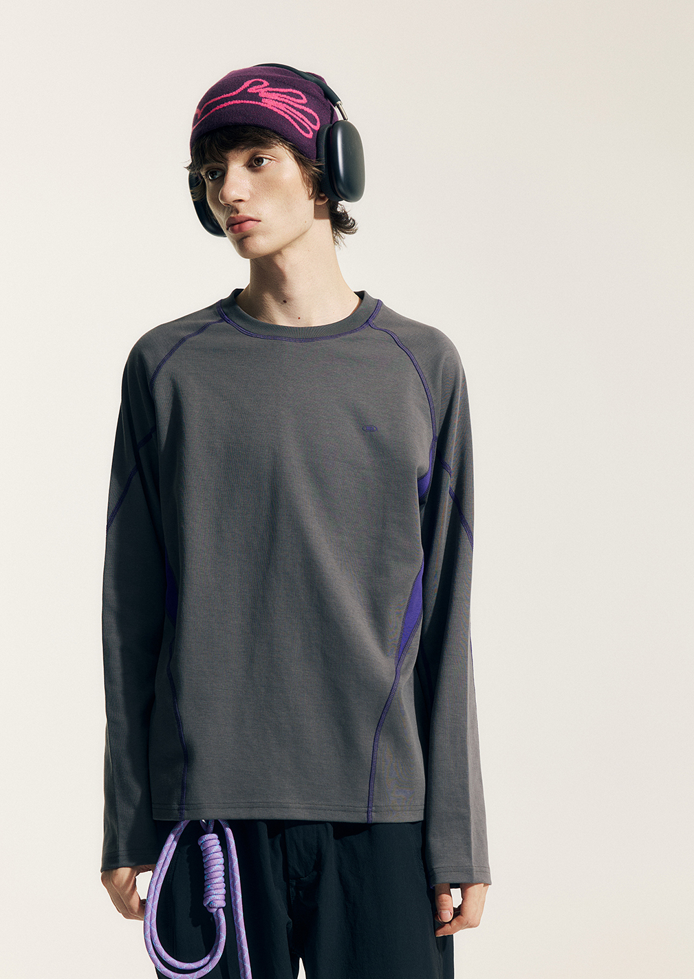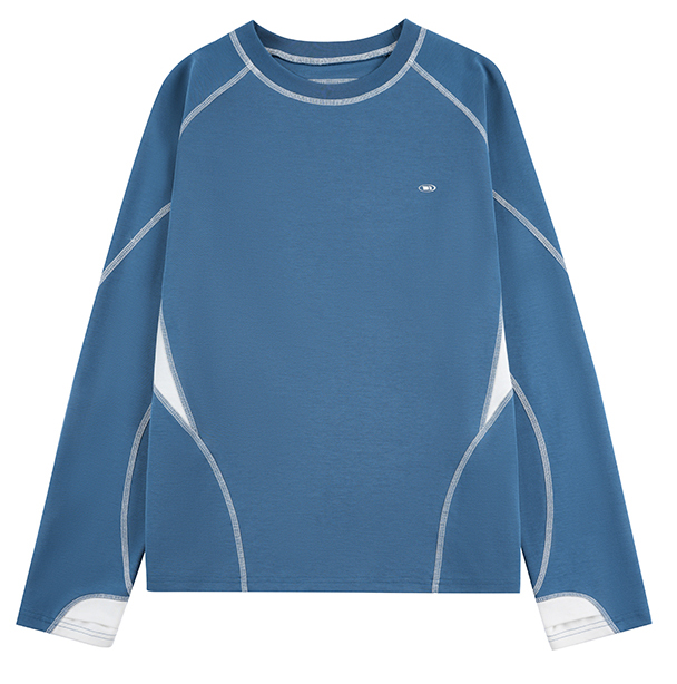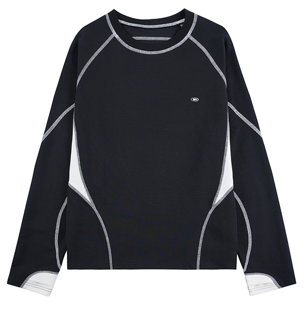 스티치 포인트와 배색 디테일의 긴팔 티셔츠입니다.