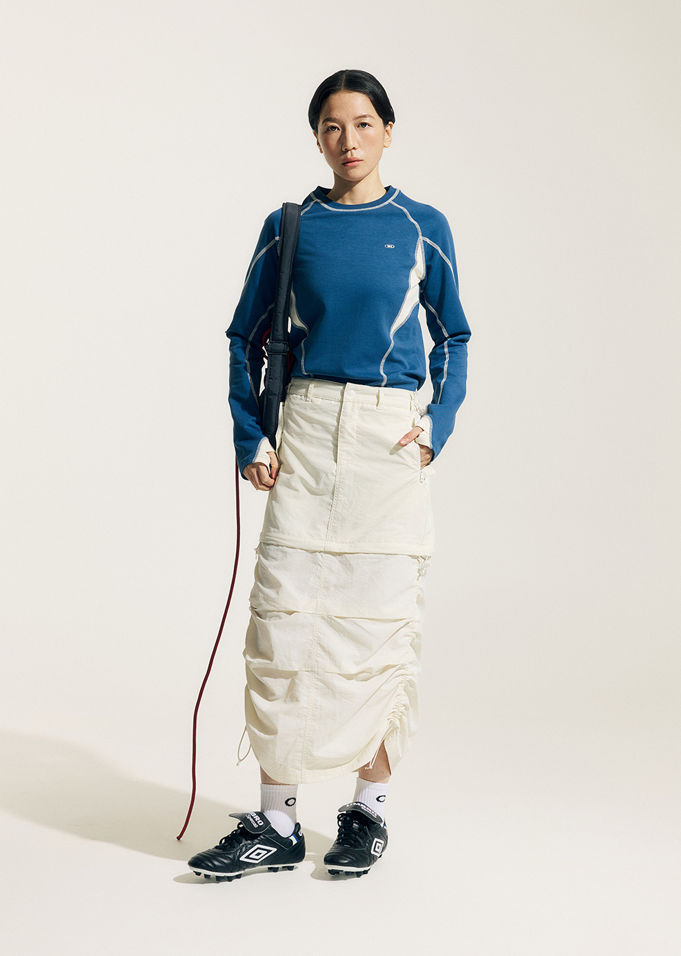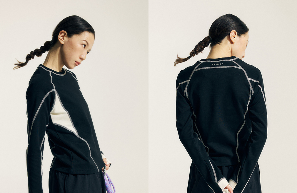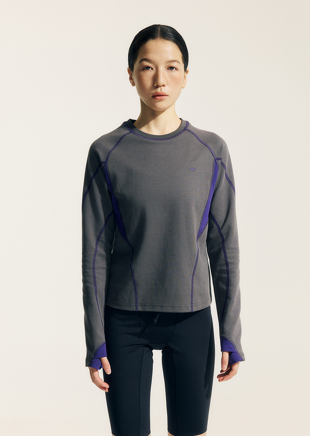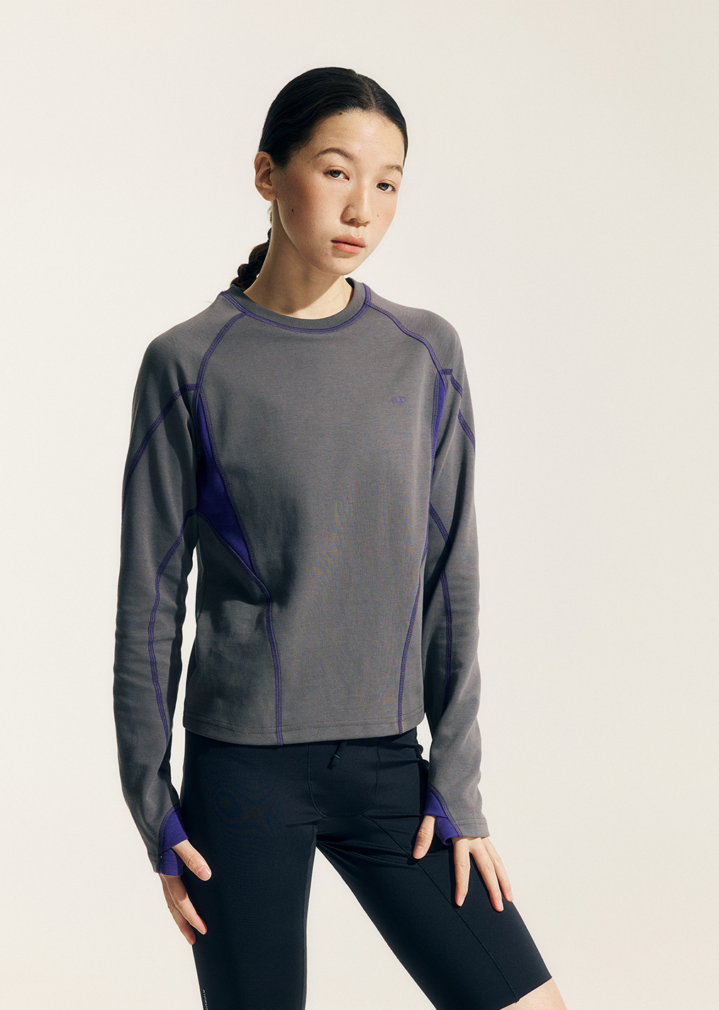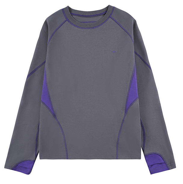 스티치 포인트와 배색 디테일의 긴팔 티셔츠입니다.