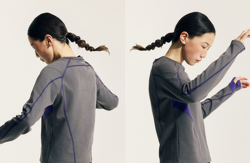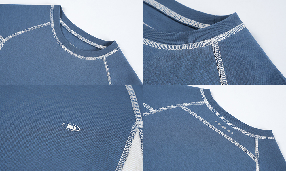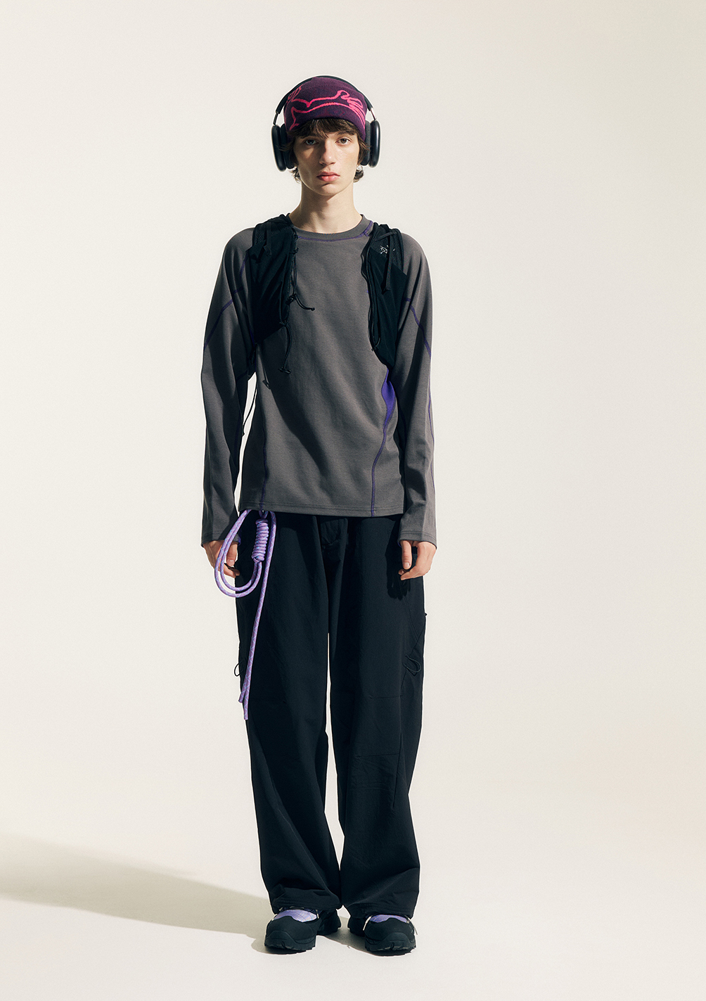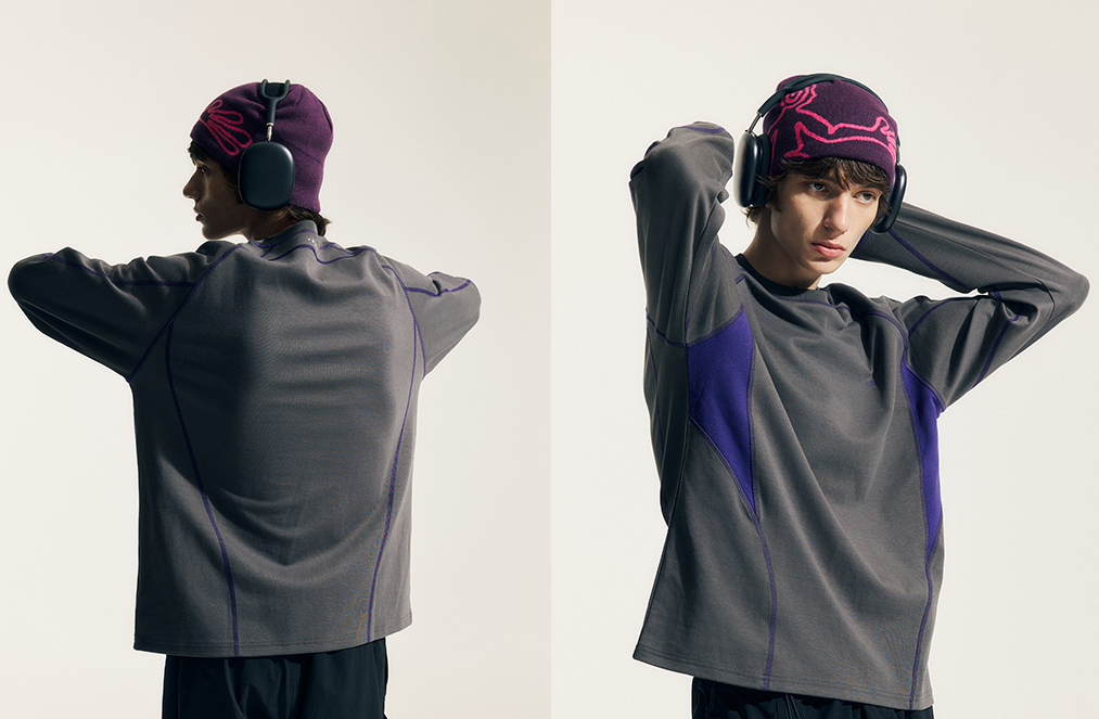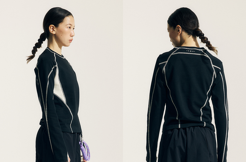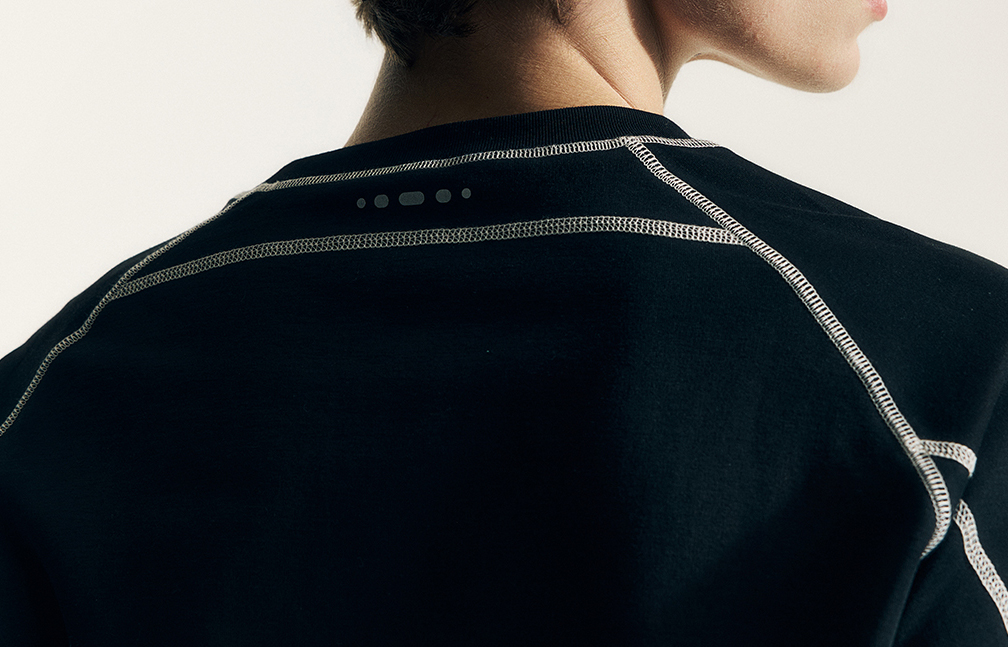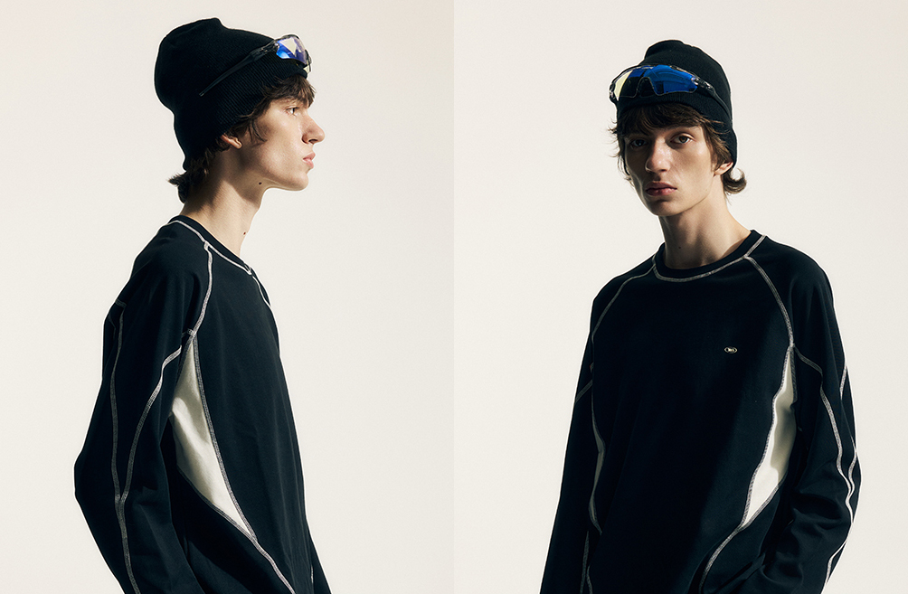 스티치 포인트와 배색 디테일의 긴팔 티셔츠입니다.