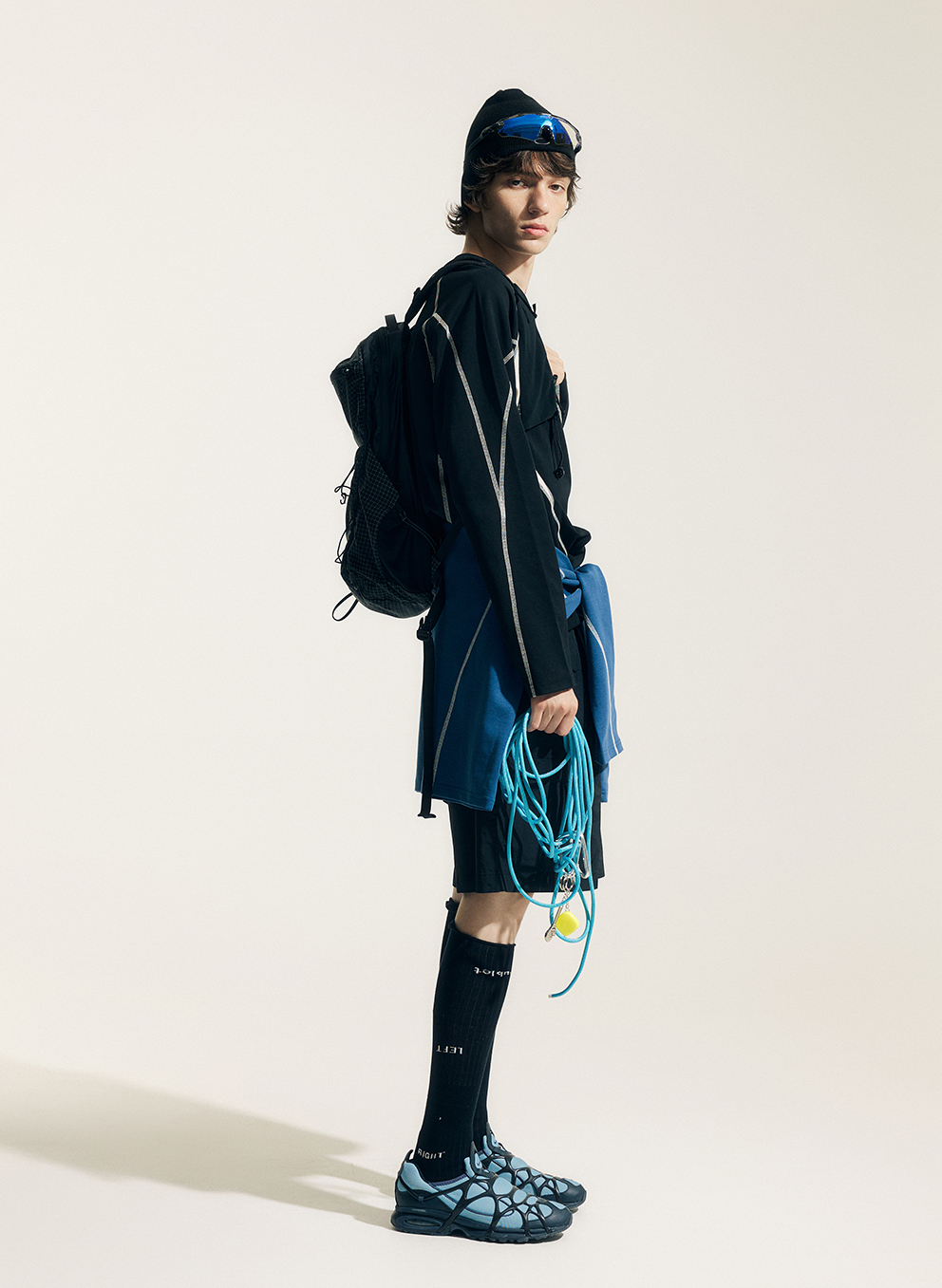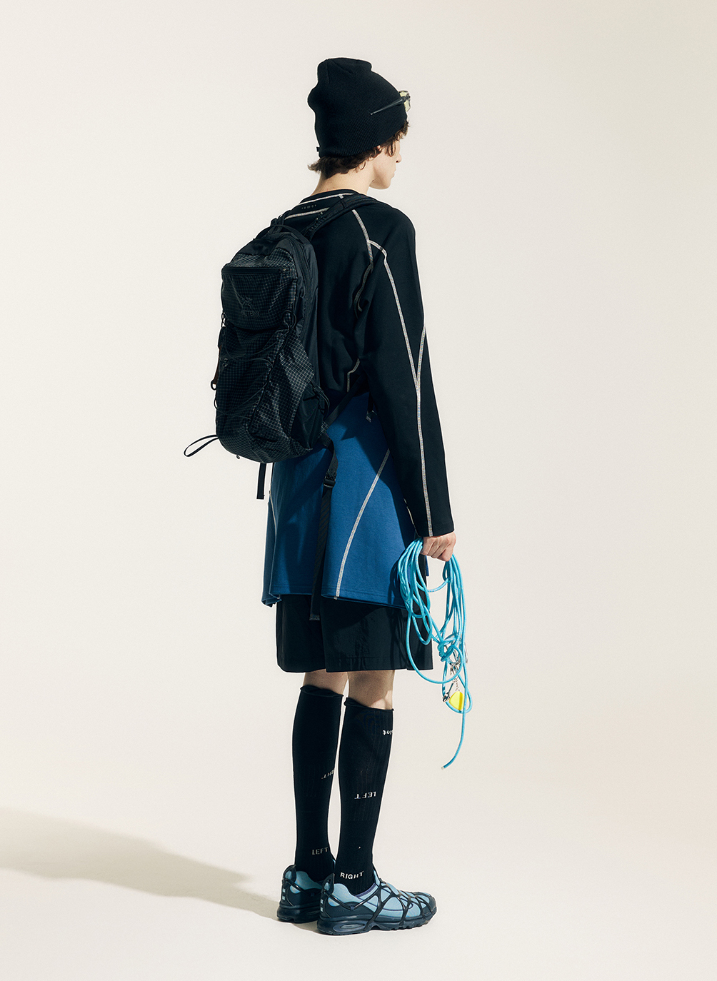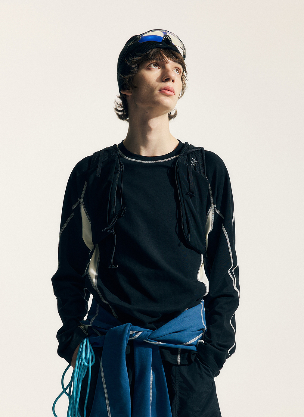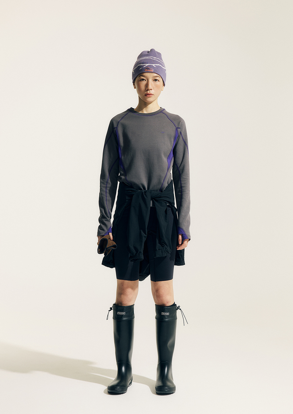 스티치 포인트와 배색 디테일의 긴팔 티셔츠입니다.