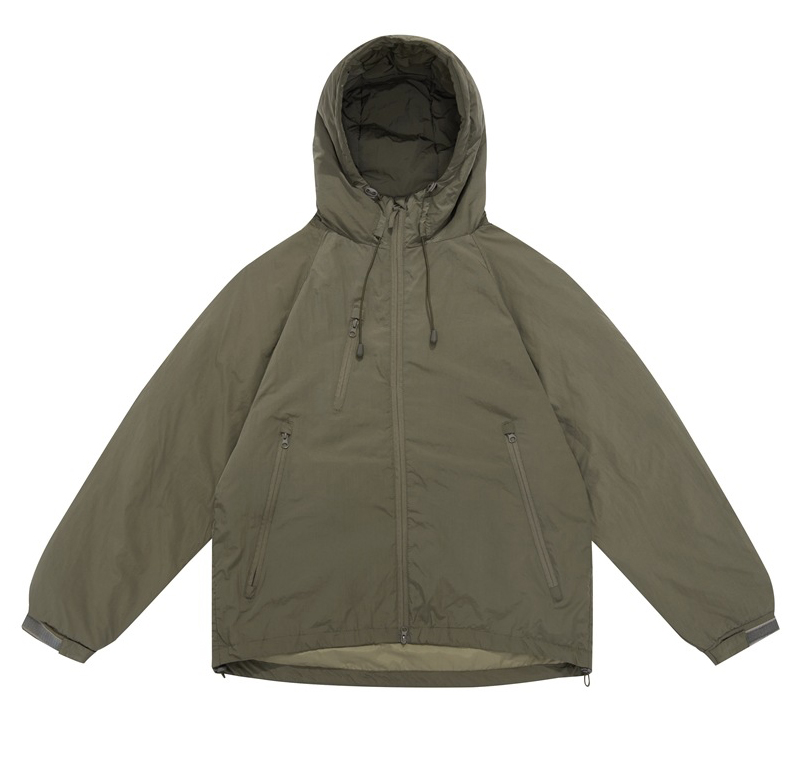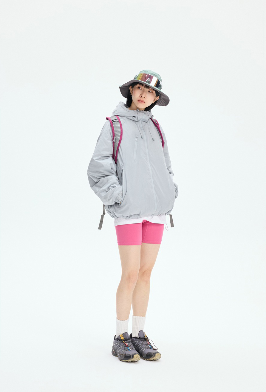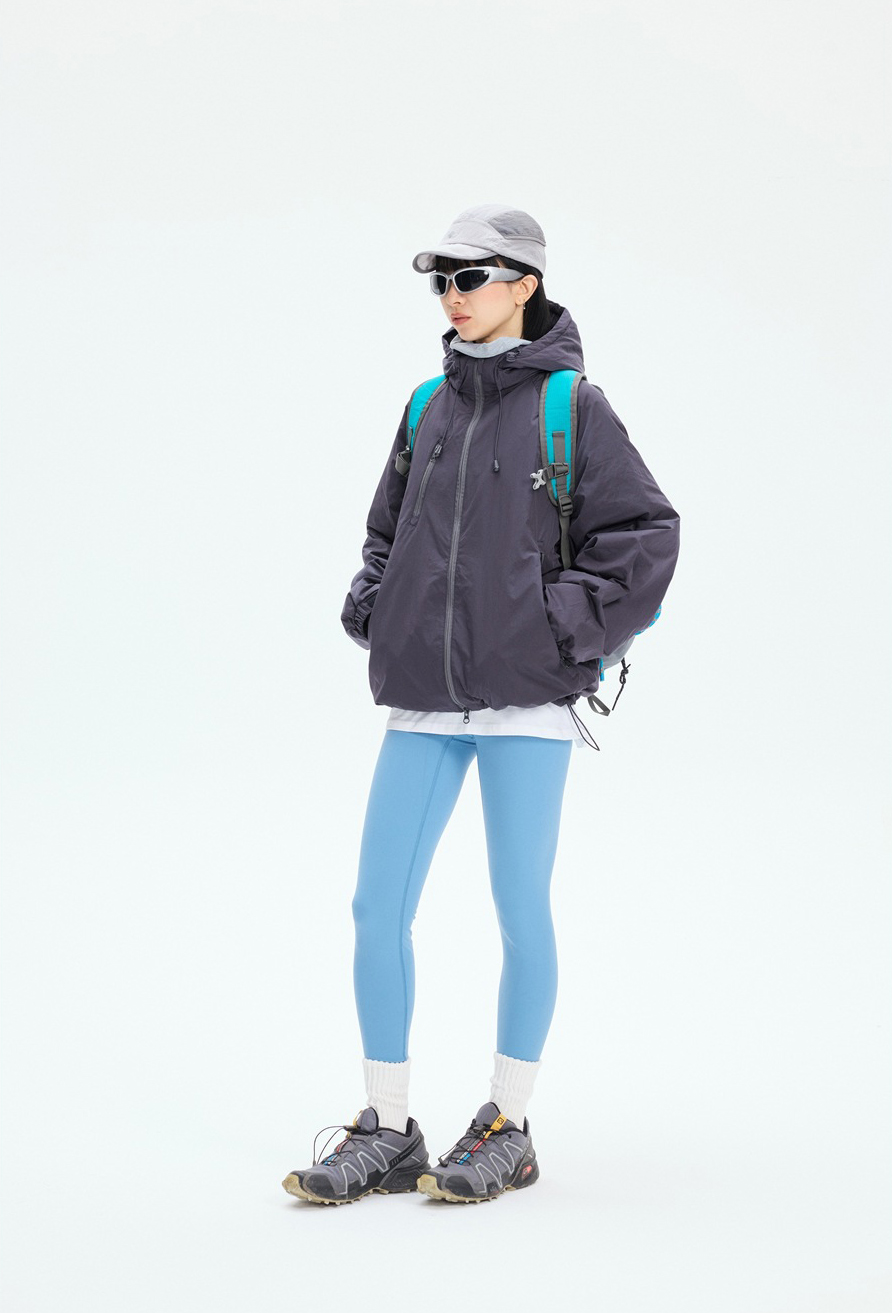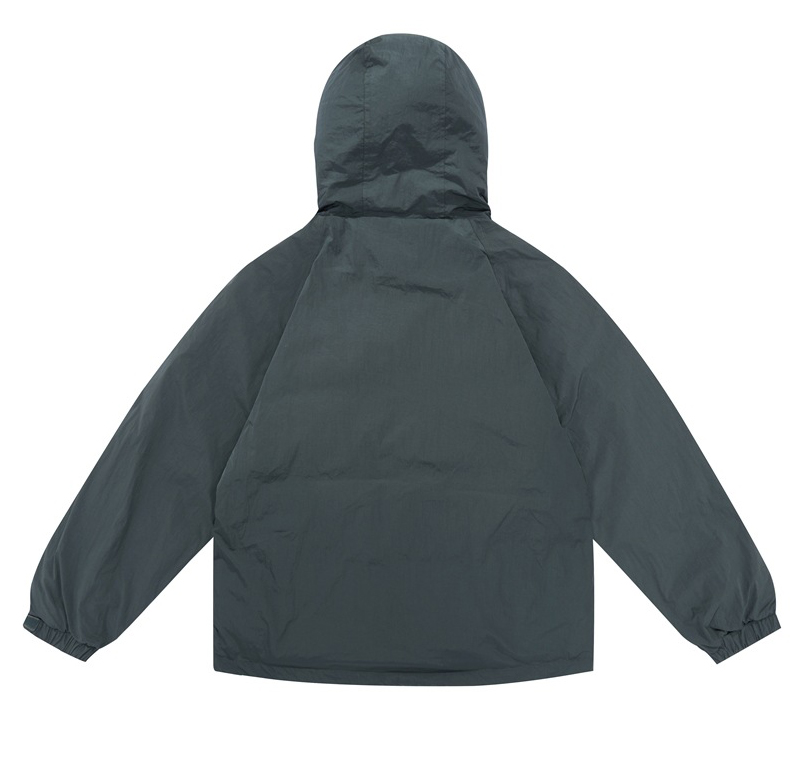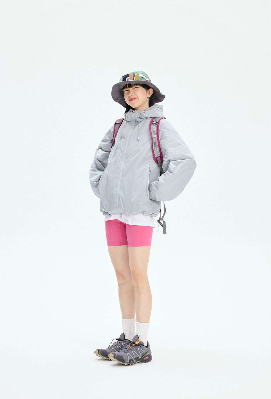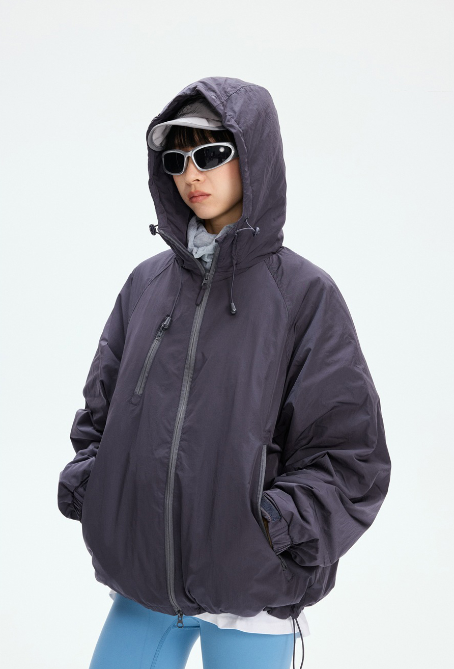 스포티한 무드의 방수 기능이 있는 후드 다운 자켓입니다.