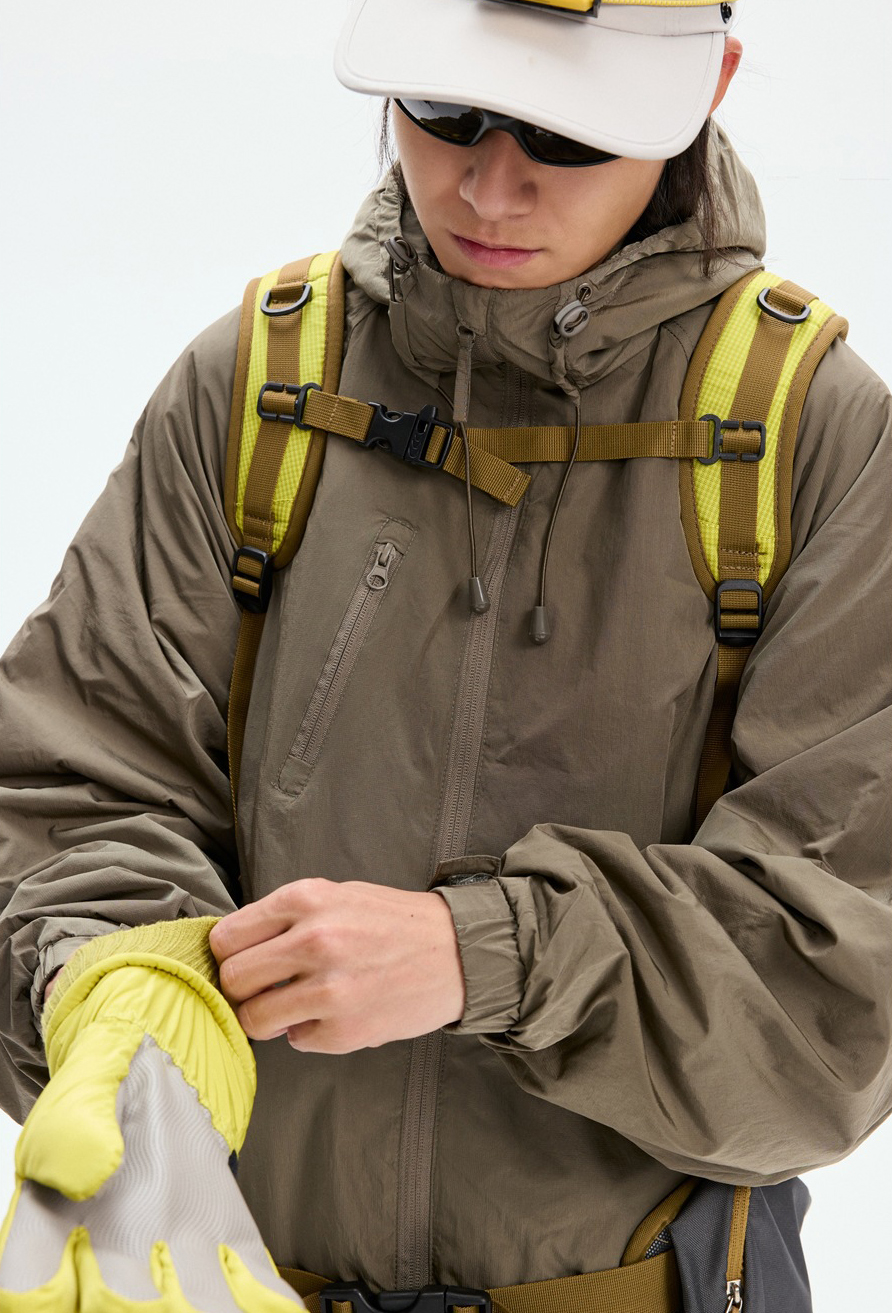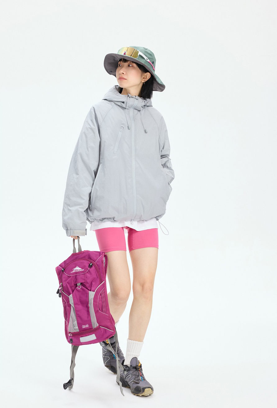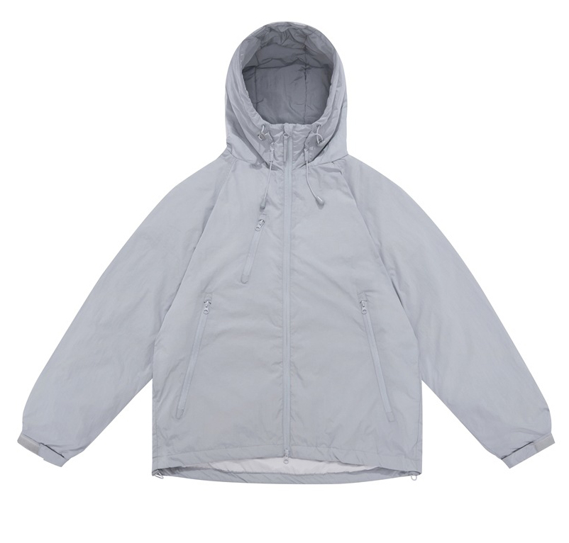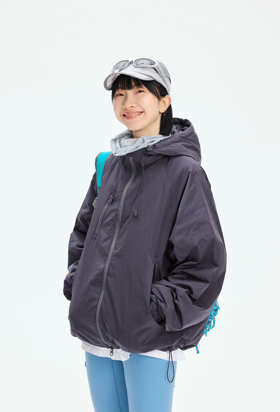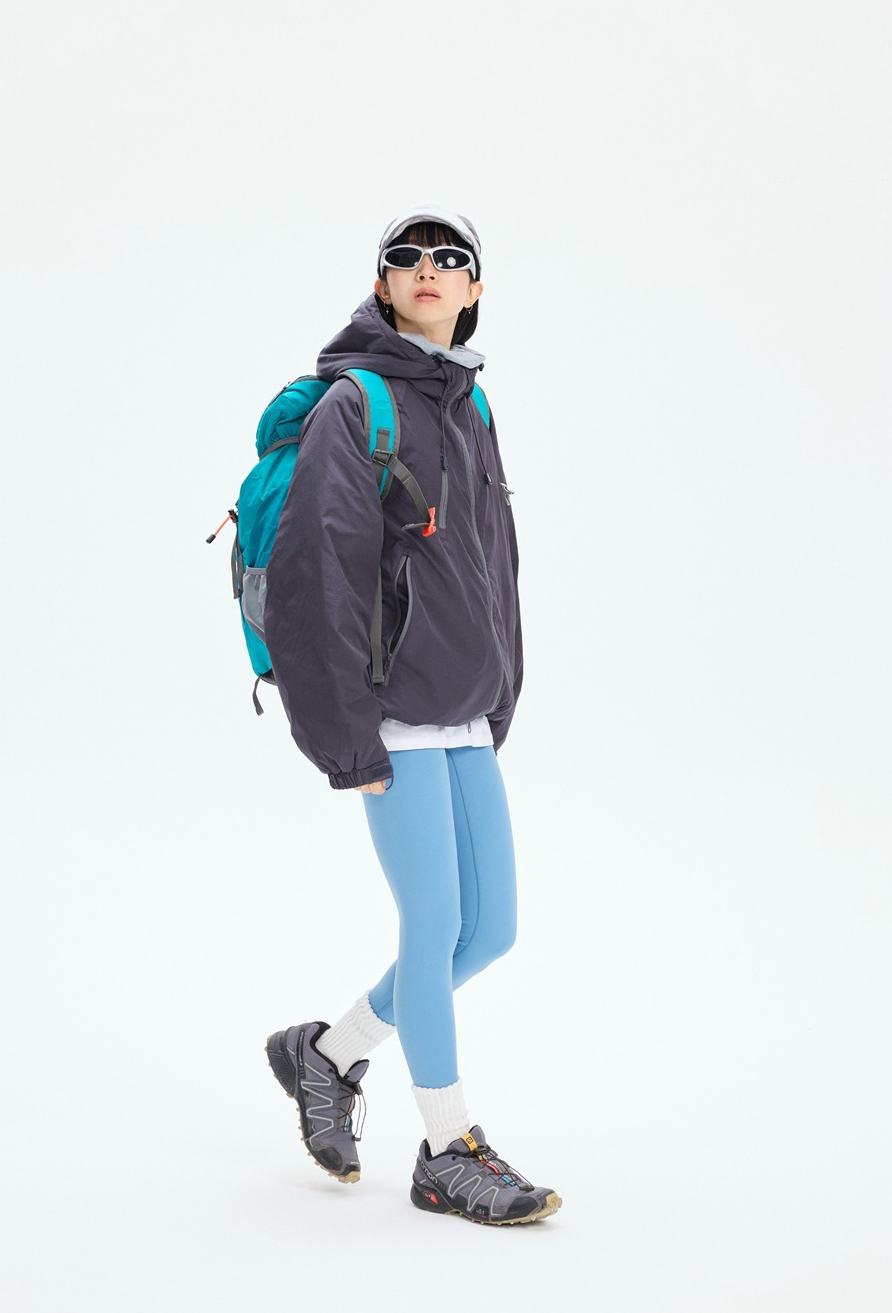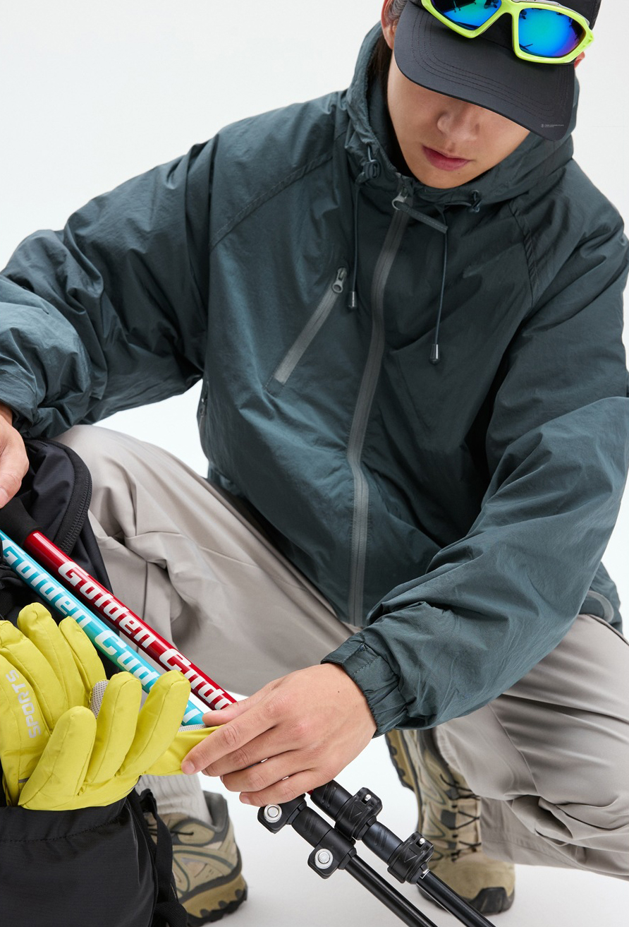 스포티한 무드의 방수 기능이 있는 후드 다운 자켓입니다.