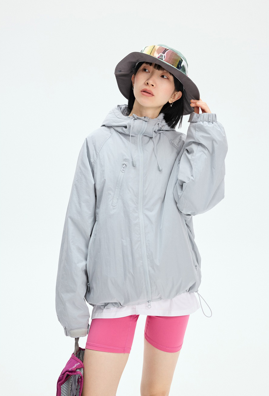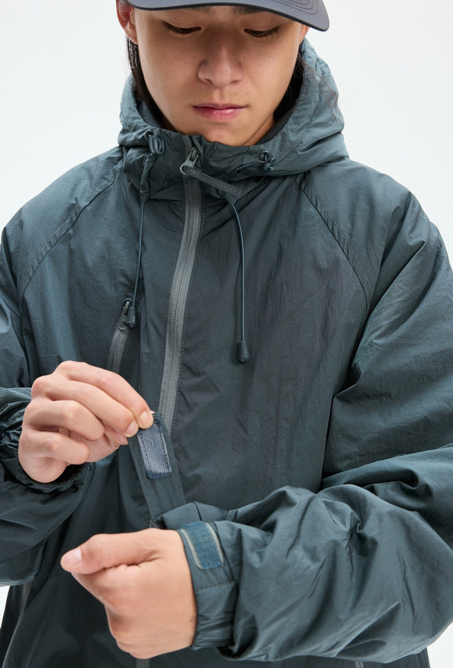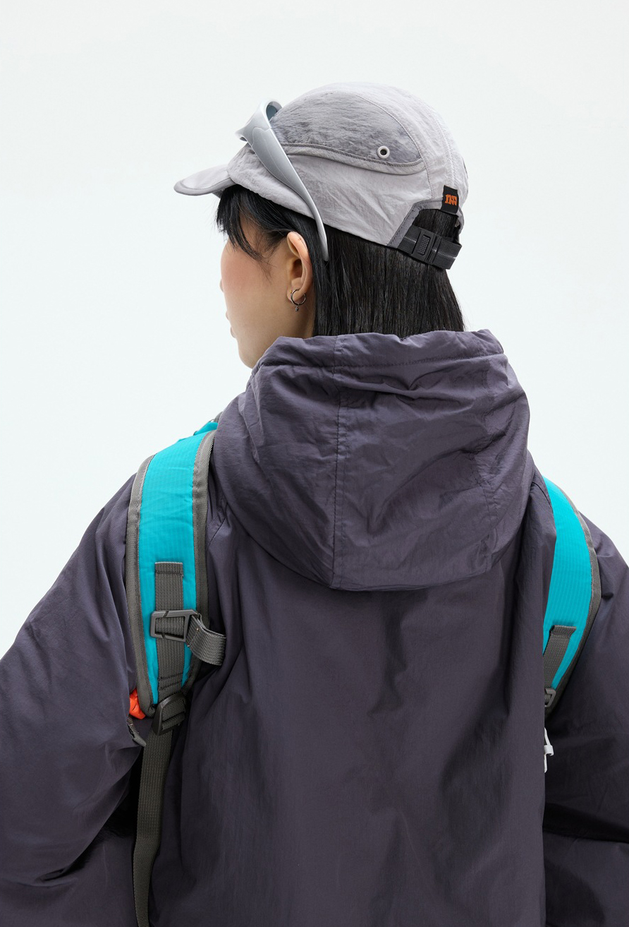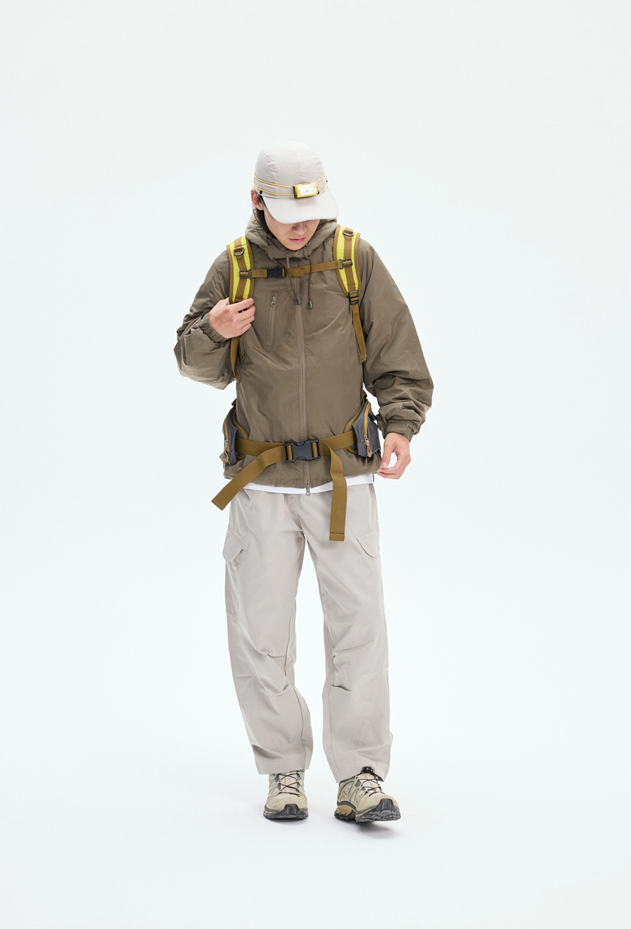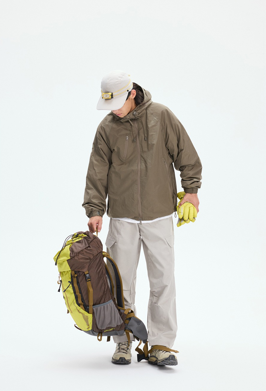 스포티한 무드의 방수 기능이 있는 후드 다운 자켓입니다.
