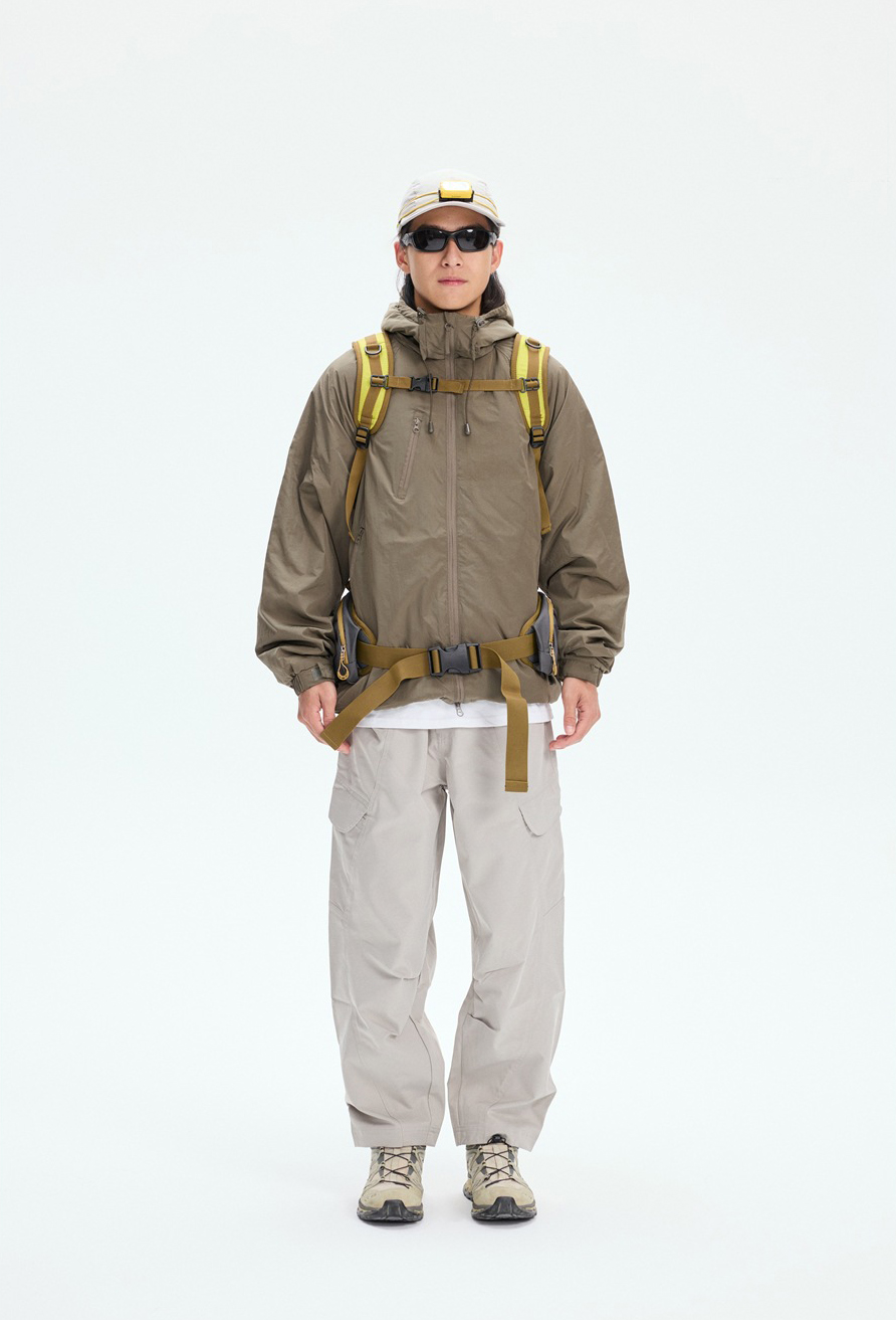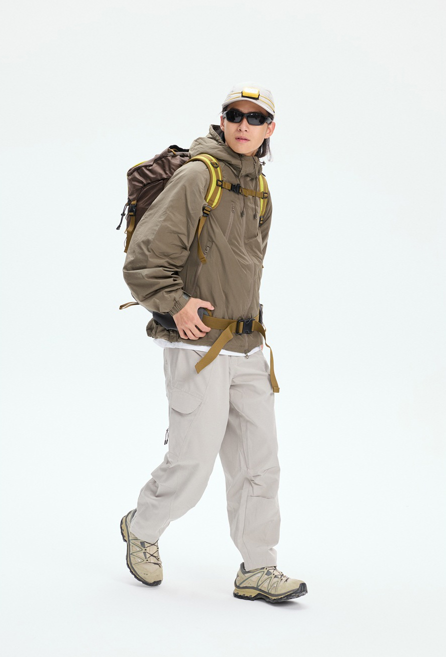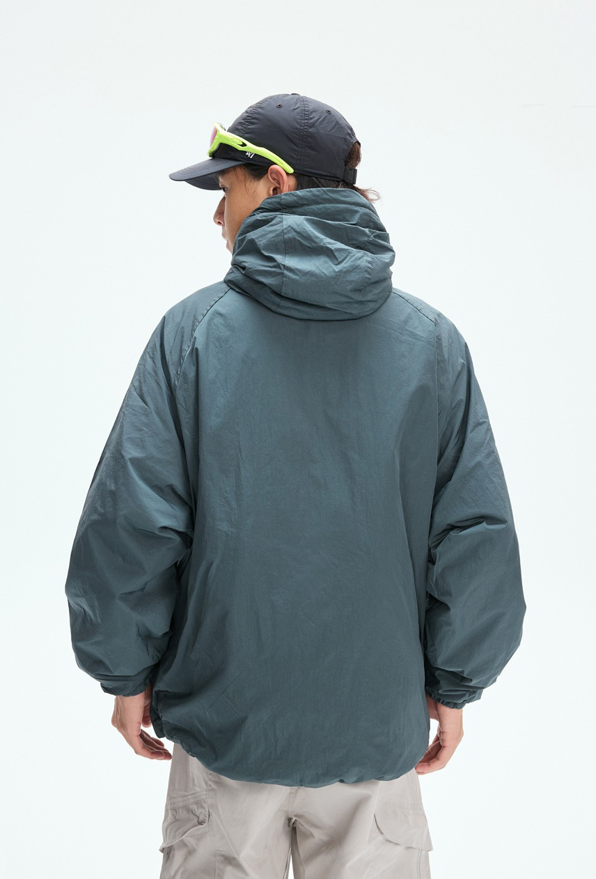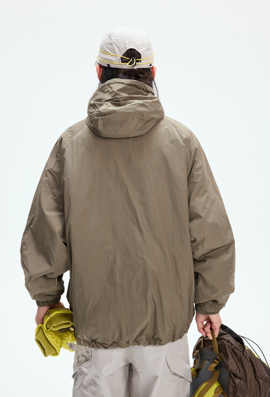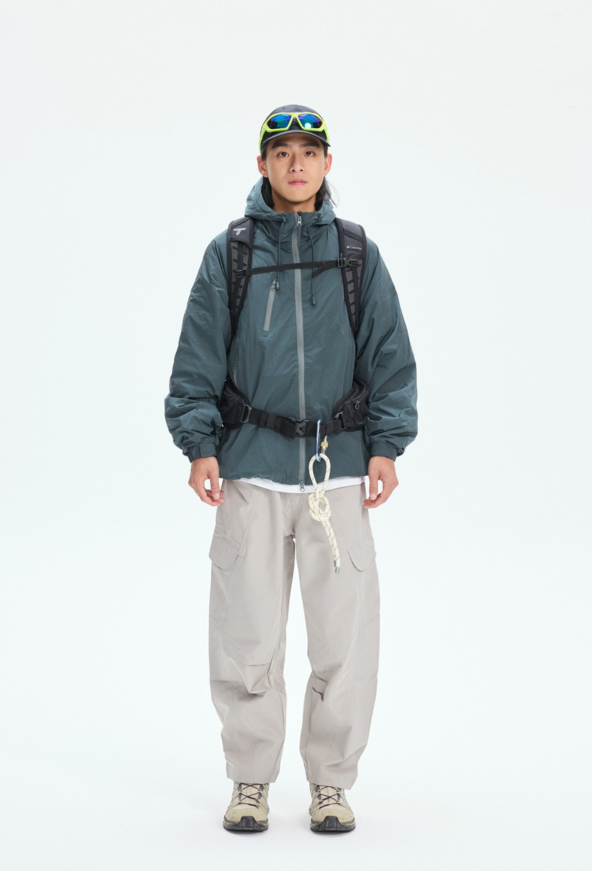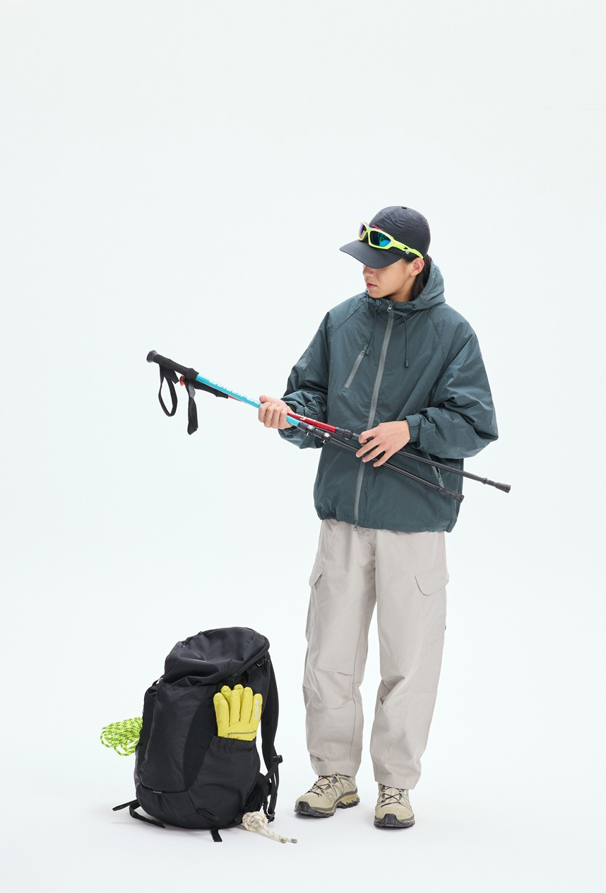 스포티한 무드의 방수 기능이 있는 후드 다운 자켓입니다.