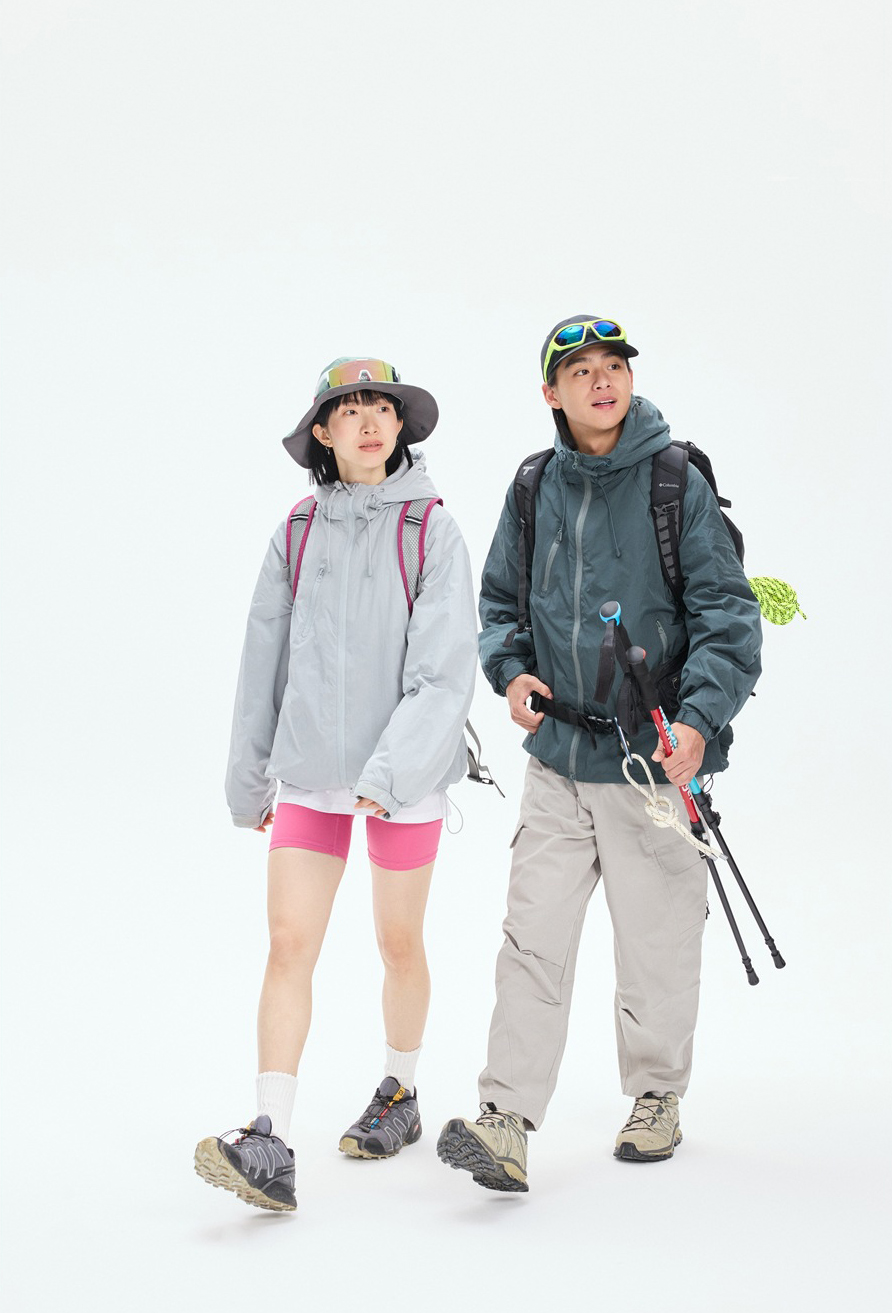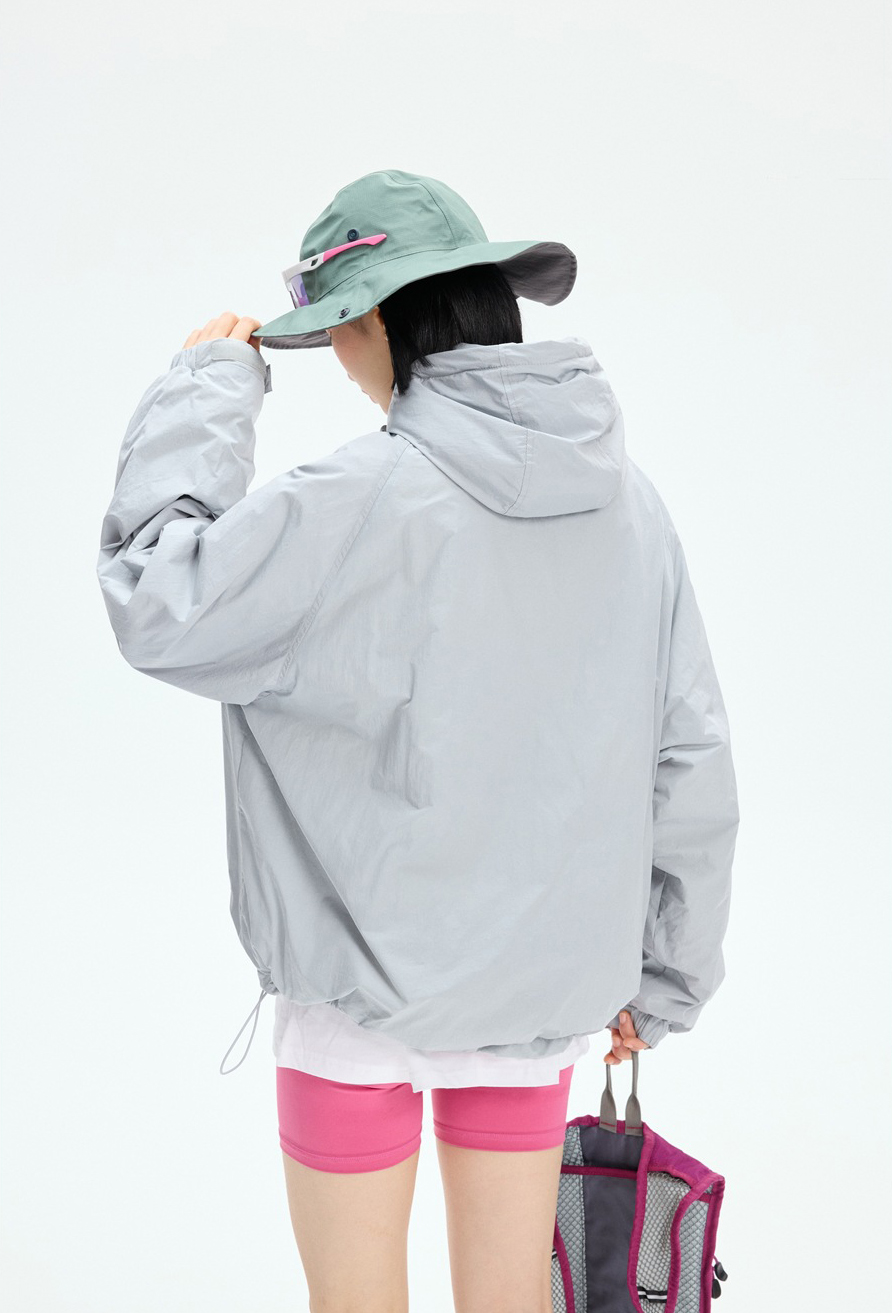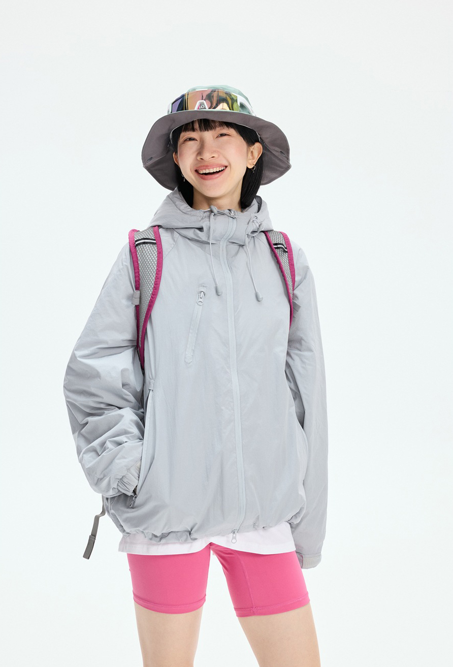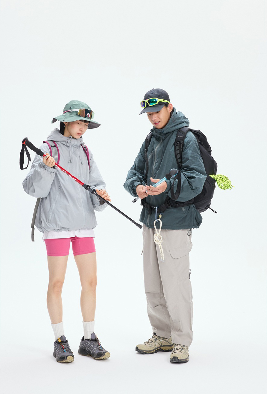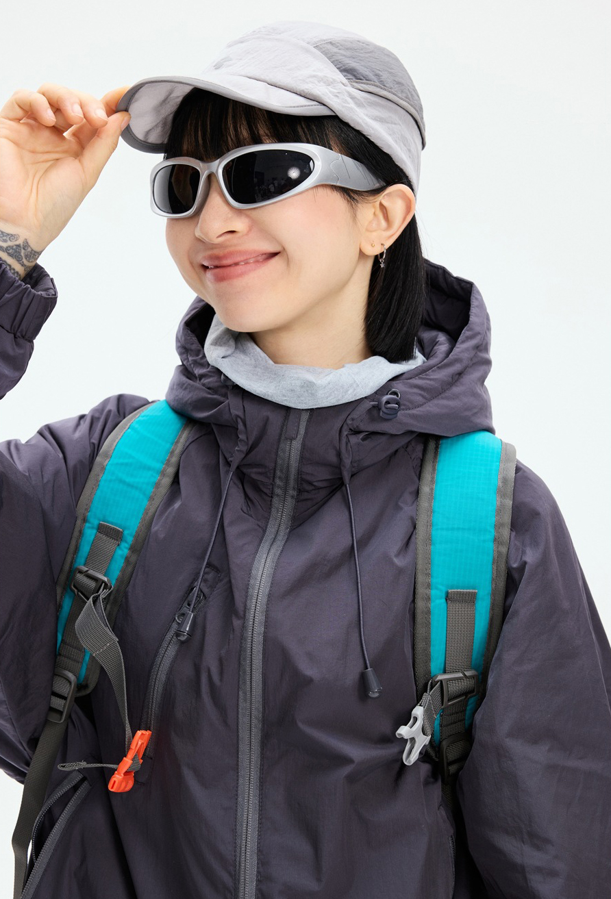 스포티한 무드의 방수 기능이 있는 후드 다운 자켓입니다.